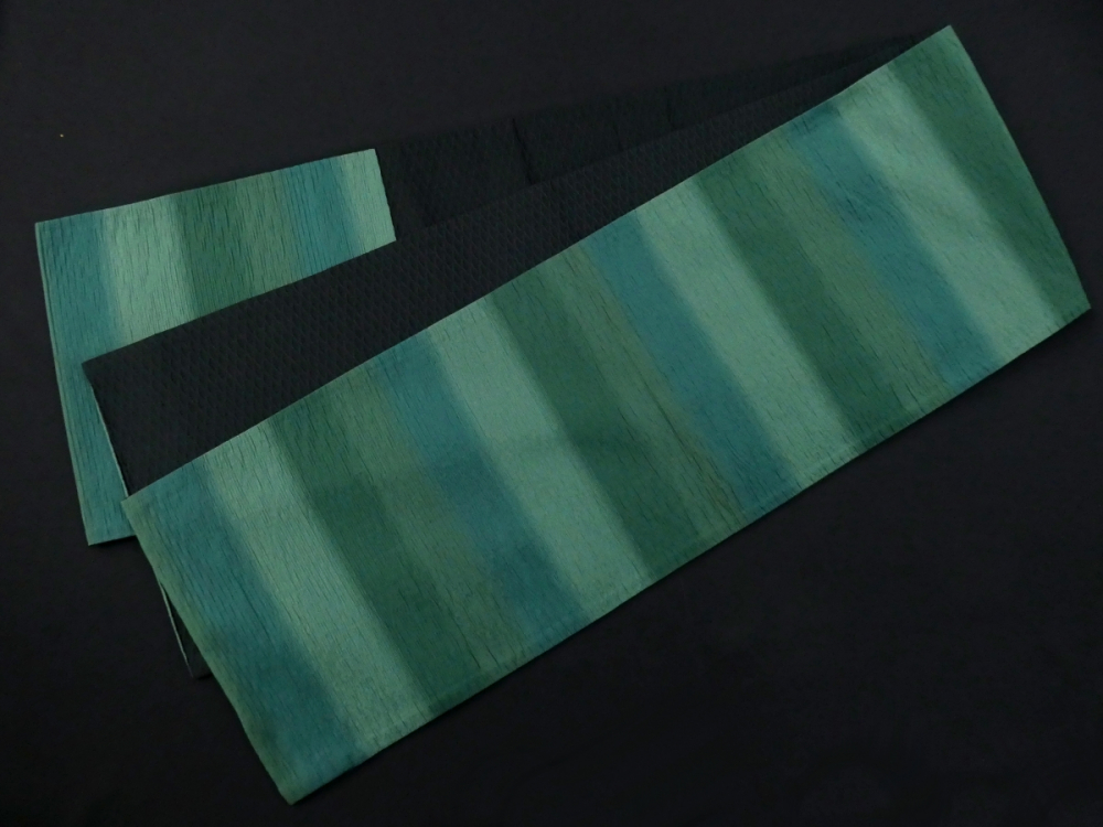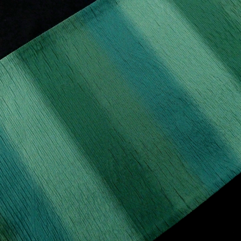 〓雅星〓20%OFF!!超美!!グリーン*横段 グラデーション 洗える《京袋帯》 24,800円のところ 販売価格 19,840円 (税込) 購入数 \送料無料/ カートに入れる この商品について問い合わせる お気に入り 特定商取引法に基づく表記 商品詳細 状態ランク: ★★★★★ 京袋帯は、普通の袋帯に比べ短く、名古屋帯と同じように結ぶ帯です。 小紋、紬、ウールなどの普段着に合わせて頂けます。 グリーン系の横段グラデーション、シンプルな色柄なので無地感覚で合わせられて万能! 凸凹とした立体感のある膨れ織地なので表情があります。 綺麗目な正統派はもちろん、自由なカジュアルスタイルにもおススメな京袋帯です。 目立つシミ・汚れのない綺麗なお品です。 帯のみの価格で、着物・小物は含まれておりません。 サイズ・素材 長さ 30.5cm×371cm 素材 ポリエステル 状態ランクについて ★★★★★ 超美品・新品・未使用品です。 ★★★★ 中古品ですがダメージの無いお品です。 ★★★ 薄ジミなどがありますが着用時には目立ちません。 ★★ 工夫次第で十分着用可能なお買い得品です ★ 大きめのシミがありますので、リメイク材料等にどうぞ。