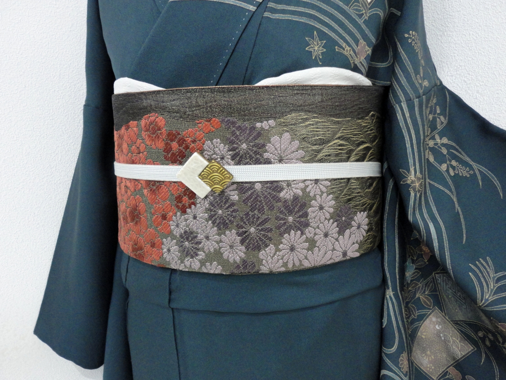 ○雅星○20%OFF!!超美!!カーキ*山並文 花模様 菱♪正絹六通《袋帯》 39,800円のところ 販売価格 31,840円 (税込) 購入数 \送料無料/ カートに入れる この商品について問い合わせる お気に入り 特定商取引法に基づく表記 商品詳細 状態ランク: ★★★★★ 重厚感のある豪華な色柄ですが、多少張りのある軽い締め心地。 お太鼓柄は銀の箔がザクっと織り込まれている菱模様の地に 刺繍であしらわれた花模様、 光の加減で煌めき、ドレスアップが楽しめます! 胴柄は金糸であしらわれた透かし織り地に花模様と、 お太鼓と胴と別々のデザインが粋♪ 合わせるお着物をぐっと格上げしてくれる大変上質な袋帯です。 留袖・お振袖・訪問着・付下げ等のフォーマルシーンからパーティまで幅広くお使いください。 目立つシミ・汚れはなく状態の良い綺麗なお品です。 帯のみの価格で、着物・小物は含まれておりません。 サイズ・素材 長さ 31cm×435cm 素材 正絹 状態ランクについて ★★★★★ 超美品・新品・未使用品です。 ★★★★ 中古品ですがダメージの無いお品です。 ★★★ 薄ジミなどがありますが着用時には目立ちません。 ★★ 工夫次第で十分着用可能なお買い得品です ★ 大きめのシミがありますので、リメイク材料等にどうぞ。 _fo