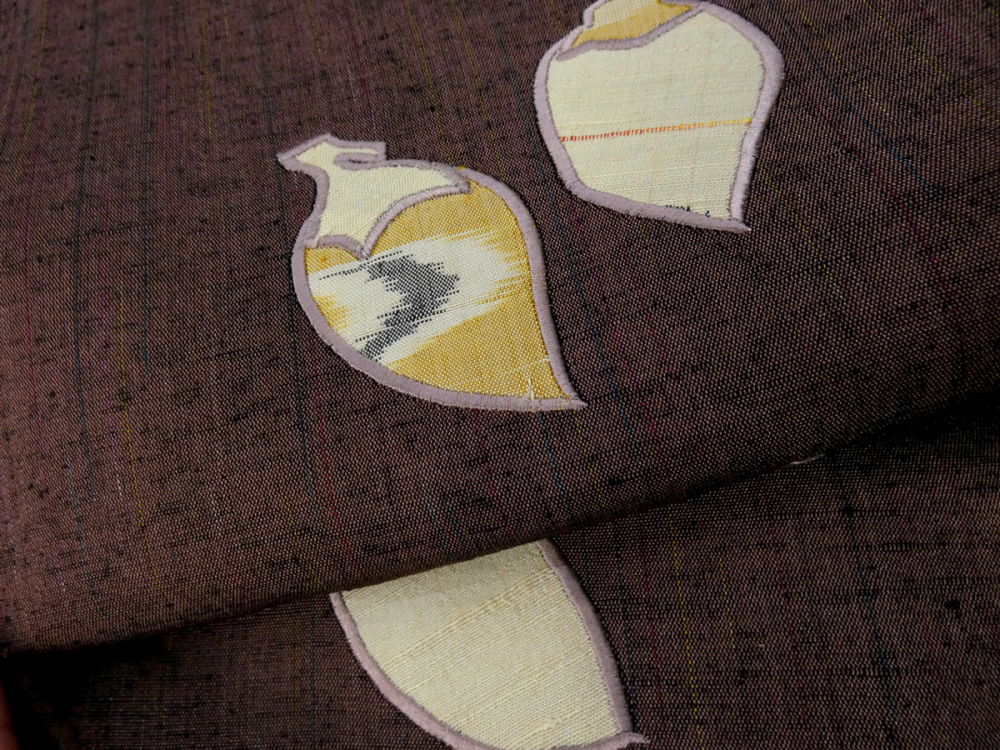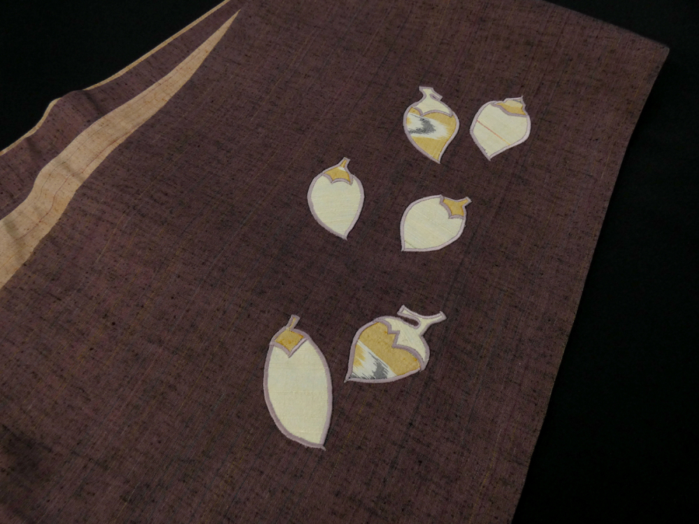 ◆雅星◆20%OFF!!超美!!蘇芳香色*パッチワーク 柿 正絹 紬地《京袋帯》 37,800円のところ 販売価格 30,240円 (税込) 購入数 \送料無料/ カートに入れる この商品について問い合わせる お気に入り 特定商取引法に基づく表記 商品詳細 状態ランク: ★★★★ 京袋帯は、普通の袋帯に比べ短く、名古屋帯と同じように結ぶ帯です。 小紋、紬、ウールなどの普段着に合わせて頂けます。 青みのブラウンに黒い糸が織り込まれた正絹地、 パッチワークの柿が可愛らしいです。 紬地ですが薄手でしなやかなので軽い締め心地◎ 普段着使いに万能、綺麗目な正統派からカジュアルコーデまで幅広く楽しんで頂けます。 シミ汚れのない超美品です。 帯のみの価格で、着物・小物は含まれておりません。 サイズ・素材 長さ 30.5cm×366cm 素材 正絹 状態ランクについて ★★★★★ 超美品・新品・未使用品です。 ★★★★ 中古品ですがダメージの無いお品です。 ★★★ 薄ジミなどがありますが着用時には目立ちません。 ★★ 工夫次第で十分着用可能なお買い得品です ★ 大きめのシミがありますので、リメイク材料等にどうぞ。