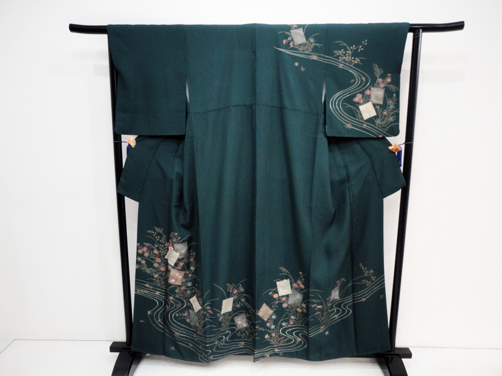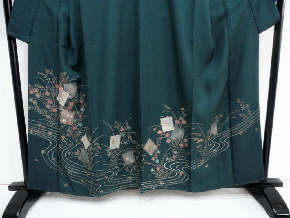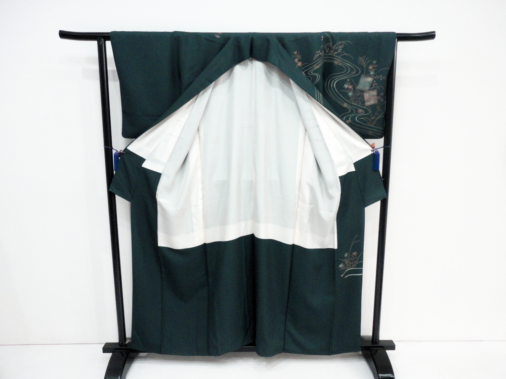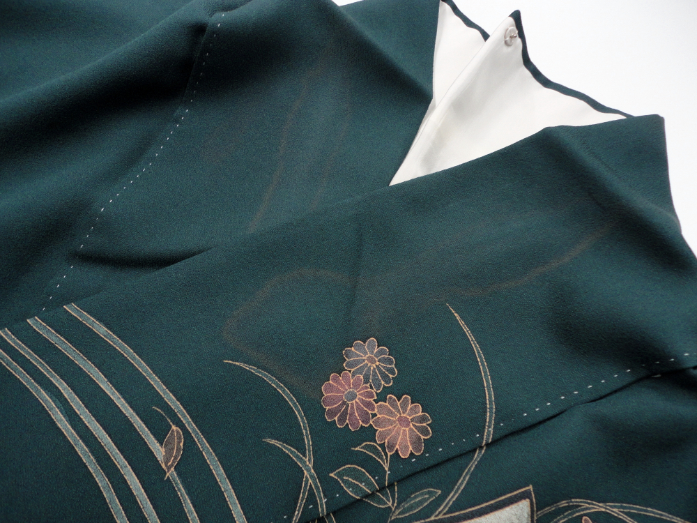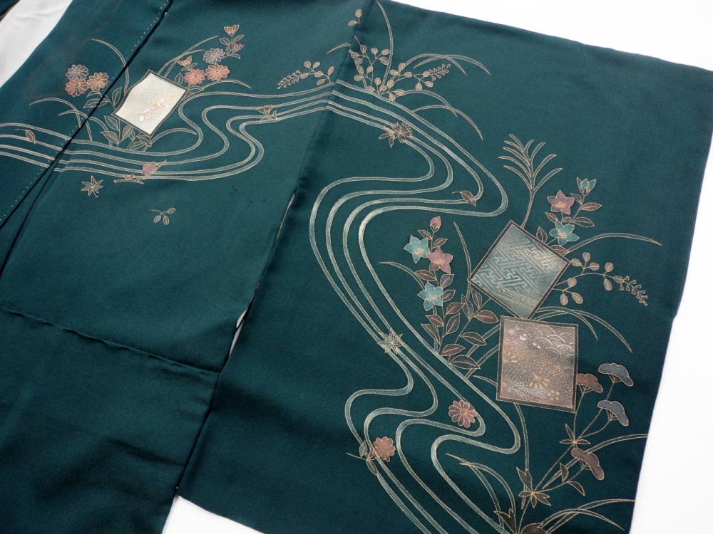 ○雅星○高麗納戸*汕頭刺繍 流水に四季の花♪訪問着 正絹袷 裄63.5丈159 販売価格 19,800円 (税込) 購入数 \送料無料/ カートに入れる この商品について問い合わせる お気に入り 特定商取引法に基づく表記 コーディネートで使用している商品 ○雅星○20%OFF!!超美!!カーキ*山並文 花模様 菱♪正絹六通《袋帯》 31,840円(税込) ★雅星本店オリジナル★新品!!プラチナ*シマシマ 銀通し 帯揚げ 正絹 【クリックポスト発送】 15,400円(税込) ★雅星本店オリジナル★新品!!プラチナ*帯締め 房付き四分紐 正絹【クリックポスト発送】 14,800円(税込) 商品詳細 状態ランク: ★★★ 濃い青緑ベースに流水文と四季の花、 一部刺繍、汕頭刺繡もあしらわれており古典的で日本古来の優美さが素敵な色柄です。 しなやかな正絹地なので落ち感も綺麗。 帯次第でフォーマルシーンからちょっとしたお出掛けまで振り幅広めにお使い頂ける訪問着です。 《袷・広衿》身長154〜164cm位までの方にオススメです。 両衿にシミが見られるためグッとお値下げしております。 その他は目立つシミ汚れは見られませんので お手入れに出してもお買い得なお品です! もちろん気にならなければそのままでも十分お楽しみ頂けます。 着物のみの価格で、帯・小物は含まれておりません。 サイズ・素材 裄 63.5cm 肩身丈 159cm 袖丈 49cm 袖幅 32.5cm 前幅 25cm 後ろ幅 30.5cm 内揚げ 15cm 縫込み(袖側) 3cm 縫込み(肩側) 4cm 素材 正絹 状態ランクについて ★★★★★ 超美品・新品・未使用品です。 ★★★★ 中古品ですがダメージの無いお品です。 ★★★ 薄ジミなどがありますが着用時には目立ちません。 ★★ 工夫次第で十分着用可能なお買い得品です ★ 大きめのシミがありますので、リメイク材料等にどうぞ。 _fo