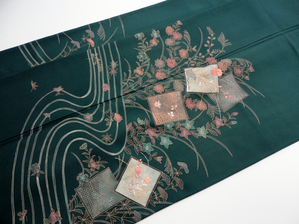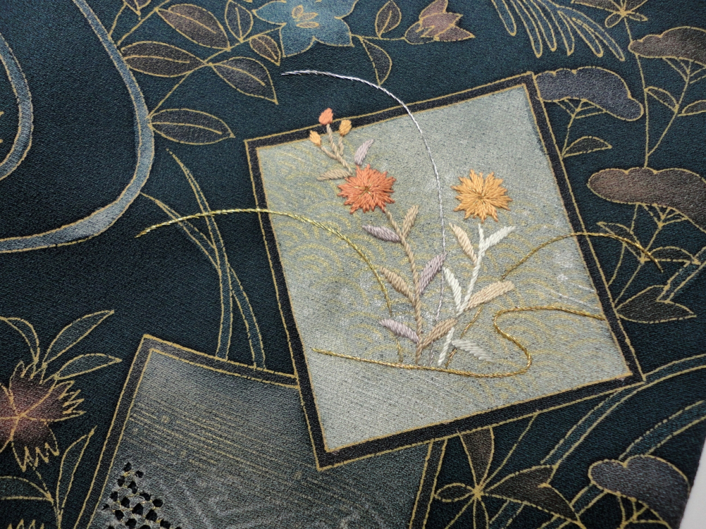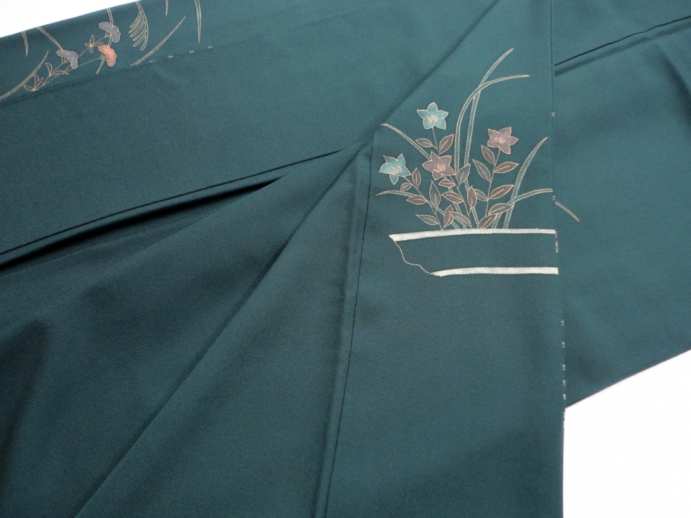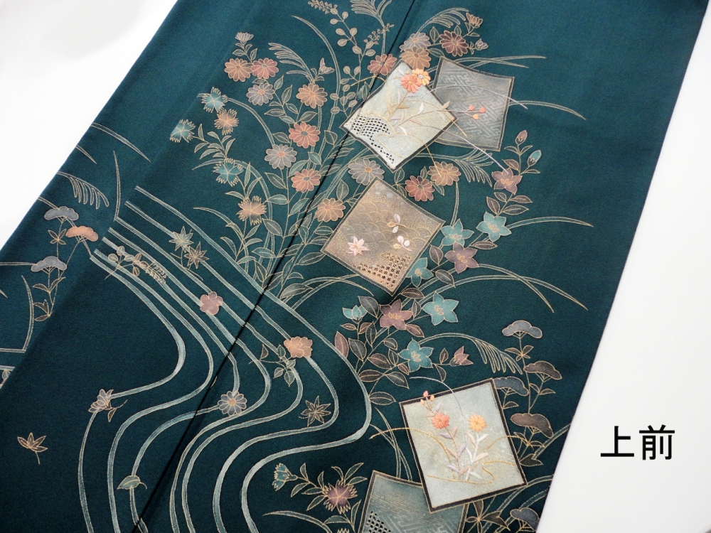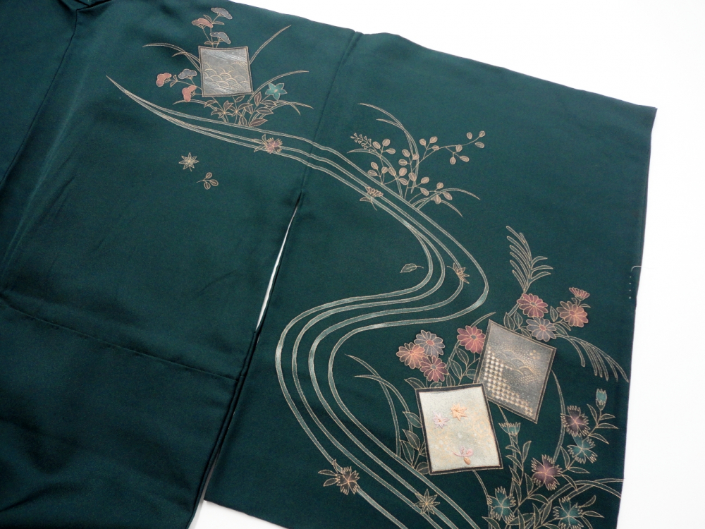 ○雅星○高麗納戸*汕頭刺繍 流水に四季の花♪訪問着 正絹袷 裄63.5丈159 販売価格 19,800円 (税込) 購入数 \送料無料/ カートに入れる この商品について問い合わせる お気に入り 特定商取引法に基づく表記 コーディネートで使用している商品 ○雅星○20%OFF!!超美!!カーキ*山並文 花模様 菱♪正絹六通《袋帯》 31,840円(税込) ★雅星本店オリジナル★新品!!プラチナ*シマシマ 銀通し 帯揚げ 正絹 【クリックポスト発送】 15,400円(税込) ★雅星本店オリジナル★新品!!プラチナ*帯締め 房付き四分紐 正絹【クリックポスト発送】 14,800円(税込) 商品詳細 状態ランク: ★★★ 濃い青緑ベースに流水文と四季の花、 一部刺繍、汕頭刺繡もあしらわれており古典的で日本古来の優美さが素敵な色柄です。 しなやかな正絹地なので落ち感も綺麗。 帯次第でフォーマルシーンからちょっとしたお出掛けまで振り幅広めにお使い頂ける訪問着です。 《袷・広衿》身長154〜164cm位までの方にオススメです。 両衿にシミが見られるためグッとお値下げしております。 その他は目立つシミ汚れは見られませんので お手入れに出してもお買い得なお品です! もちろん気にならなければそのままでも十分お楽しみ頂けます。 着物のみの価格で、帯・小物は含まれておりません。 サイズ・素材 裄 63.5cm 肩身丈 159cm 袖丈 49cm 袖幅 32.5cm 前幅 25cm 後ろ幅 30.5cm 内揚げ 15cm 縫込み(袖側) 3cm 縫込み(肩側) 4cm 素材 正絹 状態ランクについて ★★★★★ 超美品・新品・未使用品です。 ★★★★ 中古品ですがダメージの無いお品です。 ★★★ 薄ジミなどがありますが着用時には目立ちません。 ★★ 工夫次第で十分着用可能なお買い得品です ★ 大きめのシミがありますので、リメイク材料等にどうぞ。 _fo
