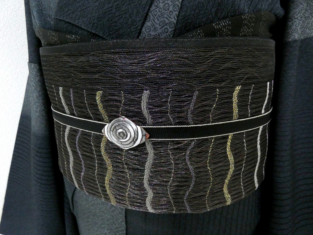 ◆雅星◆20%OFF!!超美!!ブラック*すくい織 横段ウェーブ 正絹《袋帯》 42,800円のところ 販売価格 34,240円 (税込) 購入数 \送料無料/ カートに入れる この商品について問い合わせる お気に入り 特定商取引法に基づく表記 商品詳細 状態ランク: ★★★★ ブラックベースに金銀に紫系の糸で織り出された横段ウェーブ模様、 スタイリングを上質な雰囲気に格上げしてくれます! 様々なコーデに合わせやすい袋帯です。 目立つシミ・汚れのない綺麗なお品です。 帯のみの価格で、着物・小物は含まれておりません。 サイズ・素材 長さ 31cm×440cm 素材 正絹 状態ランクについて ★★★★★ 超美品・新品・未使用品です。 ★★★★ 中古品ですがダメージの無いお品です。 ★★★ 薄ジミなどがありますが着用時には目立ちません。 ★★ 工夫次第で十分着用可能なお買い得品です ★ 大きめのシミがありますので、リメイク材料等にどうぞ。