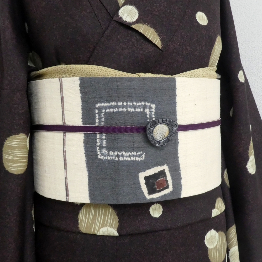 〓雅星〓20%OFF!!未使用超美!!グレー*紬地 絞り スクエア♪正絹九寸《名古屋帯》 34,800円のところ 販売価格 27,840円 (税込) 購入数 \送料無料/ カートに入れる この商品について問い合わせる お気に入り 特定商取引法に基づく表記 商品詳細 状態ランク: ★★★★★ しなやかで軽い締め心地の紬地。 グレーベースにスクエア形の抽象文が絞りで施されたモダンなデザイン。 綺麗目な正統派もちろん、自由な今っぽいスタイリングも楽しめる名古屋帯です。 シミ・汚れ・着用感もなく、未使用品と遜色ない綺麗なお品です。(撮影時のみ使用) 帯のみの価格で、着物・小物は含まれておりません。 サイズ・素材 長さ 31cm×379cm 素材 正絹 状態ランクについて ★★★★★ 超美品・新品・未使用品です。 ★★★★ 中古品ですがダメージの無いお品です。 ★★★ 薄ジミなどがありますが着用時には目立ちません。 ★★ 工夫次第で十分着用可能なお買い得品です ★ 大きめのシミがありますので、リメイク材料等にどうぞ。