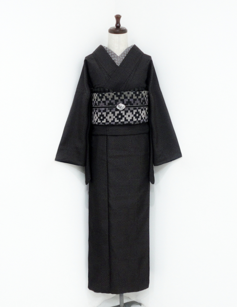 ○雅星○超美!!ブラック*格子 十字絣 縞 お召し 正絹袷 裄65丈160ロング 販売価格 52,800円 (税込) 購入数 \送料無料/ カートに入れる この商品について問い合わせる お気に入り 特定商取引法に基づく表記 コーディネートで使用している商品 ○雅星○美品!!ブラック*幾何学模様♪洗える《京袋帯》 22,800円(税込) ★雅星本店オリジナル★新品!!ブラック*シマシマ 銀通し 帯揚げ 正絹 【クリックポスト発送】 15,400円(税込) ★雅星本店オリジナル★新品!!ブラック*帯締め 房付き四分紐 正絹【クリックポスト発送】 14,800円(税込) 商品詳細 状態ランク: ★★★★★ シボのない、しなやかな手触りのお召し地。 ブラックベースに市松、縞模様と十字絣がエレガントな印象。 ベーシックな色柄なのでドレスアップorカジュアルダウン自在にお楽しみ頂ける現代のお召しキモノです!! 人と差のつくワンランク上の大人の普段着におススメな逸品です◎ 《袷・広衿》身長155〜165cm位までの方にオススメです。 目立つシミ・汚れはなく、未使用品と遜色ない綺麗なお品です。 着物のみの価格で、帯・小物は含まれておりません。 サイズ・素材 裄 65cm 肩身丈 160cm 袖丈 49cm 袖幅 34cm 前幅 24cm 後ろ幅 30cm 内揚げ 17cm 縫込み(袖側) 2cm 縫込み(肩側) 3cm 素材 正絹 状態ランクについて ★★★★★ 超美品・新品・未使用品です。 ★★★★ 中古品ですがダメージの無いお品です。 ★★★ 薄ジミなどがありますが着用時には目立ちません。 ★★ 工夫次第で十分着用可能なお買い得品です ★ 大きめのシミがありますので、リメイク材料等にどうぞ。