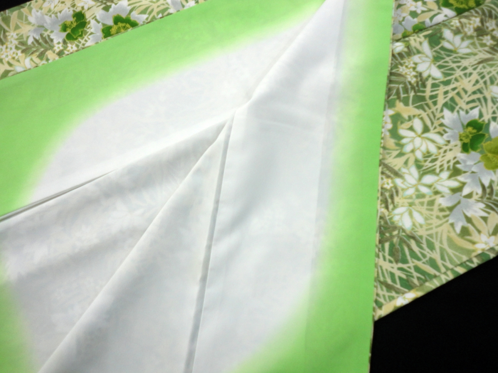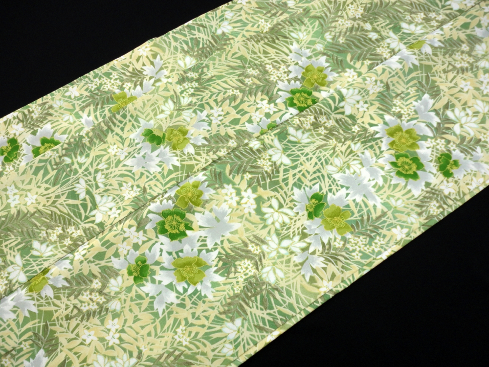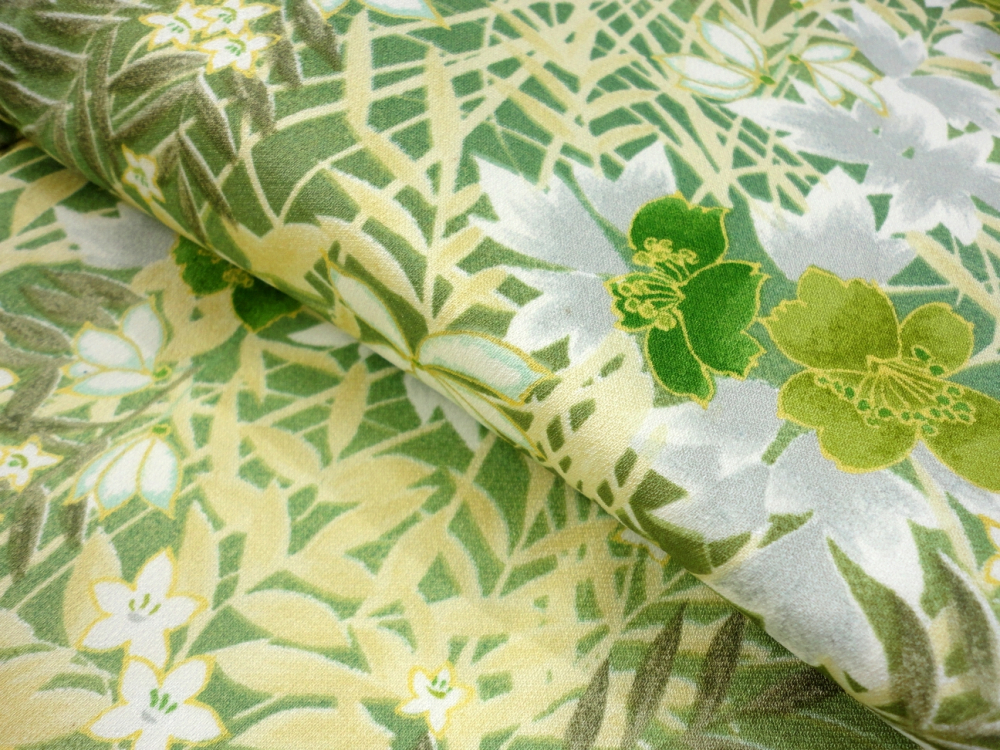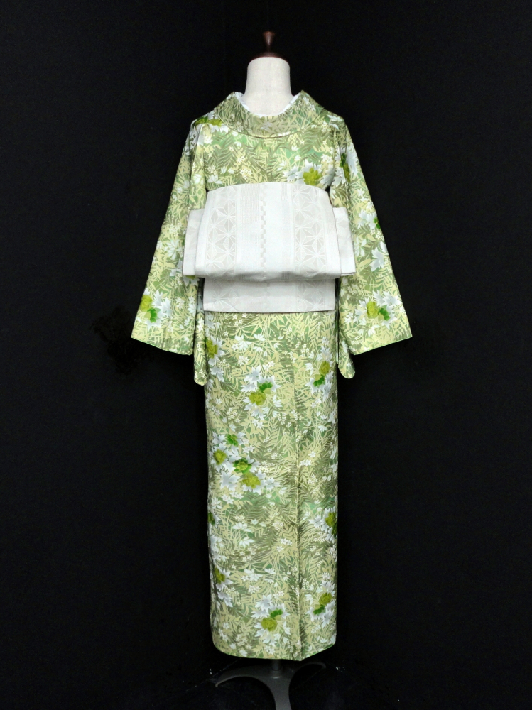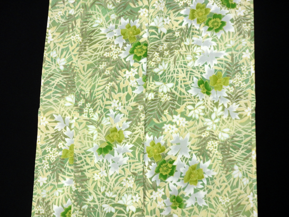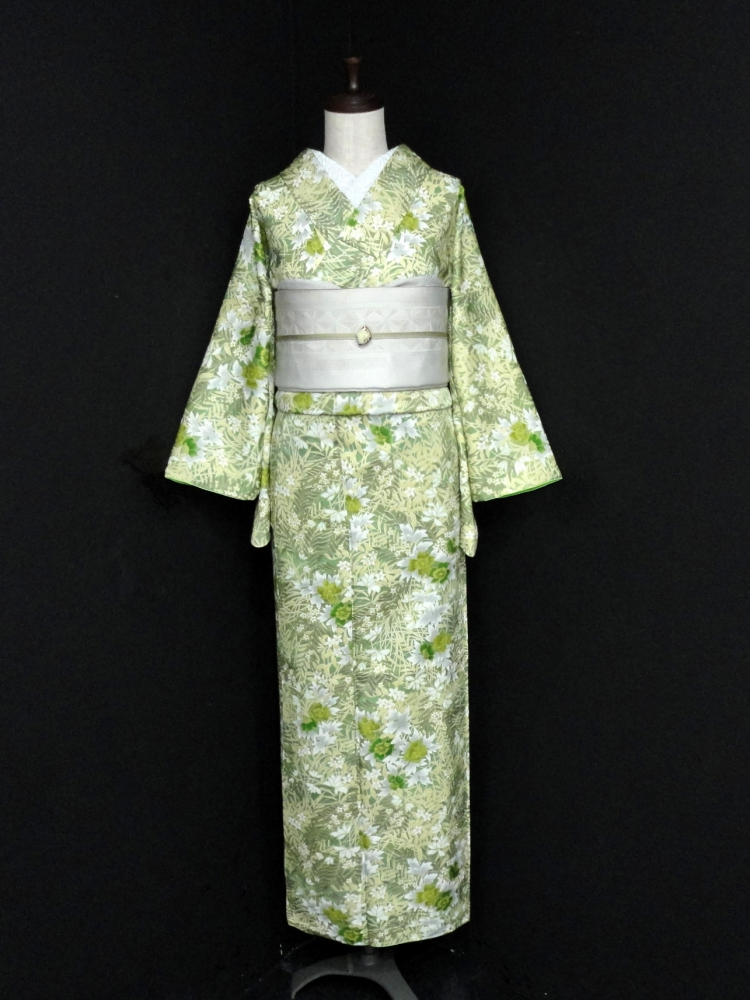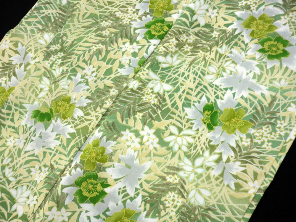 新着商品○雅星○美品!!リーフグリーン*ボタニカル 洗える小紋 袷 裄63丈163ロング