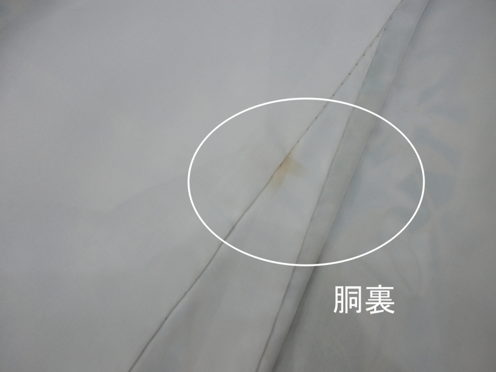 しつけ付き、胴裏に薄シミが見られますが隠れます。