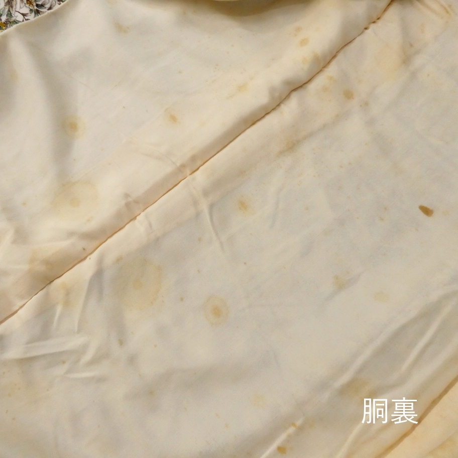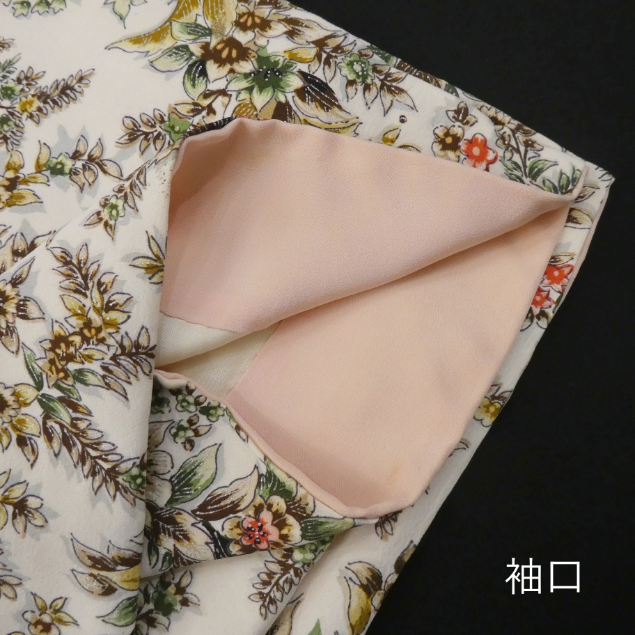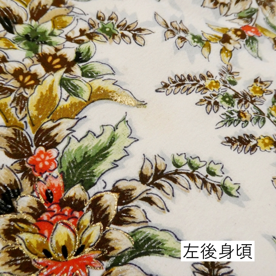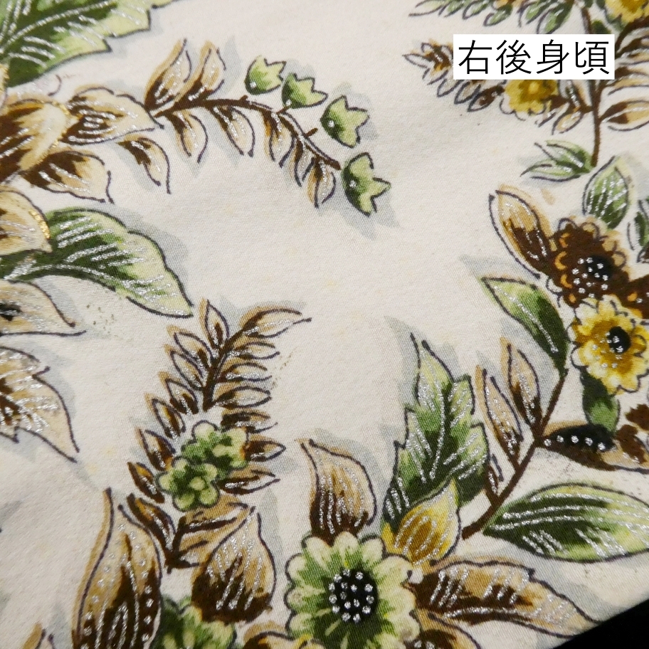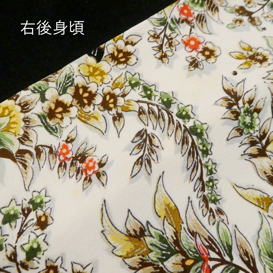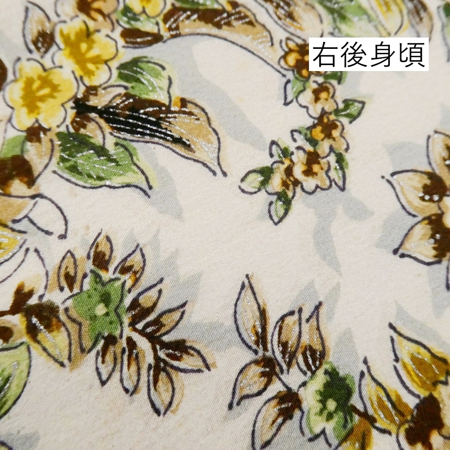 〓雅星〓アンティーク!!アイボリー*ボタニカル 唐花♪小紋 正絹袷 裄61.5丈152 販売価格 17,800円 (税込) 購入数 \送料無料/ カートに入れる この商品について問い合わせる お気に入り 特定商取引法に基づく表記 商品詳細 状態ランク: ★★★ しなやかな手触りで落ち感の綺麗な正絹地。 アイボリーベースにオリエンタルな雰囲気の唐花模様があしらわれエレガントな印象♪ 全体的に落ち着いた色合いでまとめられているので、大人の女性も抵抗なくご着用頂けるアンティーク小紋です。 《袷・バチ衿》身長〜157cm位までの方にオススメです。 それ以上の方は対丈や洋服ミックス、ミセル裾除けホムシュヘムなどと合わせても♪ 胴裏に強い変色、八掛・袖口に薄汚れが見られます。 表地にも薄っすら黄くすみがありますが、着後に酷く目立つような濃いダメージはありません。 その分お値下げしていますので、時代物に慣れた方・色柄を気に入って下さった方に是非! 着物のみの価格で、帯・小物は含まれておりません。 サイズ・素材 裄 61.5cm 肩身丈 152cm 袖丈 48cm 袖幅 32cm 前幅 22.5cm 後ろ幅 28.5cm 内揚げ 2cm 縫込み(袖側) 2.5cm 縫込み(肩側) 2.5cm 素材 正絹 状態ランクについて ★★★★★ 超美品・新品・未使用品です。 ★★★★ 中古品ですがダメージの無いお品です。 ★★★ 薄ジミなどがありますが着用時には目立ちません。 ★★ 工夫次第で十分着用可能なお買い得品です ★ 大きめのシミがありますので、リメイク材料等にどうぞ。 _an