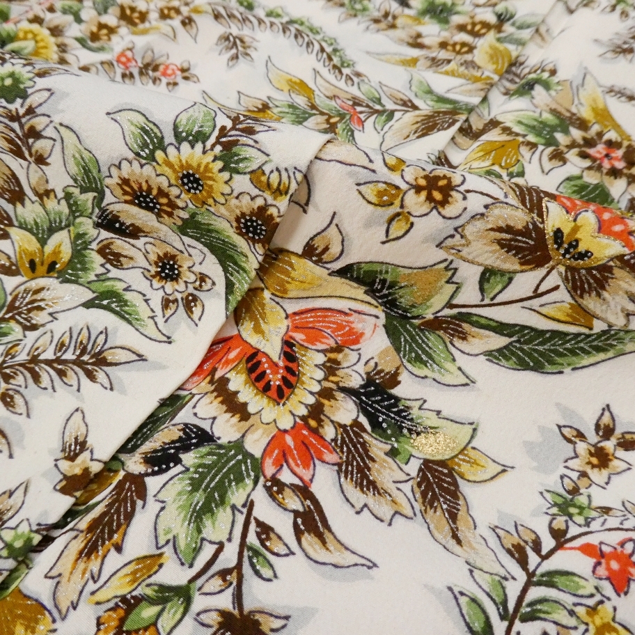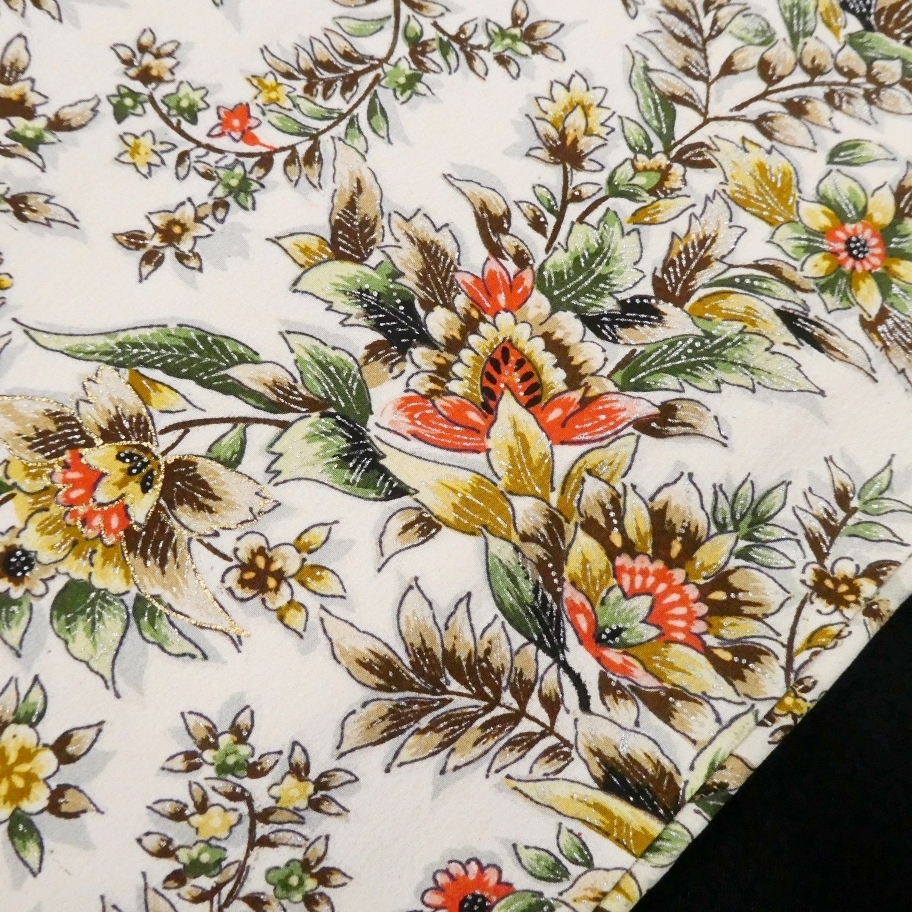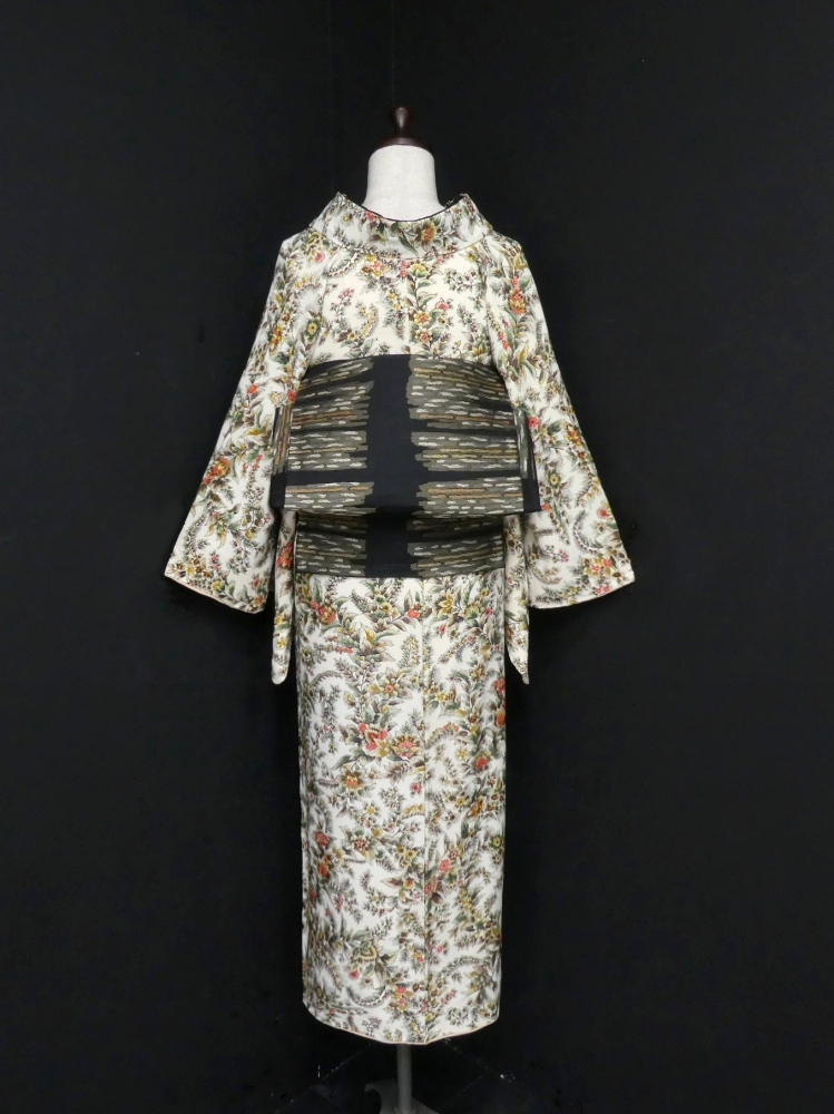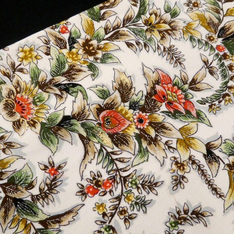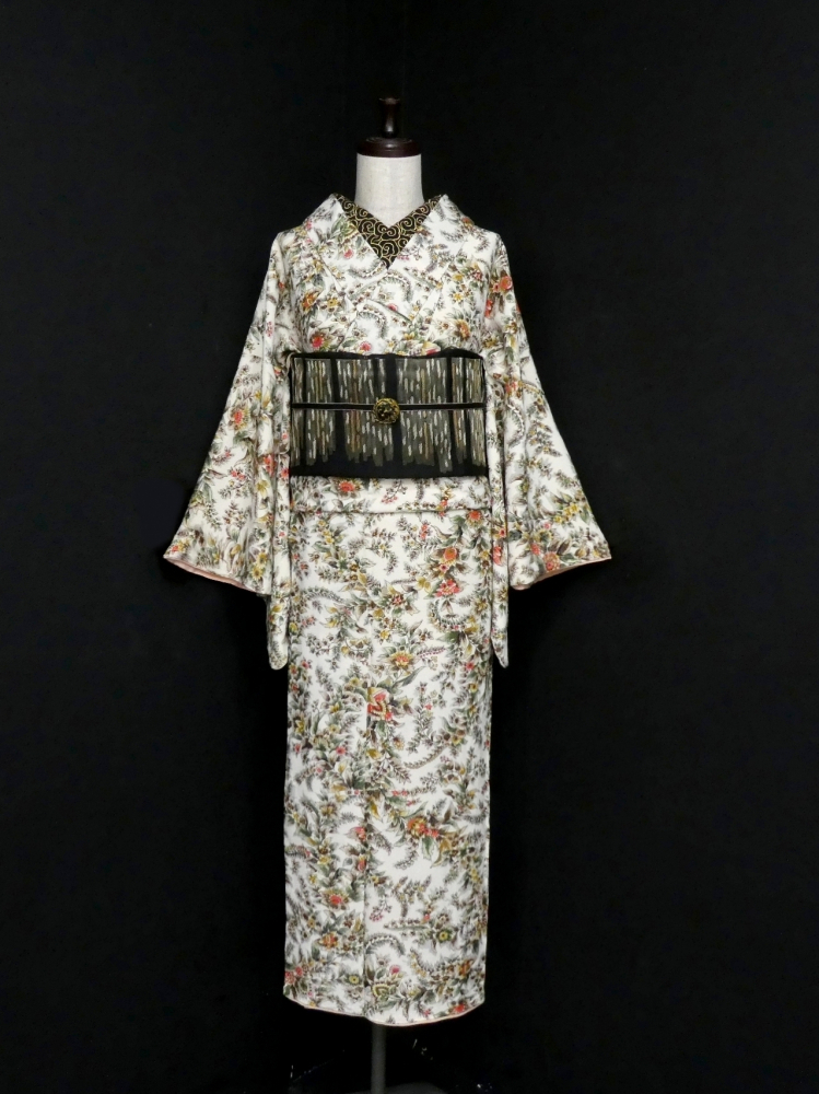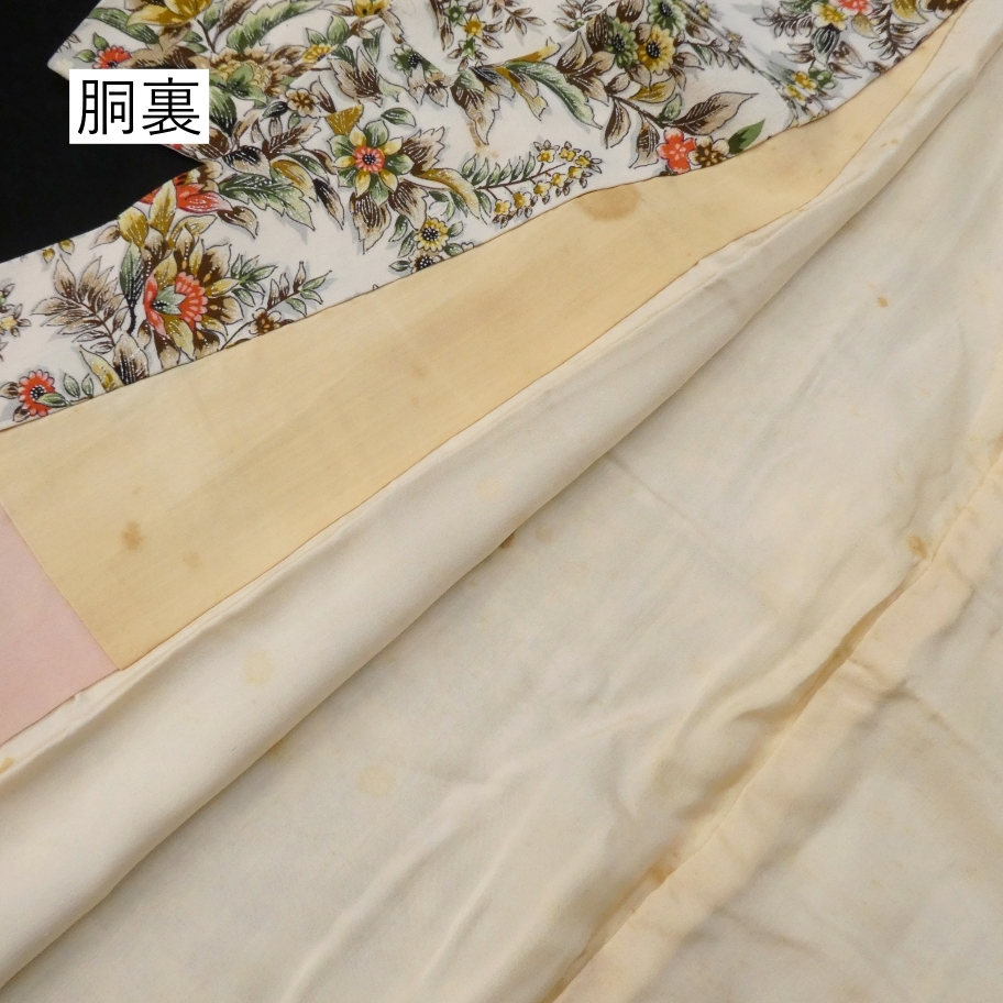〓雅星〓アンティーク!!アイボリー*ボタニカル 唐花♪小紋 正絹袷 裄61.5丈152 販売価格 17,800円 (税込) 購入数 \送料無料/ カートに入れる この商品について問い合わせる お気に入り 特定商取引法に基づく表記 商品詳細 状態ランク: ★★★ しなやかな手触りで落ち感の綺麗な正絹地。 アイボリーベースにオリエンタルな雰囲気の唐花模様があしらわれエレガントな印象♪ 全体的に落ち着いた色合いでまとめられているので、大人の女性も抵抗なくご着用頂けるアンティーク小紋です。 《袷・バチ衿》身長〜157cm位までの方にオススメです。 それ以上の方は対丈や洋服ミックス、ミセル裾除けホムシュヘムなどと合わせても♪ 胴裏に強い変色、八掛・袖口に薄汚れが見られます。 表地にも薄っすら黄くすみがありますが、着後に酷く目立つような濃いダメージはありません。 その分お値下げしていますので、時代物に慣れた方・色柄を気に入って下さった方に是非! 着物のみの価格で、帯・小物は含まれておりません。 サイズ・素材 裄 61.5cm 肩身丈 152cm 袖丈 48cm 袖幅 32cm 前幅 22.5cm 後ろ幅 28.5cm 内揚げ 2cm 縫込み(袖側) 2.5cm 縫込み(肩側) 2.5cm 素材 正絹 状態ランクについて ★★★★★ 超美品・新品・未使用品です。 ★★★★ 中古品ですがダメージの無いお品です。 ★★★ 薄ジミなどがありますが着用時には目立ちません。 ★★ 工夫次第で十分着用可能なお買い得品です ★ 大きめのシミがありますので、リメイク材料等にどうぞ。 _an