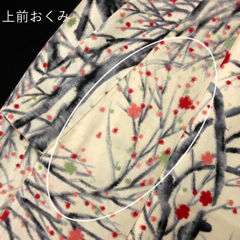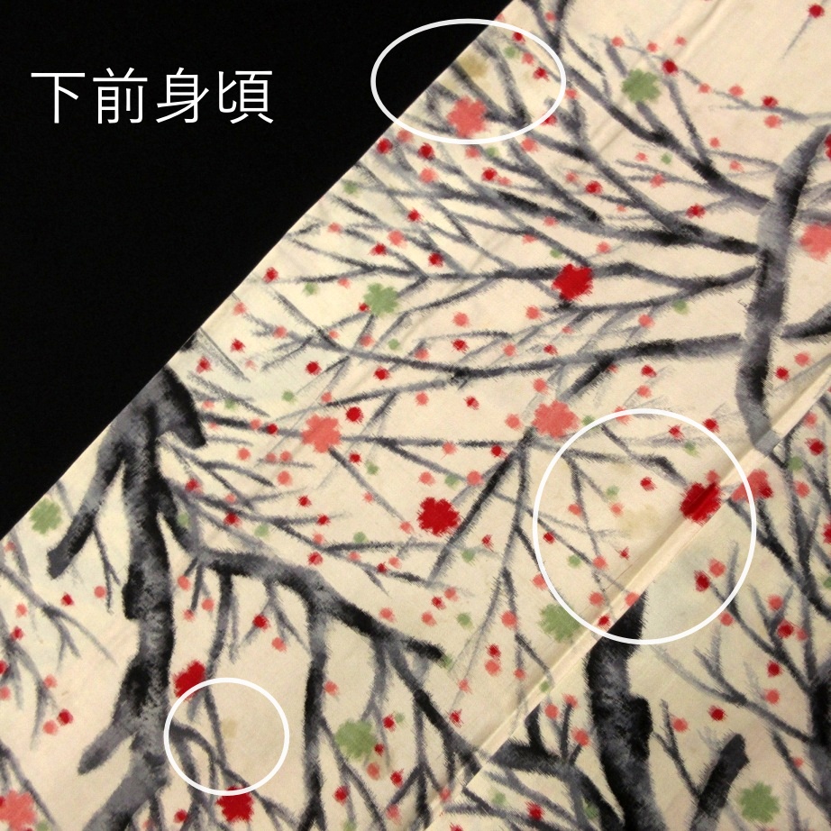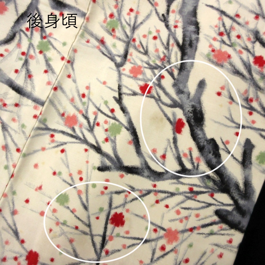 ■雅星■レトロ!!アイボリー*梅枝文♪銘仙 正絹袷 裄62丈147 販売価格 17,800円 (税込) 購入数 \送料無料/ カートに入れる この商品について問い合わせる お気に入り 特定商取引法に基づく表記 コーディネートで使用している商品 ■雅星■超美!!ブラック*ろうけつ染め チューリップ♪塩瀬 正絹九寸《名古屋帯》 26,800円(税込) ■雅星■アンティーク!!茜レッド*菊花 向い鶴扇子♪銘仙 長羽織 正絹 裄62.5丈95 22,800円(税込) ★雅星本店オリジナル★新品*リバーシブル 縁あり三分紐【クリックポスト発送】 6,600円(税込) 商品詳細 状態ランク: ★★★ アイボリーベースに小さな梅がポップでレトロ可愛い♪ 帯次第で大人可愛くorちょっと個性的にも楽しめそうな銘仙キモノです。 ワンピース感覚や洋服ミックスでお楽しみ頂いても素敵!! 《袷・バチ衿》身長〜152cm位までの方にオススメです。 胴裏に薄変色・濃い点シミがありますが表地には影響はありません。 画像の様な薄シミがありますが、色柄が華やかなので目立ちにくく感じました。 しつけ糸付、時代物に慣れた方で十分にお楽しみ頂けるお品です。 着物のみの価格で、帯・小物は含まれておりません。 サイズ・素材 裄 62cm 肩身丈 147cm 袖丈 49.5cm 袖幅 32cm 前幅 23cm 後ろ幅 28.5cm 内揚げ 0cm 縫込み(袖側) 2cm 縫込み(肩側) 3cm 素材 正絹 状態ランクについて ★★★★★ 超美品・新品・未使用品です。 ★★★★ 中古品ですがダメージの無いお品です。 ★★★ 薄ジミなどがありますが着用時には目立ちません。 ★★ 工夫次第で十分着用可能なお買い得品です ★ 大きめのシミがありますので、リメイク材料等にどうぞ。 _an
