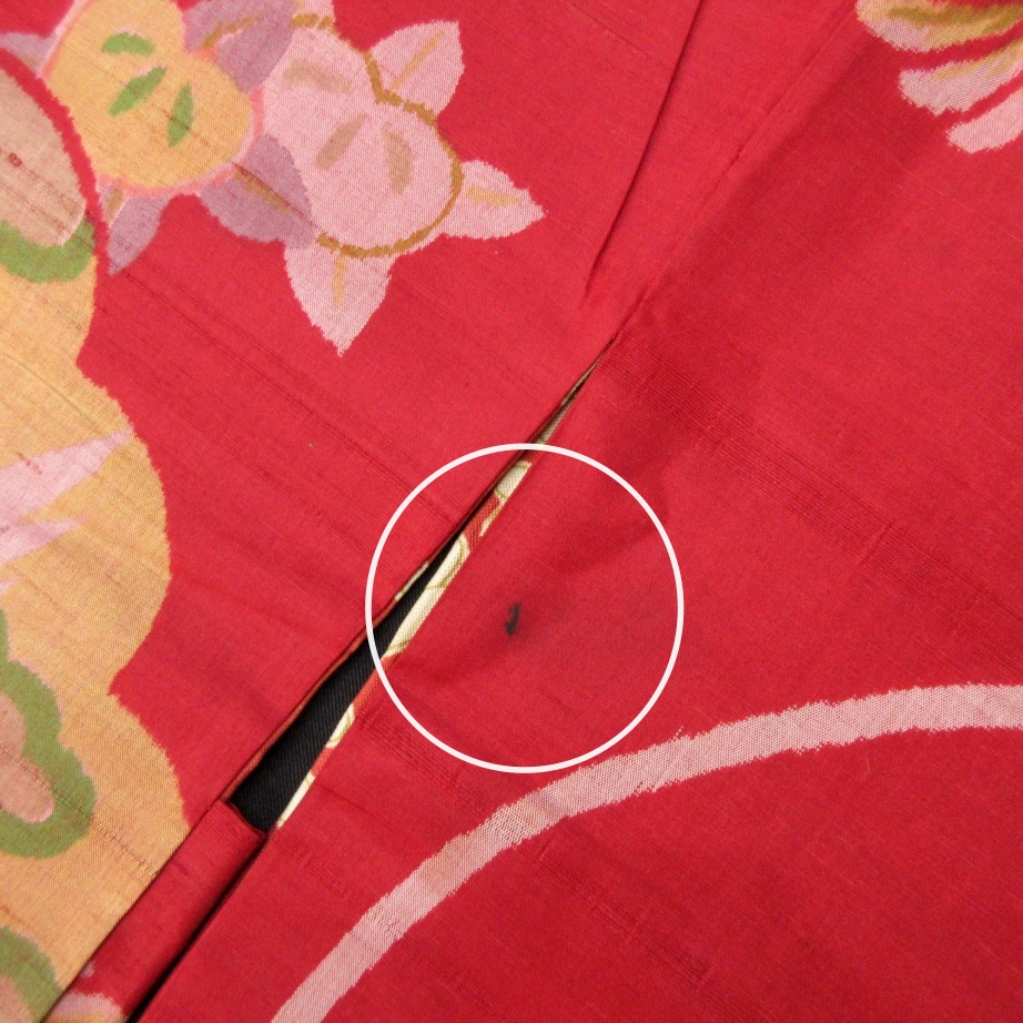 大きめのシミがありますので、リメイク材料等にどうぞ。