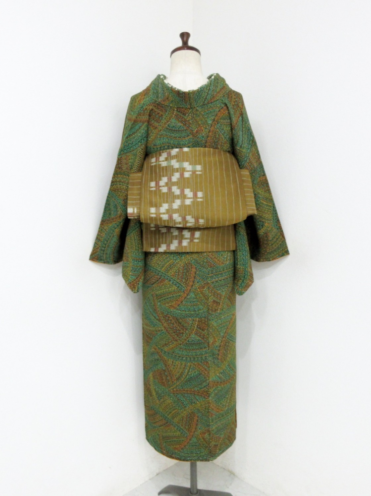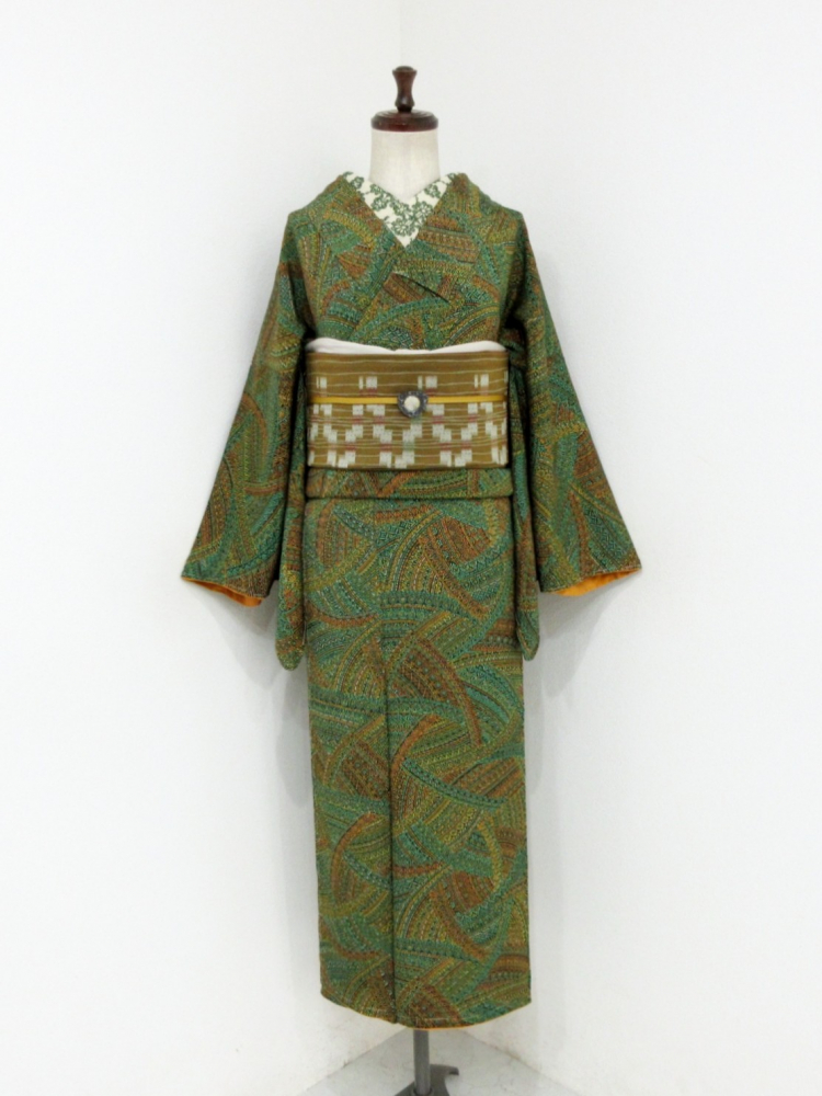 ■雅星■レトロ!!グリーン×オレンジ*アフリカン バティック♪小紋 正絹袷 裄64.5丈152 販売価格 34,800円 (税込) 購入数 \送料無料/ カートに入れる この商品について問い合わせる お気に入り 特定商取引法に基づく表記 コーディネートで使用している商品 ■雅星■美品!!ローアンバー×ブラウン*絣 シマシマ♪洗える リバーシブル《京袋帯》 14,800円(税込) ★雅星本店オリジナル★新品!!グレージュ*帯揚げ 正絹縮緬 【クリックポスト発送】 8,200円(税込) ★雅星本店オリジナル★新品*リバーシブル 縁あり三分紐【クリックポスト発送】 6,600円(税込) 商品詳細 状態ランク: ★★★★ とろんとした、しなやかな手触りで落ち感の綺麗な正絹地。 グリーン&オレンジベースに、アフリカンバティック柄の様な抽象柄がインパクトがあり目を惹きます。 時代物ならではの大胆なデザインで人と差のつく着こなしが楽しめるセミアンティーク小紋です。 《袷・バチ衿》身長〜157cm位までの方にオススメです。 胴裏に点シミがありますがご着用に何ら問題はありません。 しつけ付き! 目立つシミ・汚れがなく、時代物の中ではかなり状態の良い綺麗なお品です。 着物のみの価格で、帯・小物は含まれておりません。 サイズ・素材 裄 64.5cm 肩身丈 152cm 袖丈 45cm 袖幅 32cm 前幅 25cm 後ろ幅 29cm 内揚げ 0cm 縫込み(袖側) 1.5cm 縫込み(肩側) 1cm 素材 正絹 状態ランクについて ★★★★★ 超美品・新品・未使用品です。 ★★★★ 中古品ですがダメージの無いお品です。 ★★★ 薄ジミなどがありますが着用時には目立ちません。 ★★ 工夫次第で十分着用可能なお買い得品です ★ 大きめのシミがありますので、リメイク材料等にどうぞ。 _an