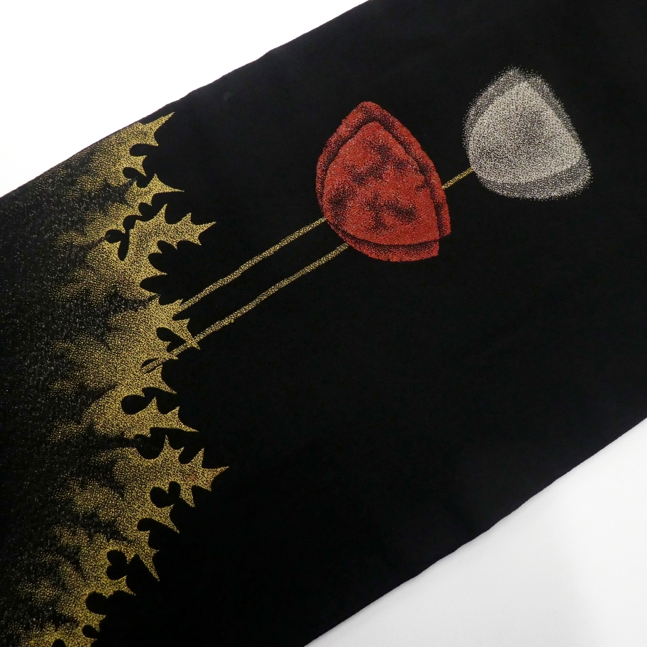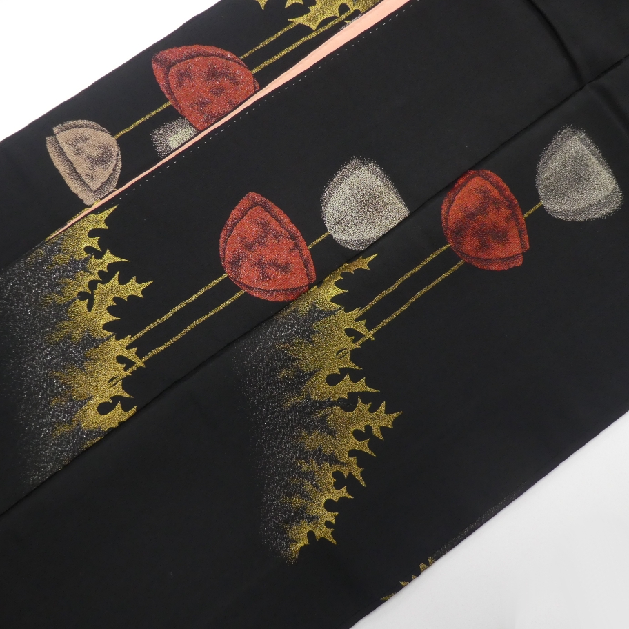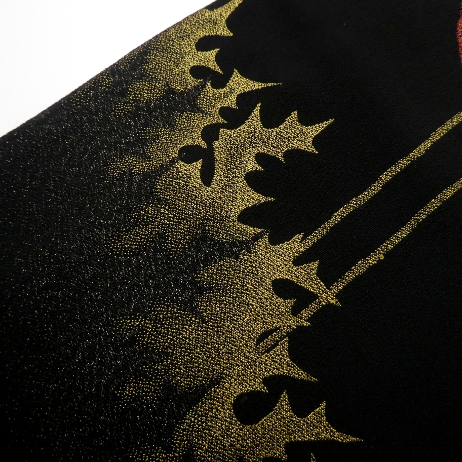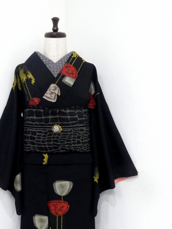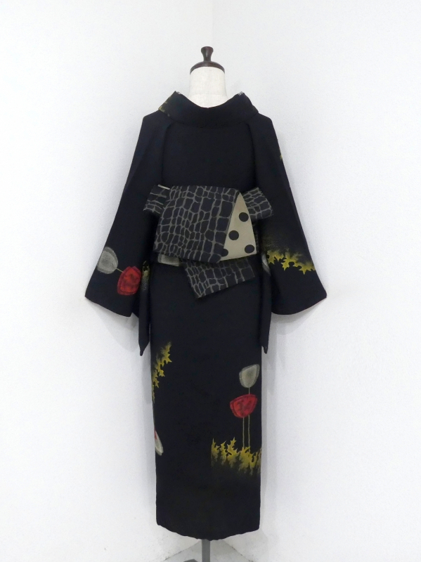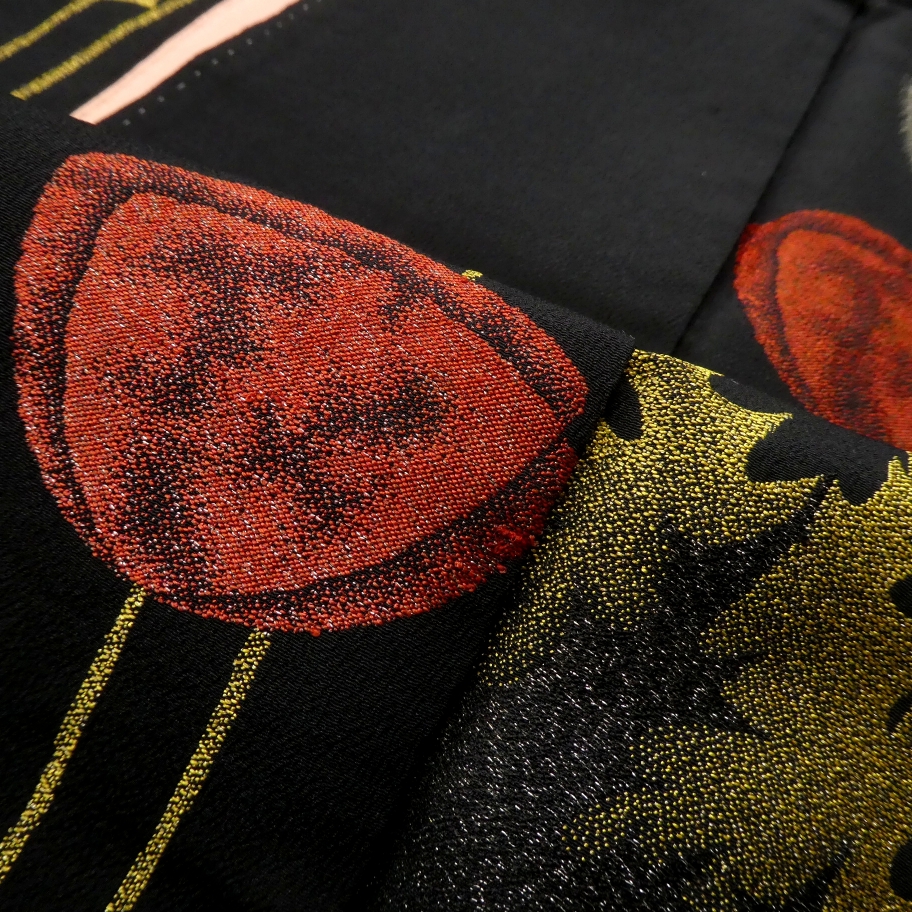 新着商品〓雅星〓レトロ!!ブラック*ポピー♪お召し 正絹袷 裄62丈152