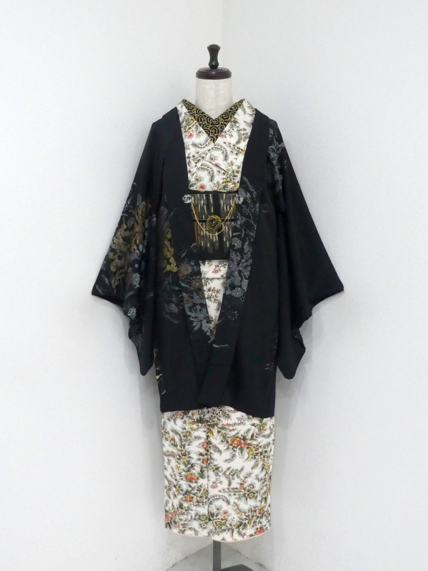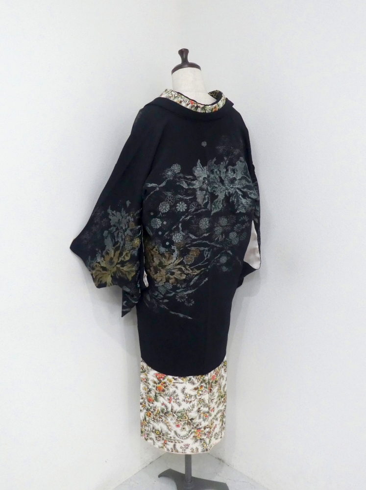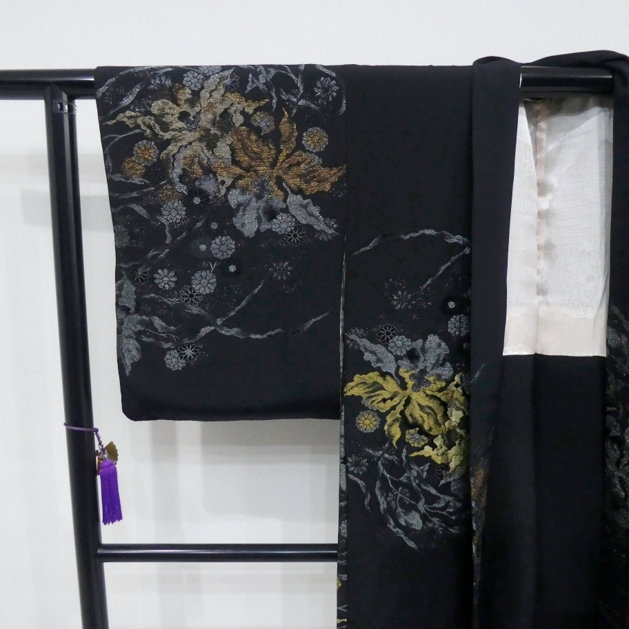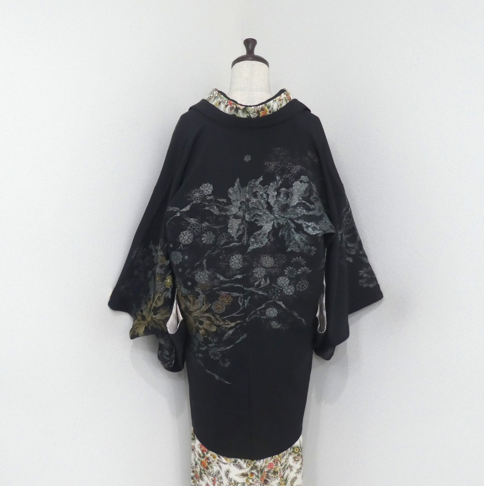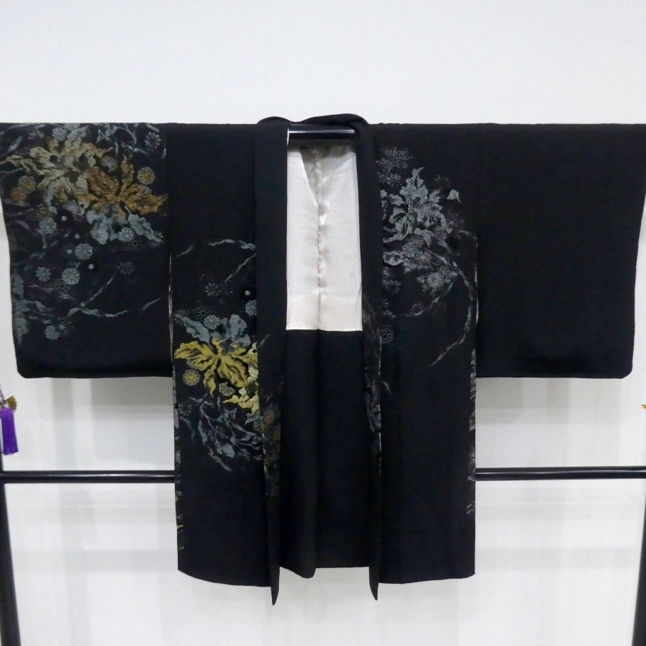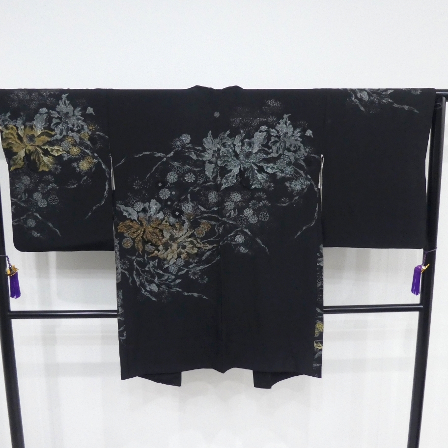 〓雅星〓レトロ!!ブラック*縫い取り ボタニカル♪一つ紋 絵羽織 正絹 裄62丈87 販売価格 32,800円 (税込) 購入数 \送料無料/ カートに入れる この商品について問い合わせる お気に入り 特定商取引法に基づく表記 商品詳細 状態ランク: ★★★ しなやかで落ち感の綺麗な正絹地。 黒地ベースにキラキラ煌めく縫い取りであしらわれたボタニカル模様がエレガントな印象です。 絵羽柄になっているので後ろ姿も見惚れる艶やかさ。 縫いの一つ紋入り、1枚羽織るだけでこなれた着こなしに格上げしてくれるセミアンティークの絵羽織です。 この時期ならではの重ね着コーデをお楽しみください♪ 羽織紐は付属していません。 黒地なので画像のような白っぽい薄汚れが2か所程ありますが、いずれも軽度なので注意深く見なければ気づかない程度です◎ 着後に酷く目立つ汚れはなく、大変状態の良い綺麗なお品です。 羽織のみ価格で、着物は含まれておりません。 サイズ・素材 裄 62cm 肩身丈 87cm 袖丈 48.5cm 袖幅 31cm 前幅 -cm 後ろ幅 30cm 内揚げ -cm 縫込み(袖側) 0.5cm 縫込み(肩側) 0.5cm 素材 正絹 状態ランクについて ★★★★★ 超美品・新品・未使用品です。 ★★★★ 中古品ですがダメージの無いお品です。 ★★★ 薄ジミなどがありますが着用時には目立ちません。 ★★ 工夫次第で十分着用可能なお買い得品です ★ 大きめのシミがありますので、リメイク材料等にどうぞ。 _hao _an