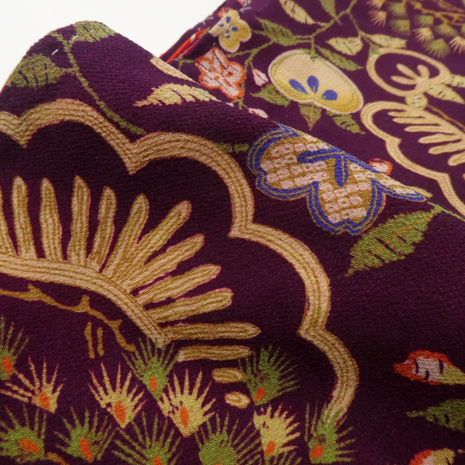 〓雅星〓アンティーク!!紫紺色*四季の花 古典文様♪縮緬 長羽織 正絹 裄61丈93 販売価格 42,800円 (税込) 購入数 \送料無料/ カートに入れる この商品について問い合わせる お気に入り 特定商取引法に基づく表記 商品詳細 状態ランク: ★★★ 凸凹とした、しっかりとしたシボのある上質な縮緬地。 色に深みのある紫紺色ベースに、松や橘・桜など日本古来の優美な柄が描かれています。 1枚羽織るだけでこなれた着こなしに格上げしてくれるアンティークの長羽織です。 この時期ならではの重ね着コーデをお楽しみください♪ 羽裏に薄シミ、右後付近に軽い色褪せが見られますが、あくまで時代なり程度です。 その他着後に酷く目立つダメージはなく、アンティーク品の中では状態の良い綺麗なお品です。 羽織・羽織紐のみの価格で、着物は含まれておりません。 サイズ・素材 裄 61cm 肩身丈 93cm 袖丈 64cm 袖幅 31cm 前幅 -cm 後ろ幅 28.5cm 内揚げ -cm 縫込み(袖側) 1cm 縫込み(肩側) 2cm 素材 正絹 状態ランクについて ★★★★★ 超美品・新品・未使用品です。 ★★★★ 中古品ですがダメージの無いお品です。 ★★★ 薄ジミなどがありますが着用時には目立ちません。 ★★ 工夫次第で十分着用可能なお買い得品です ★ 大きめのシミがありますので、リメイク材料等にどうぞ。 _hao _an