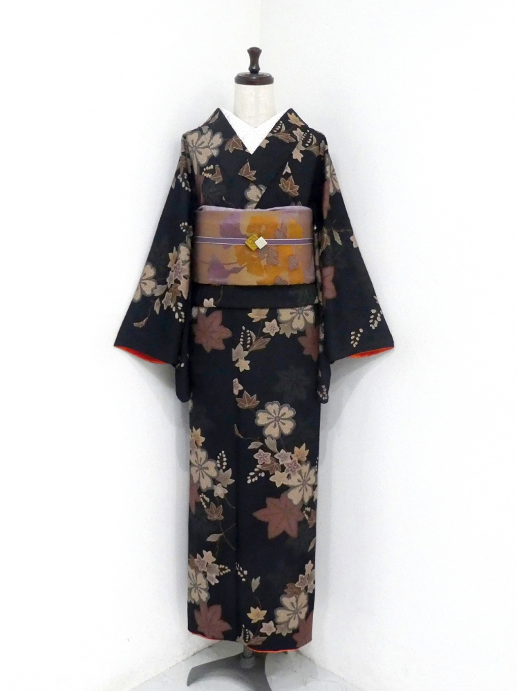 〓雅星〓超美!!ブラック*紅葉 花模様♪洗える小紋 袷 裄66丈166ロング 販売価格 24,800円 (税込) 購入数 \送料無料/ カートに入れる この商品について問い合わせる お気に入り 特定商取引法に基づく表記 コーディネートで使用している商品 〓雅星〓良品!!黄唐茶色*銀杏文♪正絹六通《袋帯》 29,800円(税込) ★雅星本店オリジナル★新品!!アメジスト*シマシマ 銀通し 帯揚げ 正絹 【クリックポスト発送】 15,400円(税込) ★雅星本店オリジナル★新品!!アメジスト*帯締め 房付き四分紐 正絹【クリックポスト発送】 14,800円(税込) 商品詳細 状態ランク: ★★★★ ブラックベースの膨れ織地、シックな色合いでまとめられた紅葉や花模様が控えめな華やかさ。 生地の質感と色柄が相まって、一見絹のお着物のような上質さを感じます。 人と差のつくこなれた着姿が叶う洗える小紋です。 嬉しい洗える素材、お気軽にご自宅でお手入れが出来ます。 《袷・広衿》身長161〜171cm位までの方にオススメです。 目立つシミ・汚れはなく状態の良い綺麗なお品です。 着物のみの価格で、帯・小物は含まれておりません。 サイズ・素材 裄 66cm 肩身丈 166cm 袖丈 50cm 袖幅 32cm 前幅 24.5cm 後ろ幅 31cm 内揚げ 0cm 縫込み(袖側) 4cm 縫込み(肩側) 2.5cm 素材 ポリエステル 状態ランクについて ★★★★★ 超美品・新品・未使用品です。 ★★★★ 中古品ですがダメージの無いお品です。 ★★★ 薄ジミなどがありますが着用時には目立ちません。 ★★ 工夫次第で十分着用可能なお買い得品です ★ 大きめのシミがありますので、リメイク材料等にどうぞ。