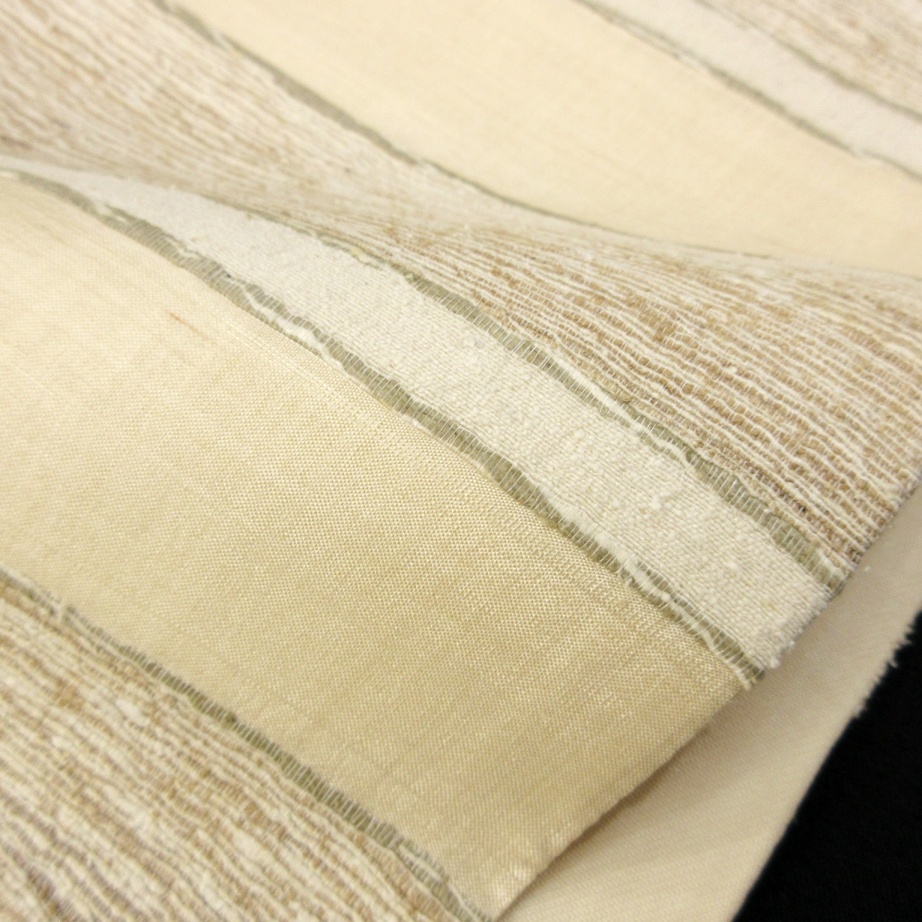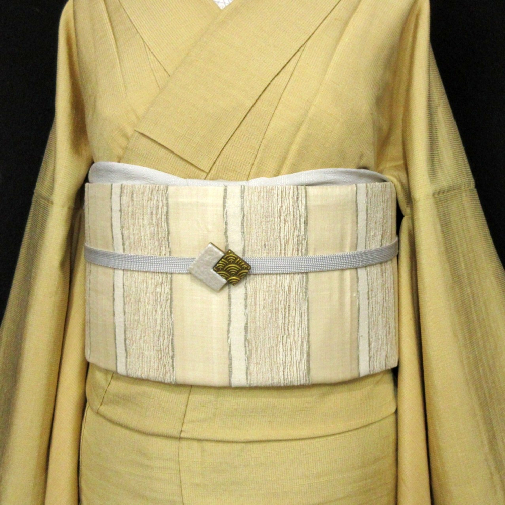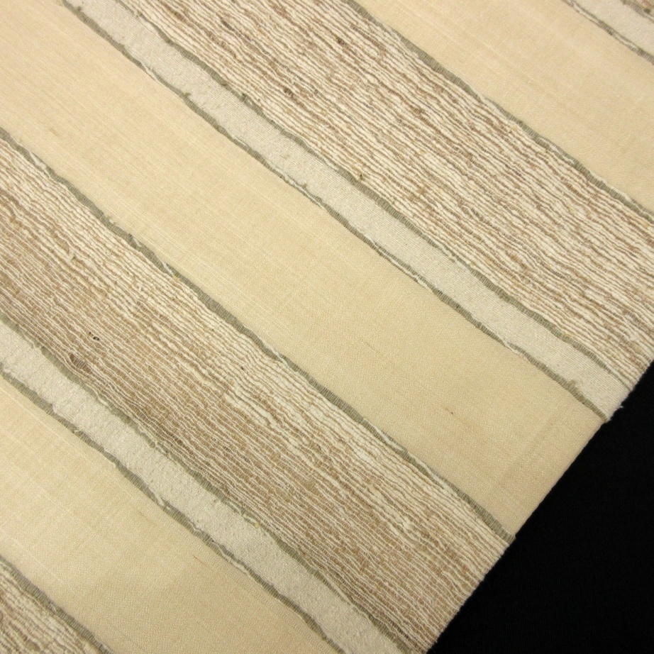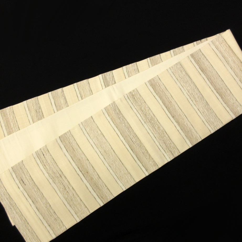 ■雅星■超美!!ベージュ*シマシマ♪正絹全通 《洒落袋帯》 販売価格 36,800円 (税込) 購入数 \送料無料/ カートに入れる この商品について問い合わせる お気に入り 特定商取引法に基づく表記 商品詳細 状態ランク: ★★★★★ 無地部分の生地はオーガンジーの様な透け感のある軽い織地。 ベージュベースにシンプルで素朴な縞々。 それぞれの横段が異素材で、華やかな装いに格上げしてくれます。 全通なので柄出しに困ることなく、角出し結びも簡単に楽しめます♪ 特に春先や秋口のすっきりとした軽快な装いを楽しみたい時にはおすすめな洒落袋帯です! シミ汚れの無い綺麗なお品です! 帯のみの価格で、着物・小物は含まれておりません。 サイズ・素材 長さ 31cm×450cm 素材 正絹 状態ランクについて ★★★★★ 超美品・新品・未使用品です。 ★★★★ 中古品ですがダメージの無いお品です。 ★★★ 薄ジミなどがありますが着用時には目立ちません。 ★★ 工夫次第で十分着用可能なお買い得品です ★ 大きめのシミがありますので、リメイク材料等にどうぞ。
