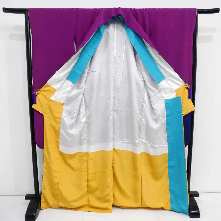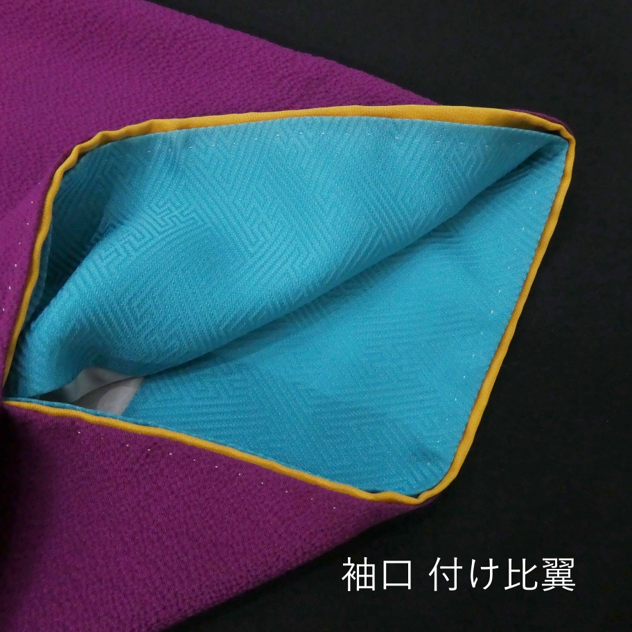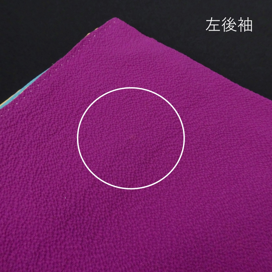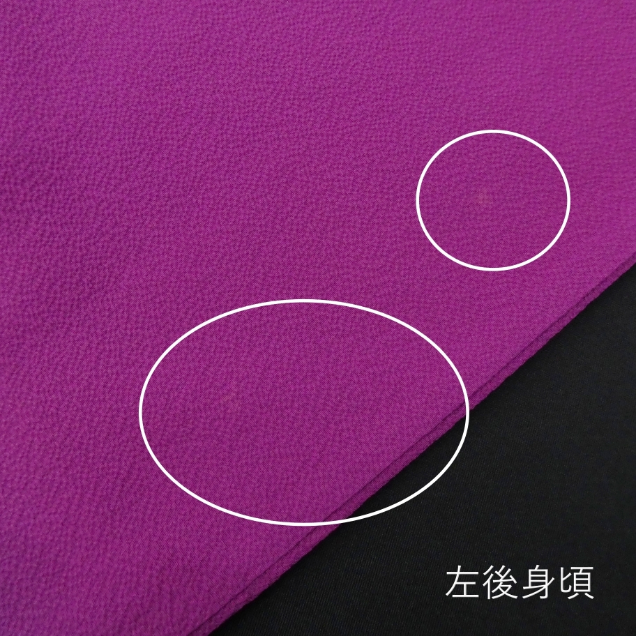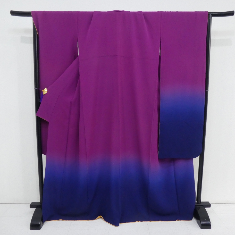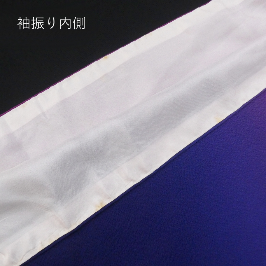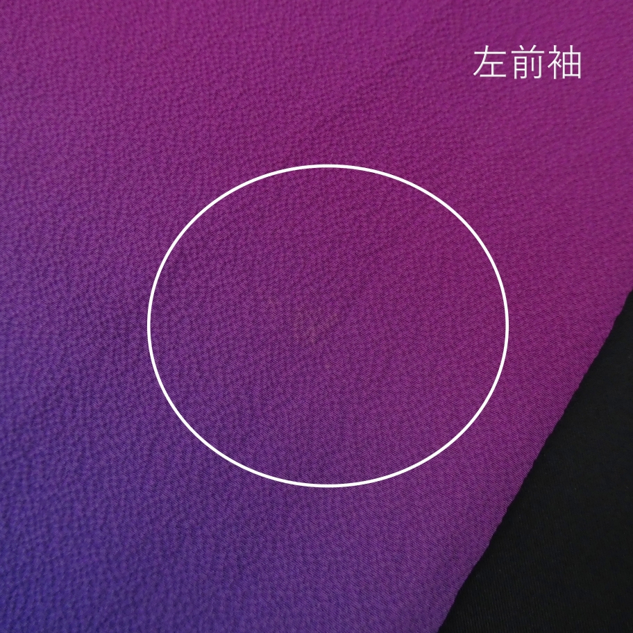 〓雅星〓パープル*グラデーション 比翼仕立て風♪振袖 正絹袷 裄68.5丈168ロング 販売価格 32,800円 (税込) 購入数 \送料無料/ カートに入れる この商品について問い合わせる お気に入り 特定商取引法に基づく表記 コーディネートで使用している商品 〓雅星〓美品!!アイボリー*ジュエル 薔薇♪正絹六通《袋帯》 29,800円(税込) 〓雅星〓未使用超美!!ターコイズ*振袖用 正絹帯締め 玉飾り パール 15,800円(税込) 商品詳細 状態ランク: ★★★ しっかりとりたシボの縮緬、ずっしり上質な正絹地を使用しております。 鮮やかなパープルを基調にブルーへのグラデーションが幻想的で美しい。 比翼風のお仕立てになっているので所作でちらりと覗きアクセントになっています。 帯や小物などのこだわりアイテムも良く映え、人と差のつく着こなしが楽しめる振袖です。 正統派・モードなど、お嬢様に合わせた様々なテイストでお楽しみ下さい♪ 《袷・広衿》身長158〜171m位までの方にオススメです。 袖口内側に薄シミ、表地にも画像のような薄シミが全体的に見られます。 裏地に軽い生地のたるみを感じますが、表地の縮緬がしっかりしているので着付けには全く影響を感じませんでした。 その分ぐっとお値下げしていますので、色柄を気に入ってくださった方・着付け練習などに如何でしょうか。 着物のみの価格で、帯・小物は含まれておりません。 サイズ・素材 裄 68.5cm 肩身丈 168cm 袖丈 113cm 袖幅 35cm 前幅 25.5cm 後ろ幅 32cm 内揚げ 0cm 縫込み(袖側) 2cm 縫込み(肩側) 1cm 素材 正絹 状態ランクについて ★★★★★ 超美品・新品・未使用品です。 ★★★★ 中古品ですがダメージの無いお品です。 ★★★ 薄ジミなどがありますが着用時には目立ちません。 ★★ 工夫次第で十分着用可能なお買い得品です ★ 大きめのシミがありますので、リメイク材料等にどうぞ。 _furi _fo