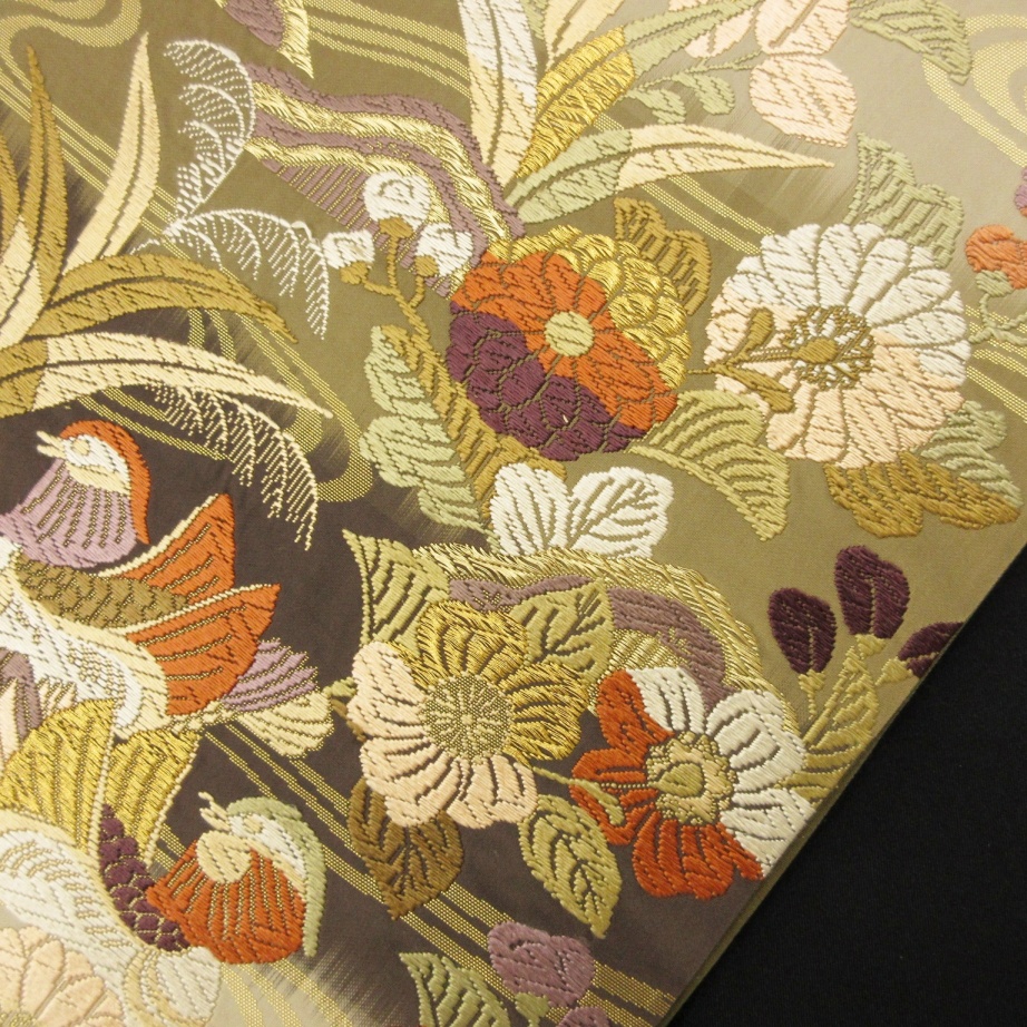 ■雅星■美品!!ブラウン系*唐織 鴛鴦 菊花♪正絹六通《袋帯》 販売価格 36,800円 (税込) 購入数 \送料無料/ カートに入れる この商品について問い合わせる お気に入り 特定商取引法に基づく表記 商品詳細 状態ランク: ★★★★ ブラウン系の横段ベース、ふっくらとした唐織であしらわれた鴛鴦と四季の花がお着物をより華やかな印象にしてくれます。 落ち着いた雰囲気で様々なお着物に合わせやすく万能。 お振袖・フォーマルシーンはもちろん、華やかなパーティなどにもおススメな袋帯です。 シミ・汚れのない綺麗なお品です。 帯のみの価格で、着物・小物は含まれておりません。 サイズ・素材 長さ 31cm×429cm 素材 正絹 状態ランクについて ★★★★★ 超美品・新品・未使用品です。 ★★★★ 中古品ですがダメージの無いお品です。 ★★★ 薄ジミなどがありますが着用時には目立ちません。 ★★ 工夫次第で十分着用可能なお買い得品です ★ 大きめのシミがありますので、リメイク材料等にどうぞ。 _fo