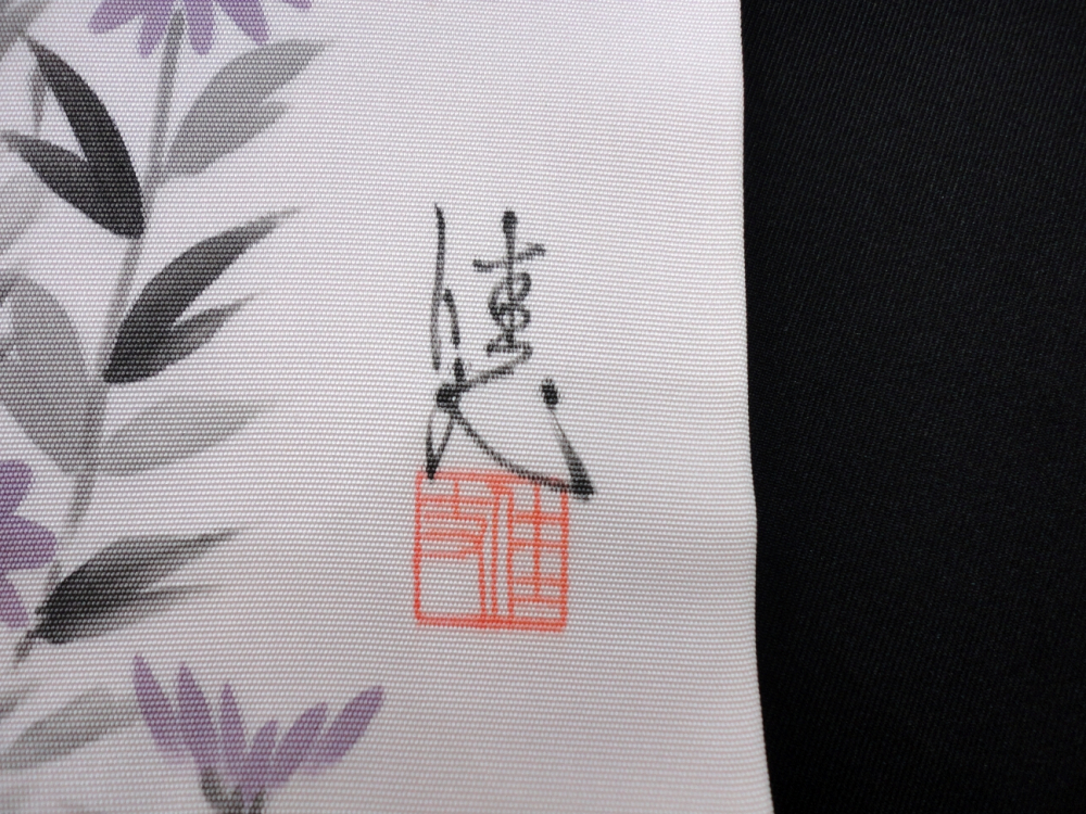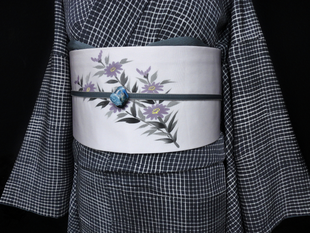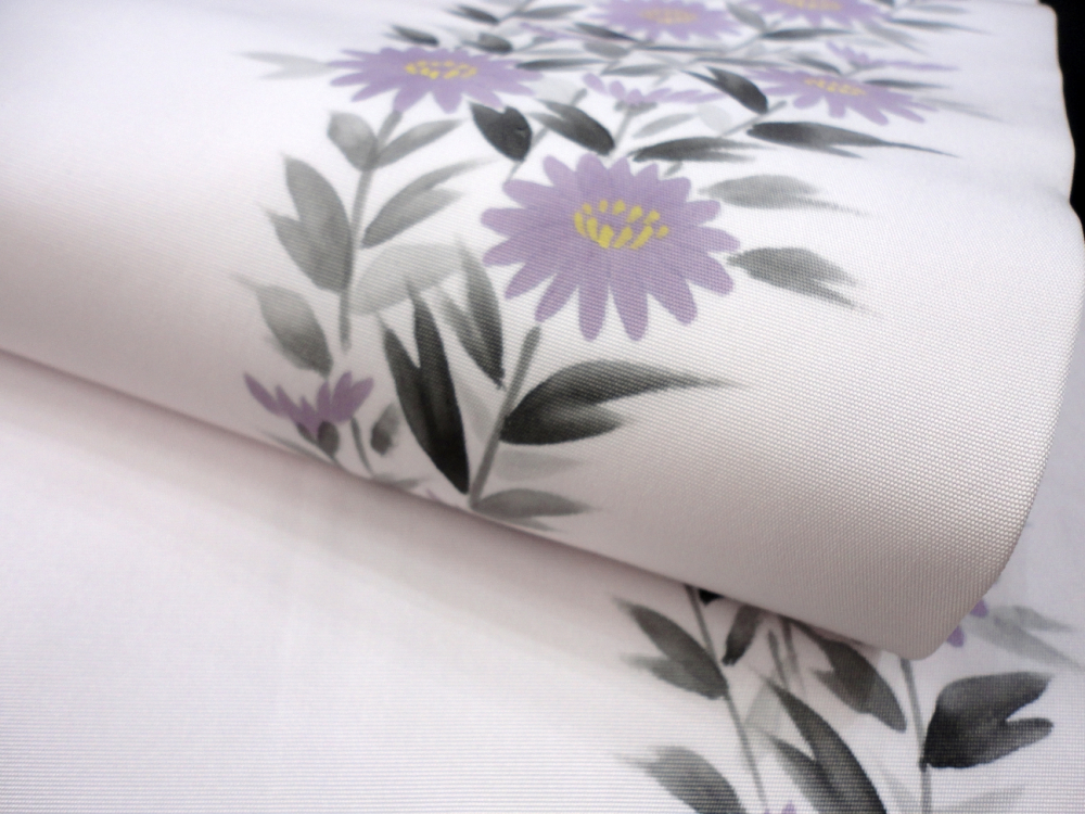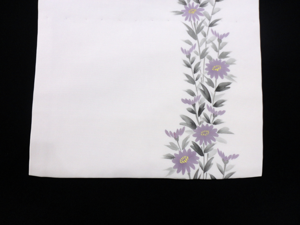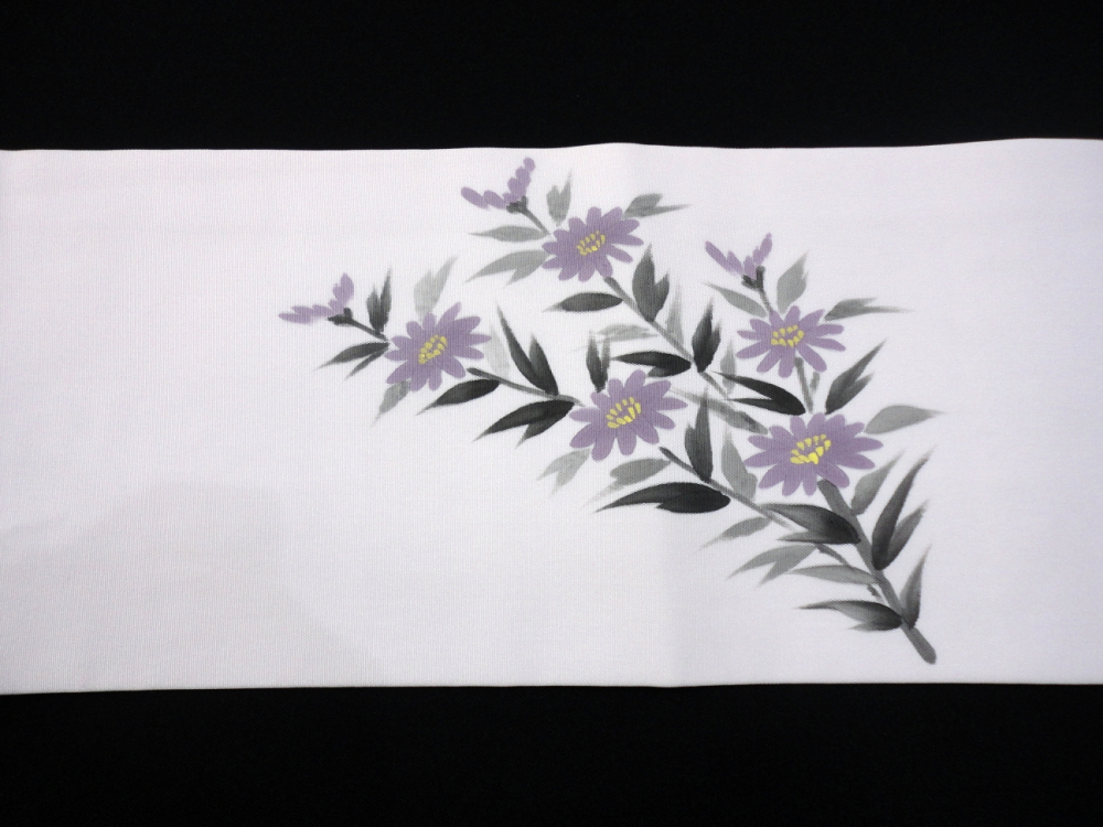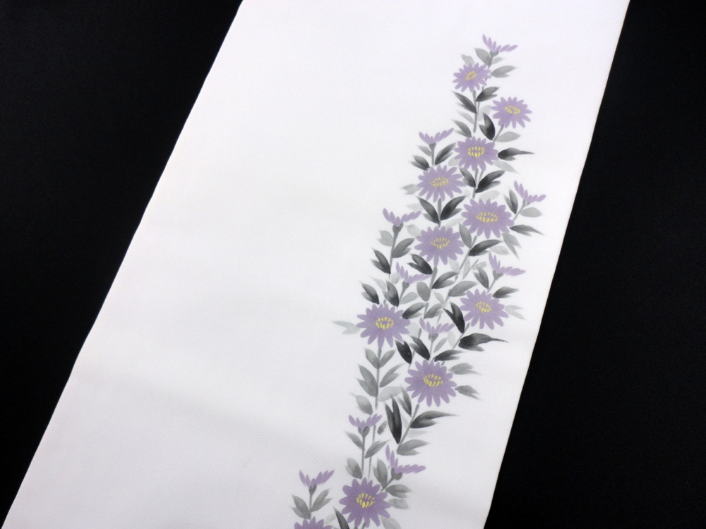 新着商品○雅星○美品!!ラベンダーホワイト*菊♪作家物 塩瀬 正絹九寸《名古屋帯》