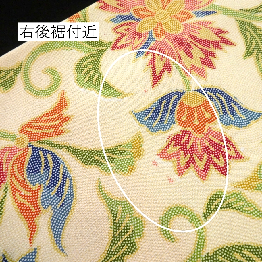 〓雅星〓美品!!クリーム*鮫文様 唐花♪洗える小紋 袷 裄62丈161ロング 販売価格 17,800円 (税込) 購入数 \送料無料/ カートに入れる この商品について問い合わせる お気に入り 特定商取引法に基づく表記 コーディネートで使用している商品 〓雅星〓美品!!クリームベージュ*桜文♪八寸《名古屋帯》 9,800円(税込) ■雅星本店オリジナル■新品!!グリーン&グレー ストーン*友禅帯揚げ 正絹縮緬 【クリックポスト発送】 15,400円(税込) ★雅星本店オリジナル★新品*リバーシブル 縁あり三分紐【クリックポスト発送】 6,600円(税込) 商品詳細 状態ランク: ★★★ 淡いクリームイエロー地に鮫文様、カラフルな色使いの唐花模様が大人可愛い♪ 綺麗目な正統派からカジュアルダウンまで幅広い着こなしが楽しめる洗える小紋です。 天気を気にせずご自宅でお手入れが出来ます! 《袷・広衿》身長156〜166cm位までの方にオススメです。 八掛に点汚れがある程度で、その他目立つダメージのない綺麗なお品です。 着物のみの価格で、帯・小物は含まれておりません。 サイズ・素材 裄 62cm 肩身丈 161cm 袖丈 49cm 袖幅 31.5cm 前幅 24.5cm 後ろ幅 29.5cm 内揚げ 0cm 縫込み(袖側) 0.5cm 縫込み(肩側) 0.5cm 素材 ポリエステル 状態ランクについて ★★★★★ 超美品・新品・未使用品です。 ★★★★ 中古品ですがダメージの無いお品です。 ★★★ 薄ジミなどがありますが着用時には目立ちません。 ★★ 工夫次第で十分着用可能なお買い得品です ★ 大きめのシミがありますので、リメイク材料等にどうぞ。