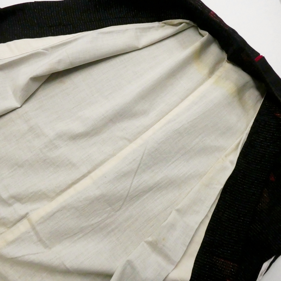 〓雅星〓レトロ!!ブラック*アーティ ライン模様♪小紋 正絹袷 裄60丈151 販売価格 9,800円 (税込) 購入数 \送料無料/ カートに入れる この商品について問い合わせる お気に入り 特定商取引法に基づく表記 コーディネートで使用している商品 〓雅星〓超美!!ブラック*動物 オリエンタル♪正絹八寸《名古屋帯》 27,800円(税込) 〓雅星本店オリジナル〓新品!!ブラック&グレー ストーン*友禅帯揚げ 正絹縮緬 【クリックポスト発送】 15,400円(税込) ★雅星本店オリジナル★新品*リバーシブル 縁あり三分紐【クリックポスト発送】 6,600円(税込) 商品詳細 状態ランク: ★★★ ブラックベースに控えめに煌めくシルバーの横段模様。 放射状にデザインされたレッドのライン模様がクールな印象です。 ポップな色柄が苦手な大人の女性にもおススメしたいレトロ小紋です。 《袷・バチ衿》身長〜156cm位までの方にオススメです。 それ以上の方は対丈や洋服ミックス、ミセル裾除けホムシュヘムなどと合わせても♪ 胴裏・八掛に変色や薄シミが見られます。 表地にも画像のような薄汚れがありますが、いずれも濃い地色に紛れて目立ちにくく感じました。 右袖内側にシミがありますが、長襦袢をお召しでしたら隠れるので気になりにくいかと思います。 生地にかぶり(たるみ)も感じる為ぐっとお値下げをしております。 時代物に慣れた方・色柄を気に入ってくださった方にお安く如何でしょうか。 着物のみの価格で、帯・小物は含まれておりません。 サイズ・素材 裄 60cm 肩身丈 151cm 袖丈 48.5cm 袖幅 30cm 前幅 22.5cm 後ろ幅 27cm 内揚げ 0cm 縫込み(袖側) 0.5cm 縫込み(肩側) 0.5cm 素材 正絹 状態ランクについて ★★★★★ 超美品・新品・未使用品です。 ★★★★ 中古品ですがダメージの無いお品です。 ★★★ 薄ジミなどがありますが着用時には目立ちません。 ★★ 工夫次第で十分着用可能なお買い得品です ★ 大きめのシミがありますので、リメイク材料等にどうぞ。 _an