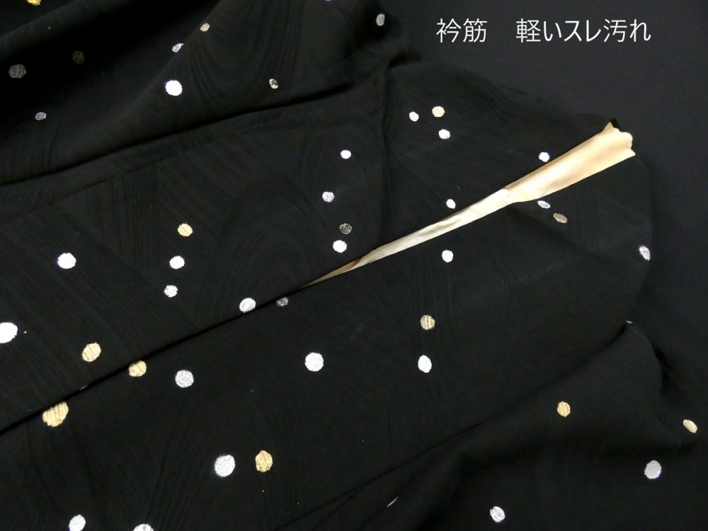 ◆雅星◆レトロ!!ブラック*ドット 付下げ小紋 正絹袷 裄66.5丈153 販売価格 26,800円 (税込) 購入数 \送料無料/ カートに入れる この商品について問い合わせる お気に入り 特定商取引法に基づく表記 コーディネートで使用している商品 ◆雅星◆美品!!ブラック*駒刺繍 金銀の獅子 正絹八寸《名古屋帯》 27,800円(税込) 商品詳細 状態ランク: ★★★ 流水の地紋、するりとしなやかな手触りで落ち感も綺麗な正絹地です。 黒地に金銀箔のドット模様が付下げ柄であしらわれた通好みの逸品。 お着物の格は小紋と同じなので、上級者のお洒落着としてお気軽に是非! 人と差のつく、ワンランク上の着こなしが楽しめる上質なレトロ小紋です。 《袷・広衿》身長148〜158cm位までの方にオススメです。 それ以上の方はミセル裾除けホムシュヘムなどと合わせても♪ 裏地の変色や箔のスレ・色移りが見られますが、 着用時にひどく目立つシミ汚れは見られません。 ダメージの分お安くなっていますので、気にせずご着用いただける方、お買い得です♪ 着物のみの価格で、帯・小物は含まれておりません。 サイズ・素材 裄 66.5cm 肩身丈 153cm 袖丈 49cm 袖幅 32cm 前幅 26cm 後ろ幅 30cm 内揚げ 0cm 縫込み(袖側) 1cm 縫込み(肩側) 0.5cm 素材 正絹 状態ランクについて ★★★★★ 超美品・新品・未使用品です。 ★★★★ 中古品ですがダメージの無いお品です。 ★★★ 薄ジミなどがありますが着用時には目立ちません。 ★★ 工夫次第で十分着用可能なお買い得品です ★ 大きめのシミがありますので、リメイク材料等にどうぞ。 _hito