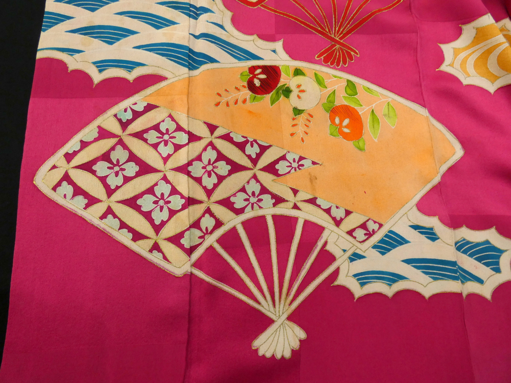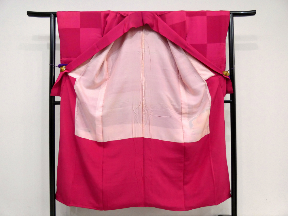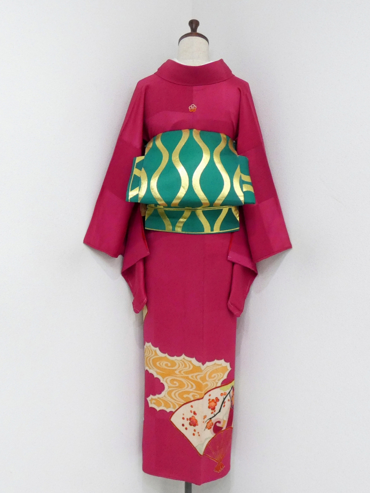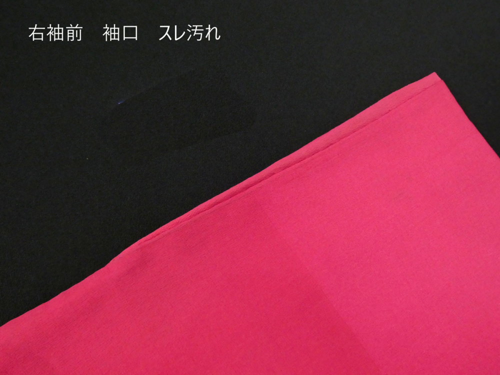 ◆雅星◆アンティーク!!マゼンタ*花扇子文 一つ紋色留袖 正絹袷 裄63.5丈149 販売価格 24,800円 (税込) 購入数 \送料無料/ カートに入れる この商品について問い合わせる お気に入り 特定商取引法に基づく表記 コーディネートで使用している商品 ◆雅星◆アンティーク!!緑×金*立涌文 正絹《京袋帯》 16,800円(税込) 商品詳細 状態ランク: ★★★ しなやかな手触りでとろんと落ち感があります。 マゼンタベースに艶やかな市松の地紋が光の加減で浮かびます。 草花に割付文が描かれ、日本古来の趣と控えめな華やかさが目を惹きます。 縫いの一つ紋入りの色留袖ですが、アンティークのお品ですし女子会やカジュアルパーティなどでお気軽にお楽しみください♪ 《袷・広衿》身長〜149cm位までの方にオススメです。 それ以上の方は対丈や洋服ミックス、ミセル裾除けホムシュヘムなどと合わせても♪ 画像のような薄シミ・薄汚れはありますが、いずれも濃さは軽度なので撮影時は気になりませんでした。 ぐっとお値下げしていますので、時代物に慣れた方・色柄を気に入って下さった方に是非! 着物のみの価格で、帯・小物は含まれておりません。 サイズ・素材 裄 63.5cm 肩身丈 149cm 袖丈 49.5cm 袖幅 31cm 前幅 23.5cm 後ろ幅 30cm 内揚げ 0cm 縫込み(袖側) 1cm 縫込み(肩側) 1cm 素材 正絹 状態ランクについて ★★★★★ 超美品・新品・未使用品です。 ★★★★ 中古品ですがダメージの無いお品です。 ★★★ 薄ジミなどがありますが着用時には目立ちません。 ★★ 工夫次第で十分着用可能なお買い得品です ★ 大きめのシミがありますので、リメイク材料等にどうぞ。 _an _fo