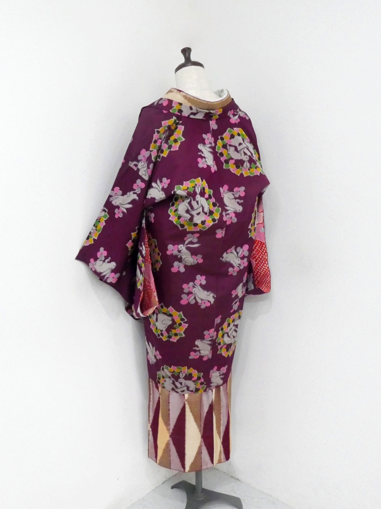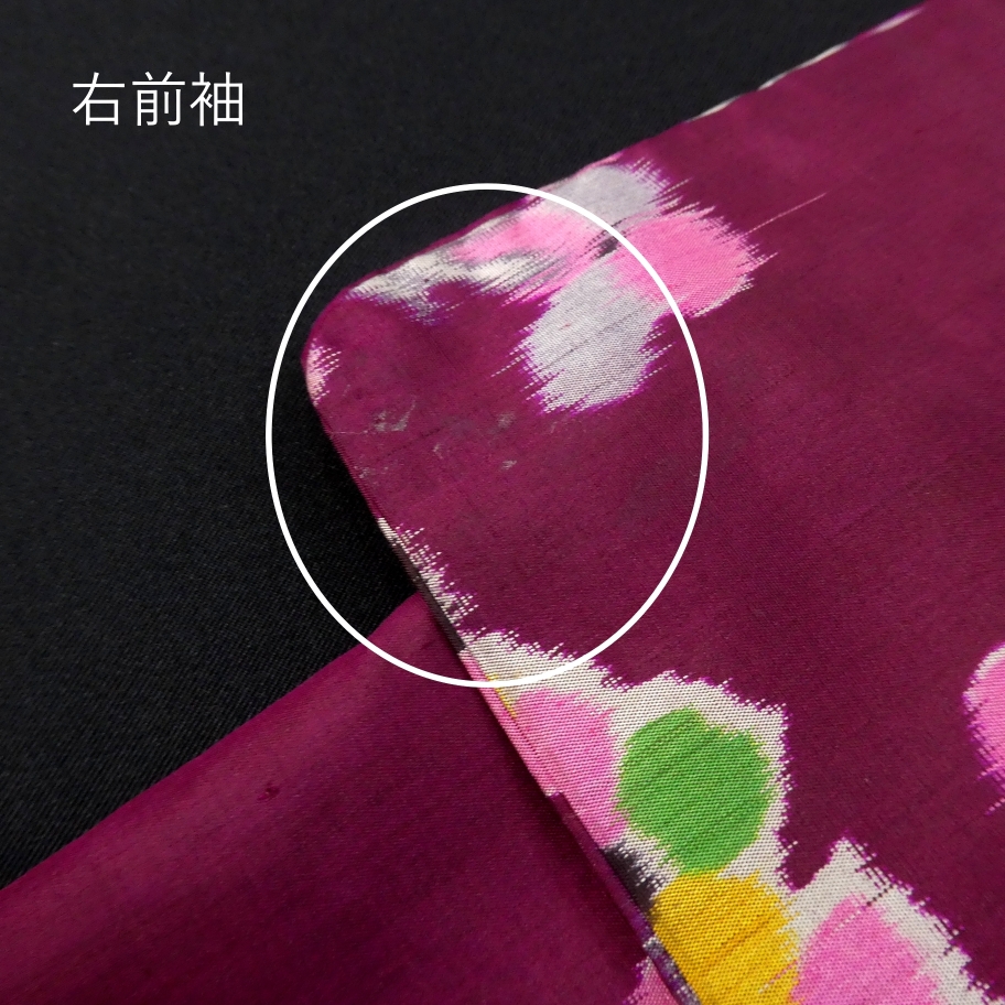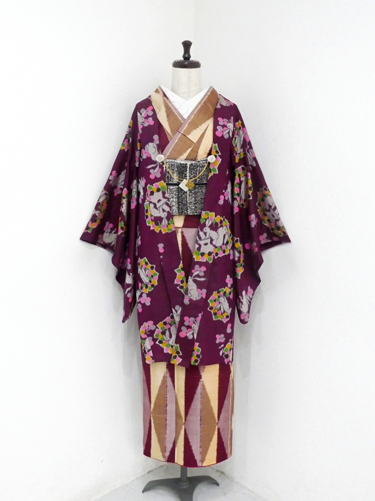 〓雅星〓レトロ!!クラレット*お餅つき 跳ねうさぎ♪銘仙 長羽織 正絹 裄62丈98 販売価格 29,800円 (税込) sold out この商品について問い合わせる お気に入り 特定商取引法に基づく表記 商品詳細 状態ランク: ★★★ 深い赤紫ベースにあられのようなカラフルなドットと小さな小花。 お餅つきや跳ね回るウサギが愛らしい遊び心あふれるデザインです。 1枚羽織るだけでこなれた着こなしに格上げしてくれるセミアンティークの長羽織です。 この時期ならではの重ね着コーデをお楽しみください♪ 羽織紐は付属していません。 画像のような染料ムラや点汚れが数か所ありますが、あくまで時代なり程度です◎ 着後に目立つダメージはなく、時代物の中ではかなり状態の良い綺麗なお品です。 羽織のみの価格で、着物は含まれておりません。 サイズ・素材 裄 62cm 肩身丈 98cm 袖丈 60.5cm 袖幅 32cm 前幅 -cm 後ろ幅 29cm 内揚げ -cm 縫込み(袖側) 0.5cm 縫込み(肩側) 1cm 素材 正絹 状態ランクについて ★★★★★ 超美品・新品・未使用品です。 ★★★★ 中古品ですがダメージの無いお品です。 ★★★ 薄ジミなどがありますが着用時には目立ちません。 ★★ 工夫次第で十分着用可能なお買い得品です ★ 大きめのシミがありますので、リメイク材料等にどうぞ。 _hao _an