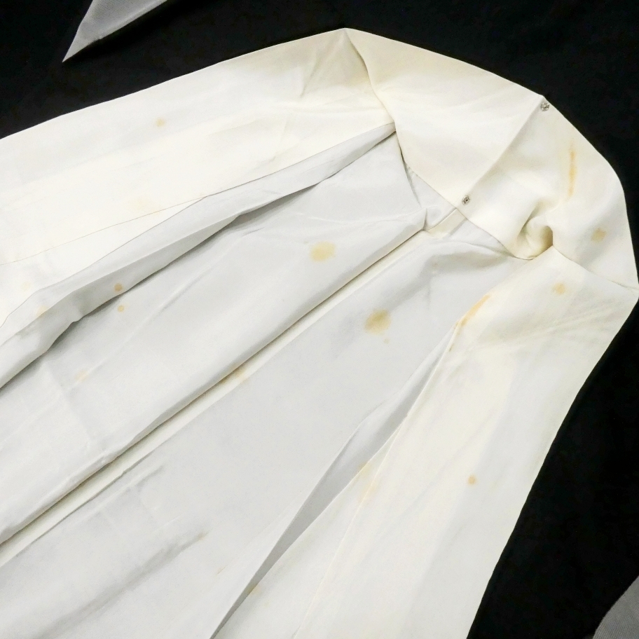 〓雅星〓良品!!ブラック×グレーー*本場縞大島紬 縦ライン 正絹袷 裄67.5丈164ロング 販売価格 36,800円 (税込) 購入数 \送料無料/ カートに入れる この商品について問い合わせる お気に入り 特定商取引法に基づく表記 コーディネートで使用している商品 ★雅星本店オリジナル★新品【帆船】ブラック*リバーシブル《半幅帯》 16,800円(税込) ★雅星本店オリジナル★新品*リバーシブル 縁あり三分紐【クリックポスト発送】 6,600円(税込) 商品詳細 状態ランク: ★★★ ブラック×グレーの大胆な縦ラインがスタイリッシュなデザイン。 スタイリング次第で正統派orメンズライクにも振り幅広めに楽しめます♪ しゅるりとした手触りが気持ちの良い大変上質な本場縞大島紬です。 凛とした着姿の叶う、ワンランク上の大人の普段着としてぜひ! 《袷・広衿》身長159〜169cm位までの方にオススメです。 胴裏にシミが見られます。 背中付近に若干のくすみを感じますが注意深く見なければ気づかない程度です◎ 横線状のダメージ画像は恐らく織りによるものだと思います。 着後に酷く目立つシミのようなダメージはありませんので、色柄を気に入ってくださった方に是非! 着物のみの価格で、帯・小物は含まれておりません。 サイズ・素材 裄 67.5cm 肩身丈 164cm 袖丈 48cm 袖幅 34cm 前幅 26cm 後ろ幅 30.5cm 内揚げ 0cm 縫込み(袖側) 1.5cm 縫込み(肩側) 2.5cm 素材 正絹 状態ランクについて ★★★★★ 超美品・新品・未使用品です。 ★★★★ 中古品ですがダメージの無いお品です。 ★★★ 薄ジミなどがありますが着用時には目立ちません。 ★★ 工夫次第で十分着用可能なお買い得品です ★ 大きめのシミがありますので、リメイク材料等にどうぞ。 _mono
