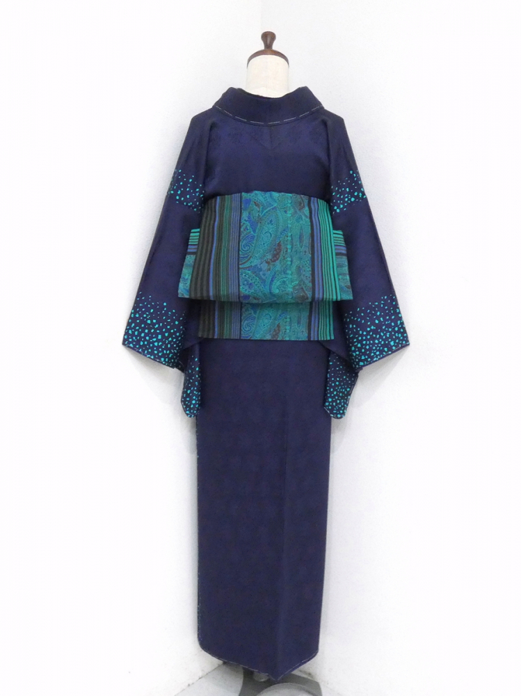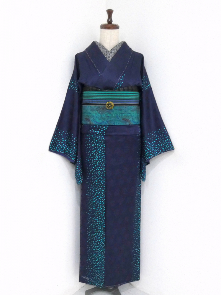 ◆雅星◆未使用超美!!ネイビー【MIROKU】散らし模様 小紋 正絹袷 裄64丈160ロング 販売価格 52,800円 (税込) 購入数 \送料無料/ カートに入れる この商品について問い合わせる お気に入り 特定商取引法に基づく表記 コーディネートで使用している商品 ◆雅星◆超美!!ピーコックグリーン*シマシマ ペイズリー 正絹 織りと染め《洒落袋帯》 39,800円(税込) ★雅星本店オリジナル★新品!!ブラック*シマシマ 銀通し 帯揚げ 正絹 【クリックポスト発送】 15,400円(税込) ★雅星本店オリジナル★新品!!ブラック*帯締め 房付き四分紐 正絹【クリックポスト発送】 14,800円(税込) 商品詳細 状態ランク: ★★★★★ 佐沼屋呉服店のブランドMIROKUの品です。 落ち感の綺麗なずっしり上質な正絹地を使用しております。 ネイビーベースに青緑の散らし模様が染められたモダンなデザインです。 人と差のつくワンランク上の着こなしが楽しめる上質小紋です。 《袷・広衿》身長155〜165cmくらいまでのサイズの方にオススメです。 しつけ付き! シミ・汚れのない大変綺麗な未使用超美のお品です! 着物のみの価格で、帯・小物は含まれておりません。 サイズ・素材 裄 64cm 肩身丈 160cm 袖丈 46cm 袖幅 32.5cm 前幅 24.5cm 後ろ幅 29cm 内揚げ 18cm 縫込み(袖側) 2.5cm 縫込み(肩側) 5.5cm 素材 正絹 状態ランクについて ★★★★★ 超美品・新品・未使用品です。 ★★★★ 中古品ですがダメージの無いお品です。 ★★★ 薄ジミなどがありますが着用時には目立ちません。 ★★ 工夫次第で十分着用可能なお買い得品です ★ 大きめのシミがありますので、リメイク材料等にどうぞ。
