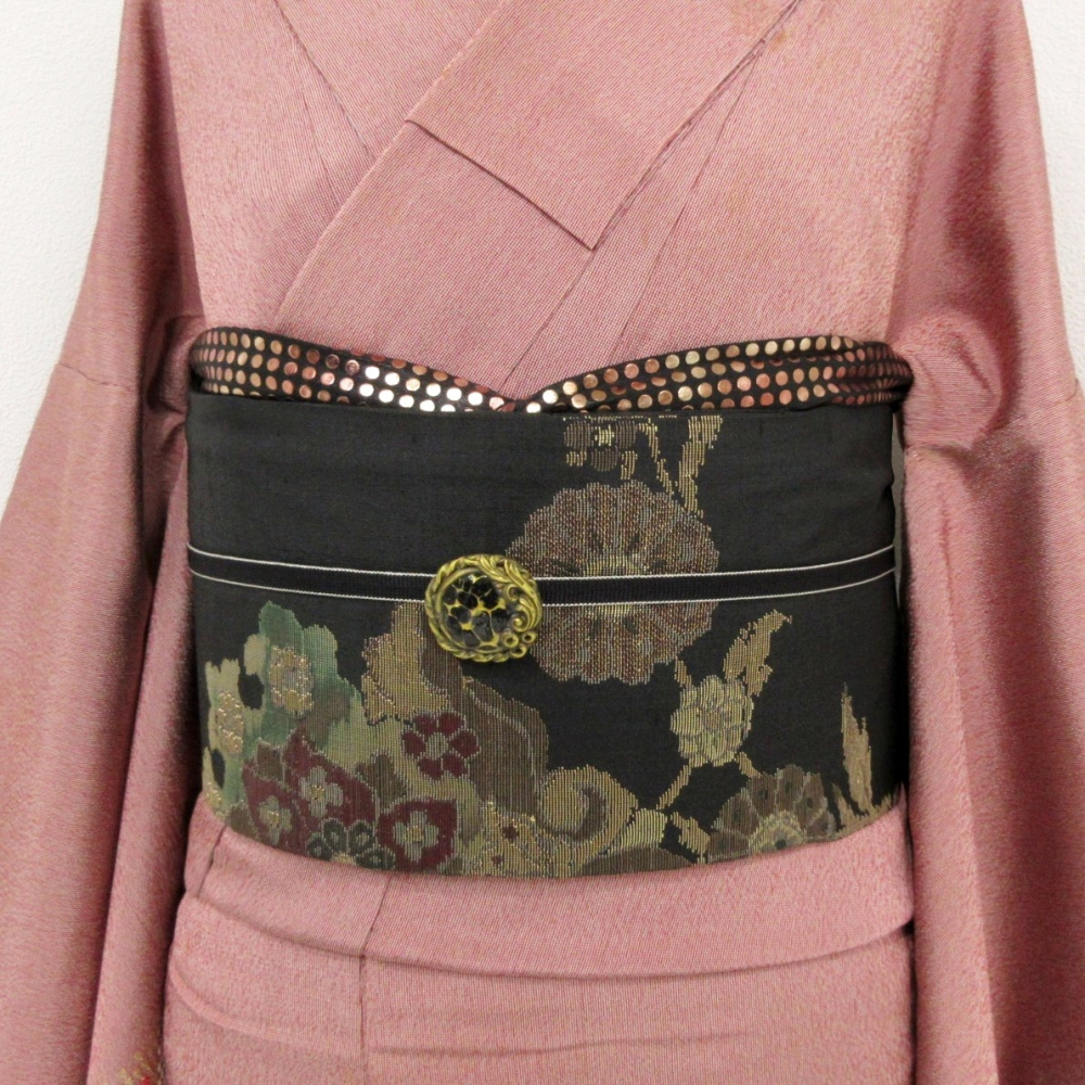 ■雅星■レトロ!!ブラック*漆箔 唐花♪正絹九寸《名古屋帯》 販売価格 19,800円 (税込) 購入数 \送料無料/ カートに入れる この商品について問い合わせる お気に入り 特定商取引法に基づく表記 商品詳細 状態ランク: ★★★★ ブラックベースに漆箔が鈍く艶めき重厚感があります。 人気モチーフの唐花模様もエレガントな印象♪ 現代からレトロコーデまで幅広いスタイリングで楽しめる九寸名古屋帯です。 その他時代なりの締め跡程度で、着後に酷く目立つシミなどのダメージはありません。 帯のみの価格で、着物・小物は含まれておりません。 サイズ・素材 長さ 29cm×350cm 素材 正絹 状態ランクについて ★★★★★ 超美品・新品・未使用品です。 ★★★★ 中古品ですがダメージの無いお品です。 ★★★ 薄ジミなどがありますが着用時には目立ちません。 ★★ 工夫次第で十分着用可能なお買い得品です ★ 大きめのシミがありますので、リメイク材料等にどうぞ。 _an
