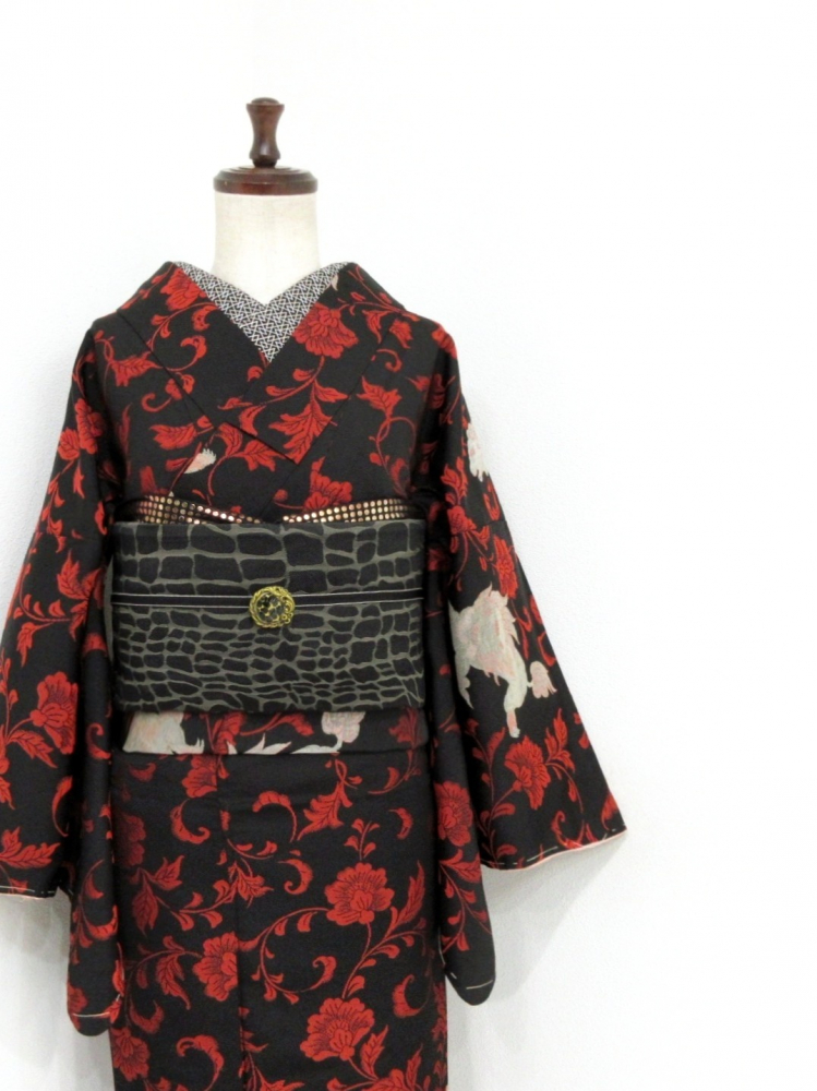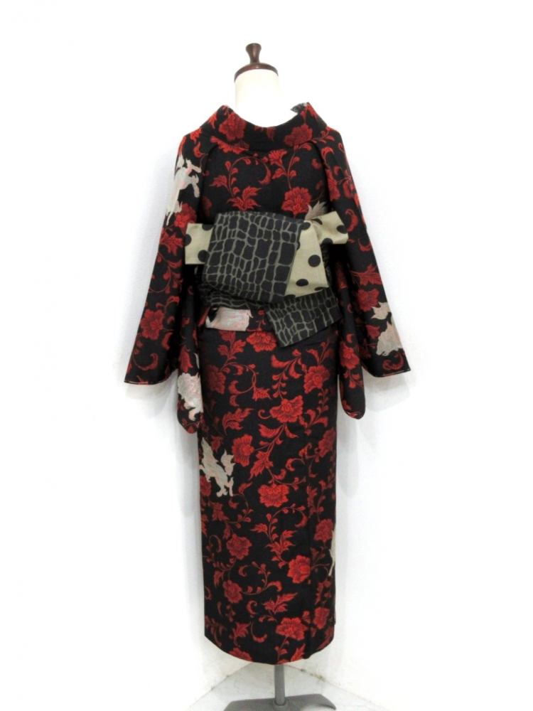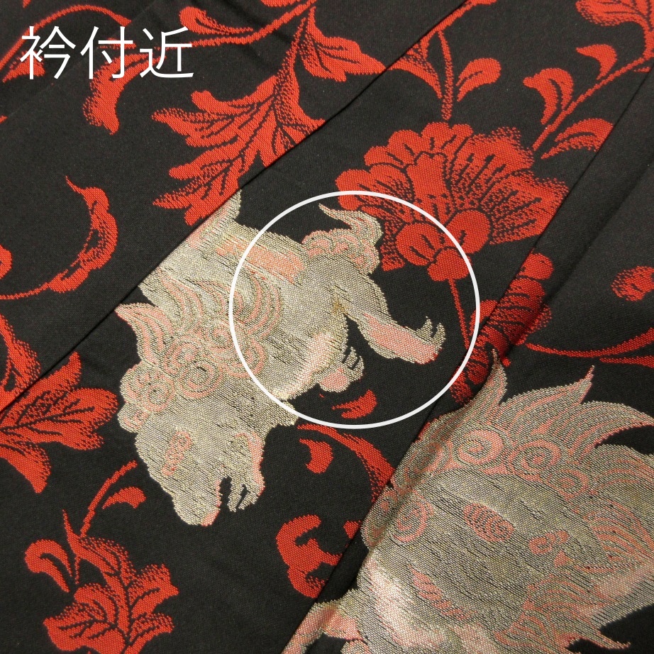 ■雅星■レトロ!!ブラック*唐獅子牡丹♪お召し 正絹袷 裄63.5丈152 販売価格 36,800円 (税込) 購入数 \送料無料/ カートに入れる この商品について問い合わせる お気に入り 特定商取引法に基づく表記 商品詳細 状態ランク: ★★★ ブラックベースに唐獅子牡丹がシックな印象。 大人の色香漂う着こなしが楽しめるお召しキモノです。 スタイリング次第でドレスアップorカジュアルダウン、どちらも楽しめる素敵な1枚です。 《袷・バチ衿》身長〜157cm位までの方にオススメです。 しつけ付き! 1か所点シミはありますが、全く目立ちません。 目立つシミ汚れの無い大変グッドコンディションなお品です。 着物のみの価格で、帯・小物は含まれておりません。 サイズ・素材 裄 63.5cm 肩身丈 152cm 袖丈 49cm 袖幅 31.5cm 前幅 23cm 後ろ幅 30cm 内揚げ 0cm 縫込み(袖側) 2cm 縫込み(肩側) 0cm 素材 正絹 状態ランクについて ★★★★★ 超美品・新品・未使用品です。 ★★★★ 中古品ですがダメージの無いお品です。 ★★★ 薄ジミなどがありますが着用時には目立ちません。 ★★ 工夫次第で十分着用可能なお買い得品です ★ 大きめのシミがありますので、リメイク材料等にどうぞ。 _an