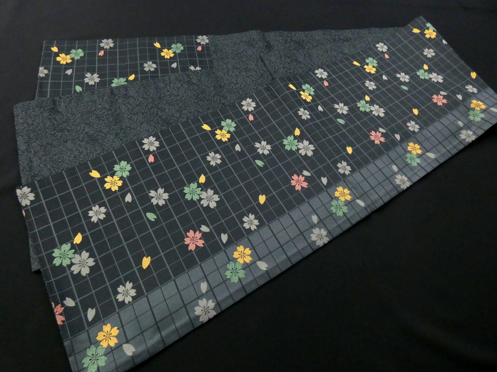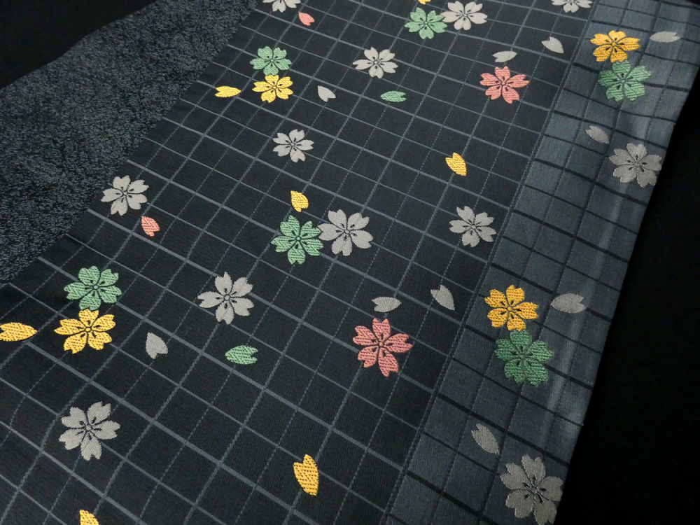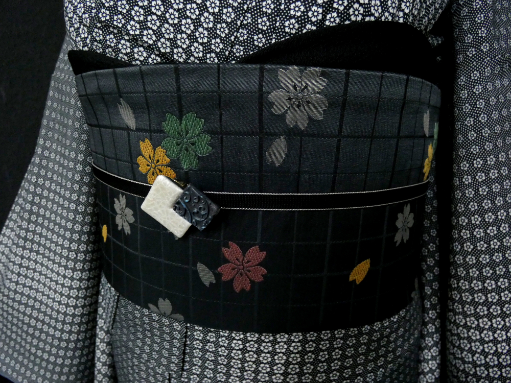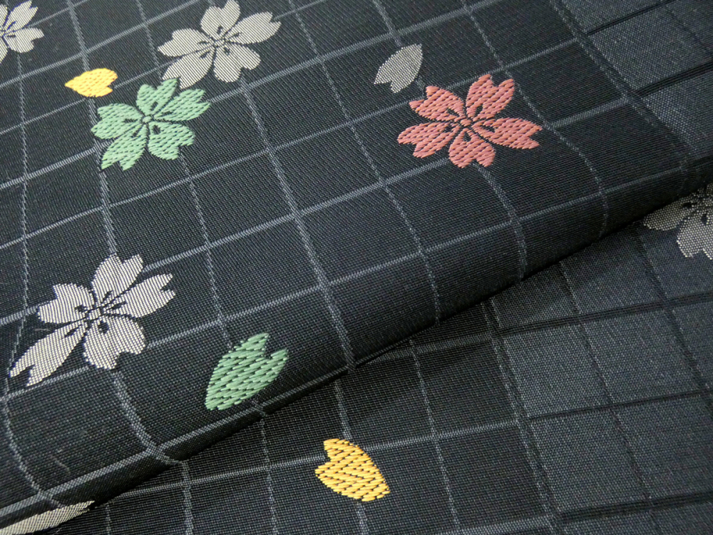 新着商品◆雅星◆超美!!ダークグレー*格子に桜 洗える《京袋帯》