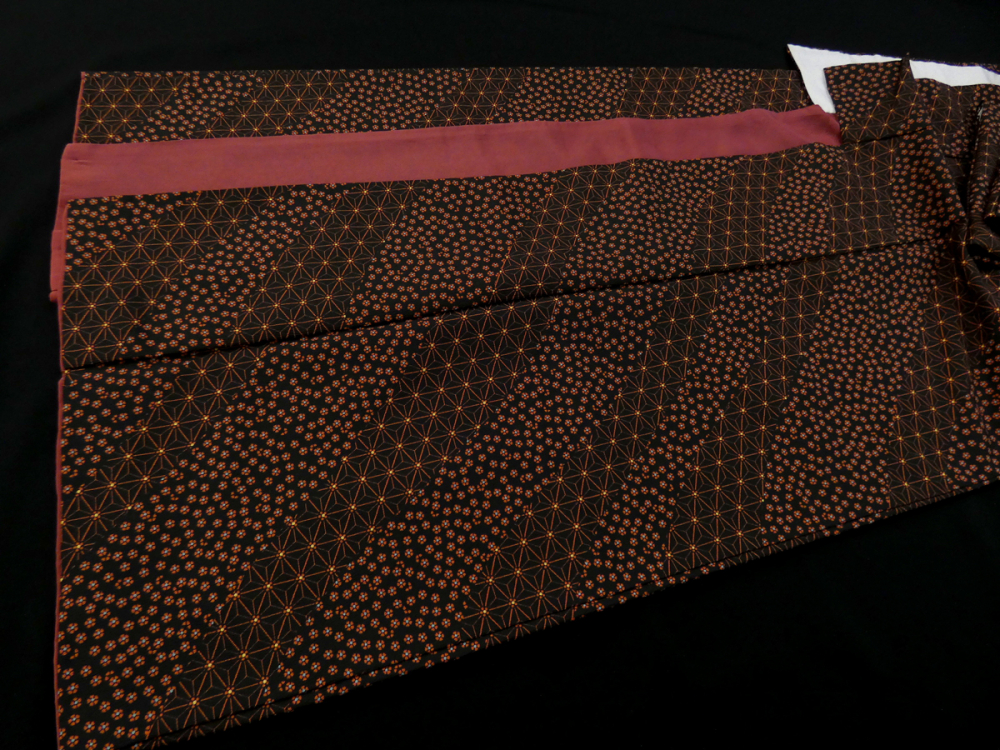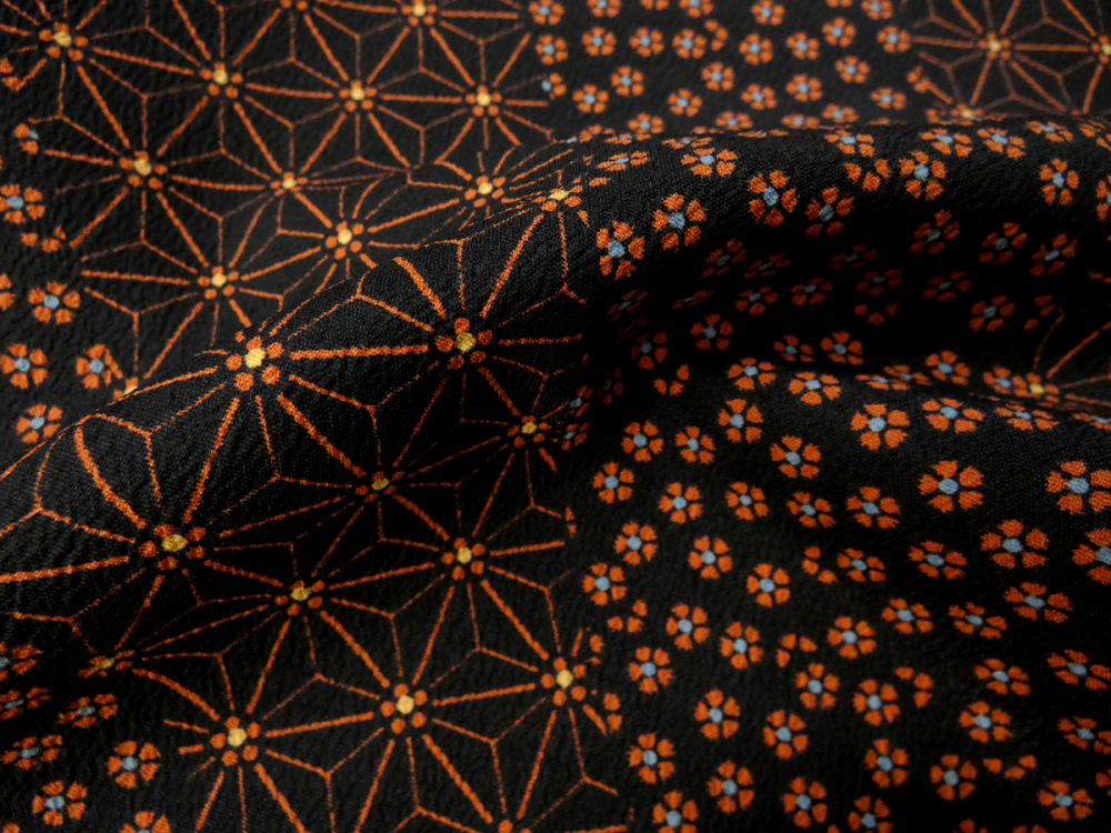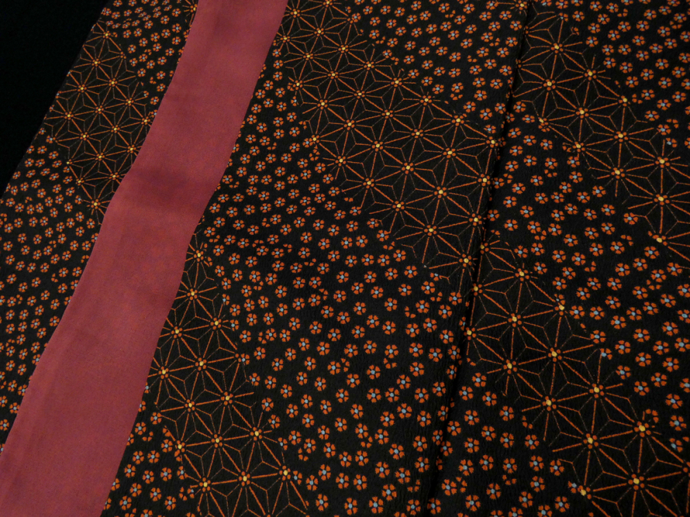 黒地に小花と麻の葉が道長取りの中にあしらわれています。