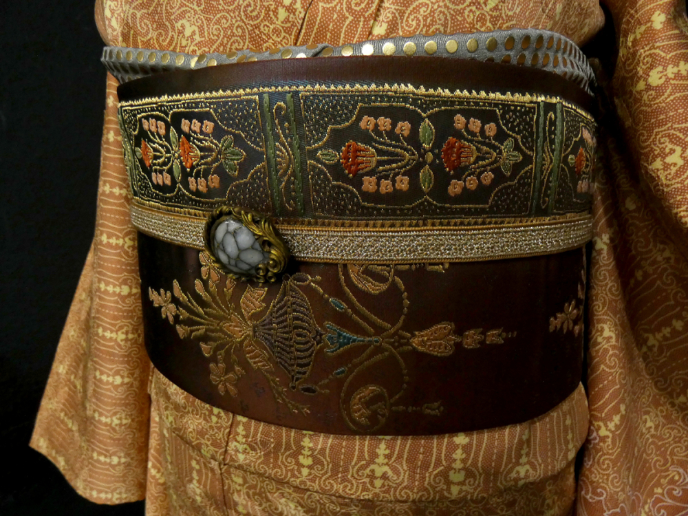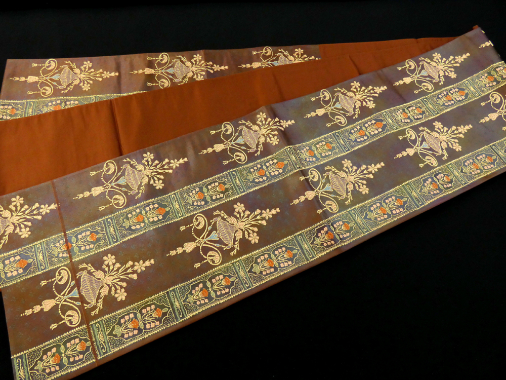 ◆雅星◆超美!!ブラウン*オリエンタル 花瓶 正絹六通《袋帯》 販売価格 39,800円 (税込) 購入数 \送料無料/ カートに入れる この商品について問い合わせる お気に入り 特定商取引法に基づく表記 商品詳細 状態ランク: ★★★★ ブラウンに緑のフィルターがかかったような箔織地、 太縞に花瓶模様が織り出され、輝きの強い金糸が キラキラと華やかな雰囲気です。 フォーマルシーンはもちろん、ちょっとしたパーティまで華やかな着こなしに最適な袋帯です。 軽い使用感を感じますが、シミ汚れのない超美品です。 帯のみの価格で、着物・小物は含まれておりません。 サイズ・素材 長さ 31cm×431cm 素材 正絹 状態ランクについて ★★★★★ 超美品・新品・未使用品です。 ★★★★ 中古品ですがダメージの無いお品です。 ★★★ 薄ジミなどがありますが着用時には目立ちません。 ★★ 工夫次第で十分着用可能なお買い得品です ★ 大きめのシミがありますので、リメイク材料等にどうぞ。 _fo