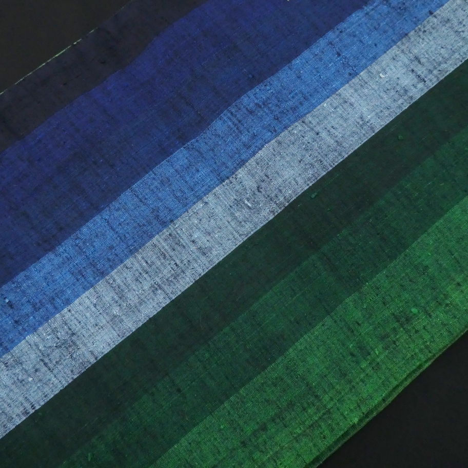 〓雅星〓美品!!マルチカラー*シマシマ♪正絹 紬地《京袋帯》 販売価格 19,800円 (税込) 購入数 \送料無料/ カートに入れる この商品について問い合わせる お気に入り 特定商取引法に基づく表記 商品詳細 状態ランク: ★★★ 京袋帯は、普通の袋帯に比べ短く、名古屋帯と同じように結ぶ帯です。 小紋、紬、ウールなどの普段着に合わせて頂けます。 ブルー・グリーンのグラデーションベース、シンプルな縞模様なので飽きが来ず普段着使いに万能! 紬地ですが薄手でしなやかなので軽い締め心地です◎ 綺麗目な正統派からカジュアルコーデまで幅広く楽しんで頂けます。 手先裏にシール跡がありますが、その他軽い締め跡程度で目立つダメージのない綺麗なお品です。 帯のみの価格で、着物・小物は含まれておりません。 サイズ・素材 長さ 30.5cm×366cm 素材 正絹 状態ランクについて ★★★★★ 超美品・新品・未使用品です。 ★★★★ 中古品ですがダメージの無いお品です。 ★★★ 薄ジミなどがありますが着用時には目立ちません。 ★★ 工夫次第で十分着用可能なお買い得品です ★ 大きめのシミがありますので、リメイク材料等にどうぞ。