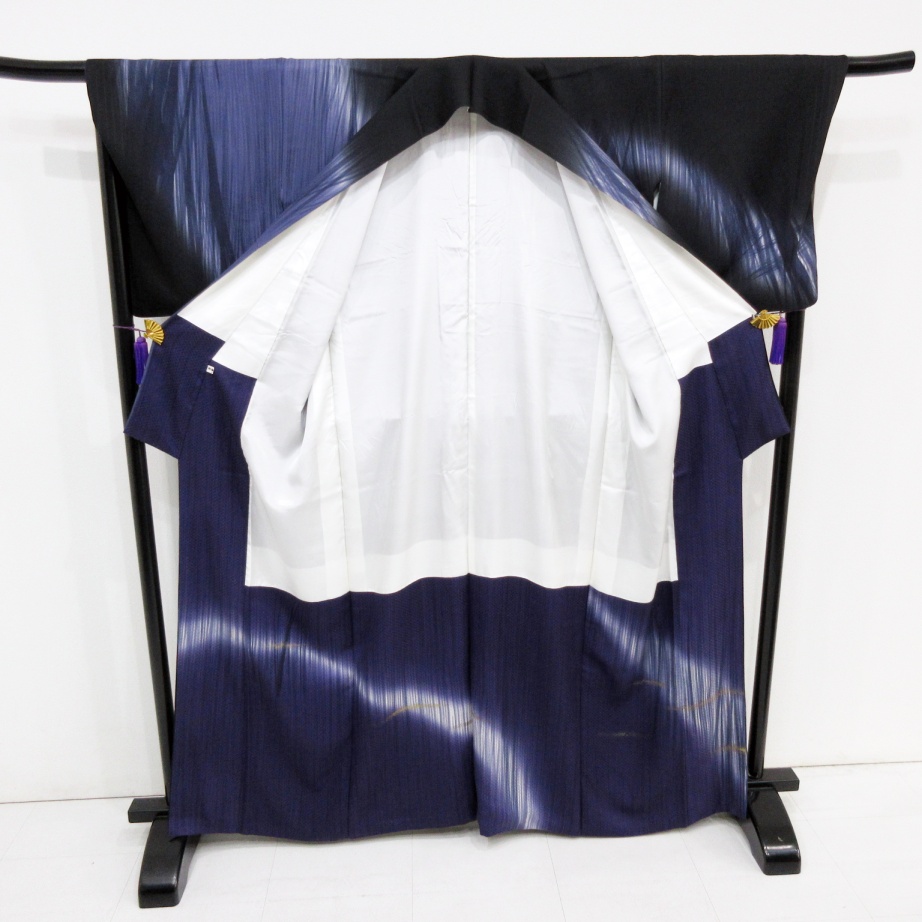■雅星■超美!!ブラック×紺藍*染分け 刷毛目♪訪問着 正絹袷 裄69丈165ロング 販売価格 69,800円 (税込) 購入数 \送料無料/ カートに入れる この商品について問い合わせる お気に入り 特定商取引法に基づく表記 コーディネートで使用している商品 ★雅星本店オリジナル★新品!!ブラック*シマシマ 銀通し 帯揚げ 正絹 【クリックポスト発送】 15,400円(税込) ★雅星本店オリジナル★新品!!ブラック*帯締め 房付き四分紐 正絹【クリックポスト発送】 14,800円(税込) 商品詳細 状態ランク: ★★★★★ しなやかな手触りでずっしりとした上質な正絹地が使用されています。 ブラック×紺藍ベース、刷毛目のようなアーティなデザインがクールな印象。 スタイリング次第でドレスアップ・カジュアルダウン自在な訪問着です。 《袷・広衿》身長160〜170cm位までの方にオススメです。 目立つシミ・汚れはなく、未使用品と遜色ない綺麗なお品です。 着物のみの価格で、帯・小物は含まれておりません。 サイズ・素材 裄 69cm 肩身丈 165cm 袖丈 49cm 袖幅 34cm 前幅 25cm 後ろ幅 30cm 内揚げ 17cm 縫込み(袖側) 2cm 縫込み(肩側) 1cm 素材 正絹 状態ランクについて ★★★★★ 超美品・新品・未使用品です。 ★★★★ 中古品ですがダメージの無いお品です。 ★★★ 薄ジミなどがありますが着用時には目立ちません。 ★★ 工夫次第で十分着用可能なお買い得品です ★ 大きめのシミがありますので、リメイク材料等にどうぞ。 _fo