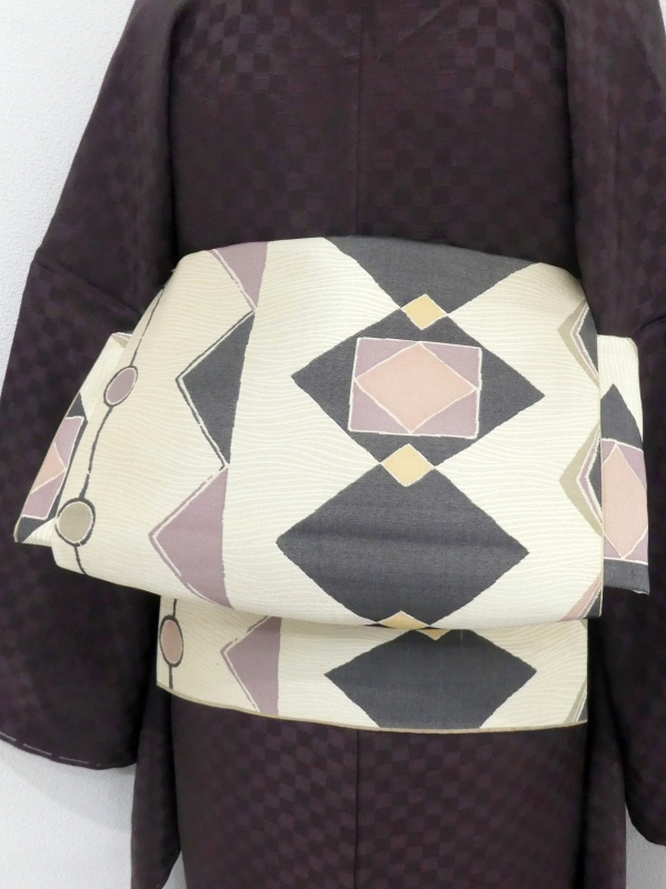 抽象文なのでお着物の柄ともケンカしにくく、今っぽいスタイリングに仕上げてくれます。