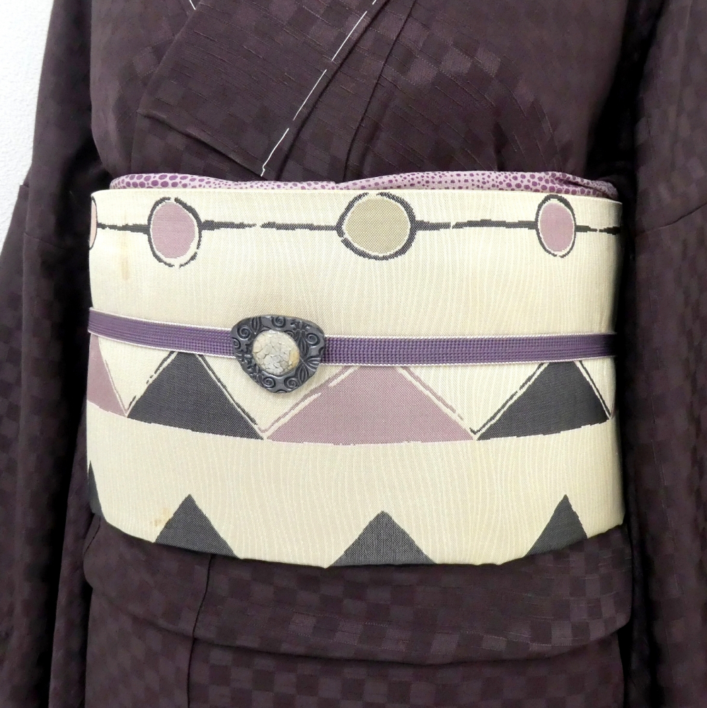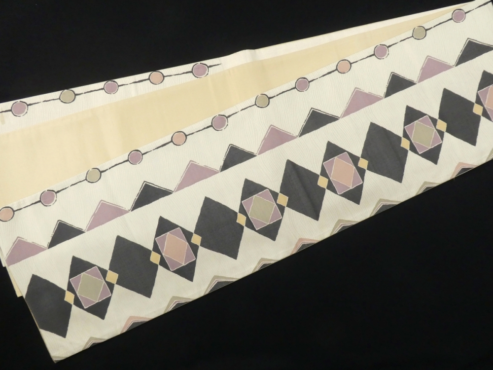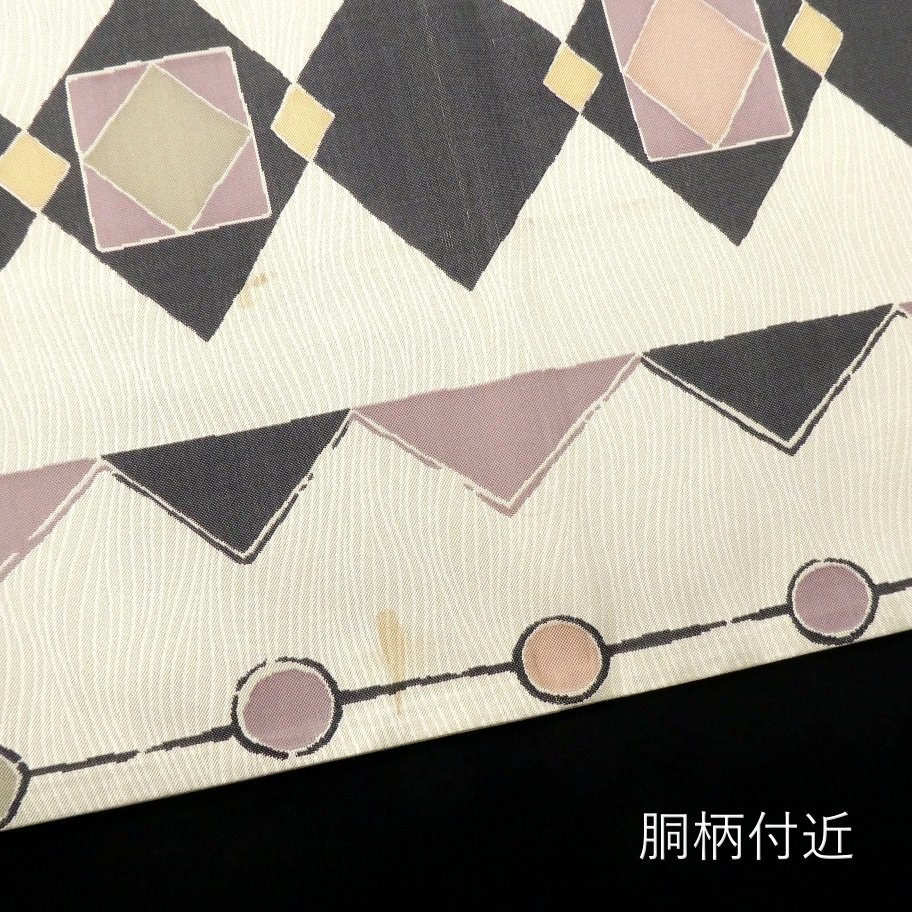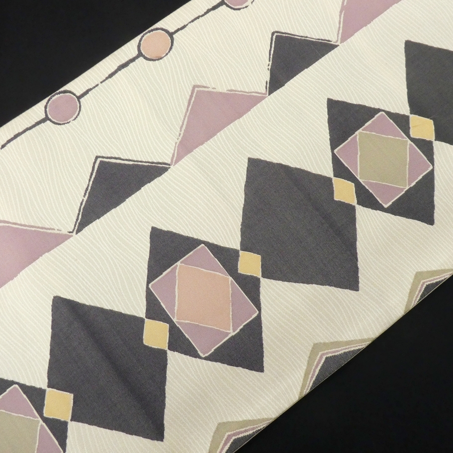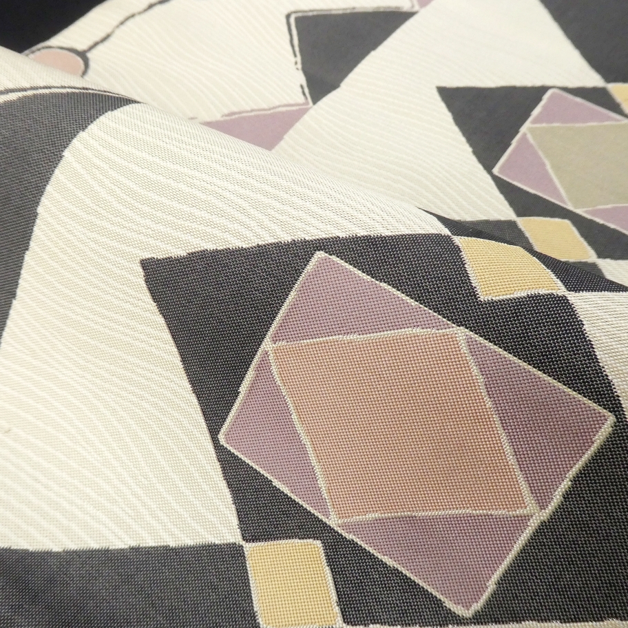 〓雅星〓エクルベージュ*幾何学模様♪正絹六通《洒落袋帯》