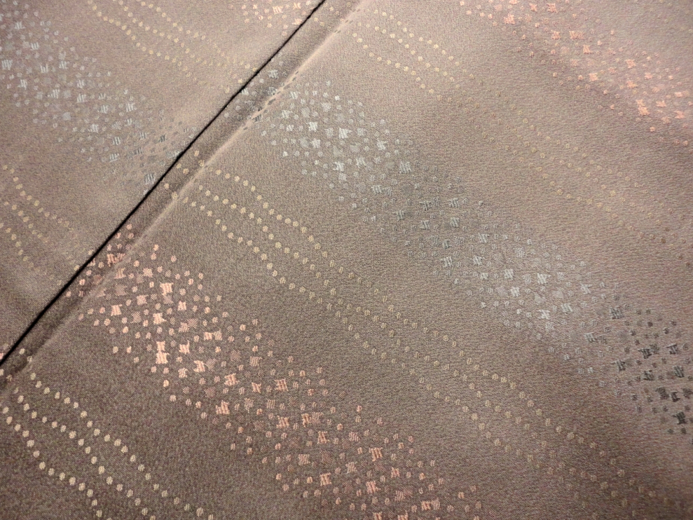 ○雅星○超美!!ブラウン*グラデ シマシマ お召し 正絹袷 裄62.5丈160ロング 販売価格 54,800円 (税込) 購入数 \送料無料/ カートに入れる この商品について問い合わせる お気に入り 特定商取引法に基づく表記 コーディネートで使用している商品 〓雅星〓超美!!ニュアンスカラー*すくい織 流水文♪正絹六通《袋帯》 36,800円(税込) ★雅星本店オリジナル★新品!!アメジスト*シマシマ 銀通し 帯揚げ 正絹 【クリックポスト発送】 15,400円(税込) ★雅星本店オリジナル★新品!!アメジスト*帯締め 房付き四分紐 正絹【クリックポスト発送】 14,800円(税込) 商品詳細 状態ランク: ★★★★★ シボのない、しなやかな手触りのお召し地。 ブラウンベースに淡い青と赤のシマシマグラデが上品な印象♪ 落着きがありつつ、人と差のつくこなれた着こなしが叶う現代お召しです!! 人と差のつくワンランク上の大人の普段着におススメな逸品です◎ 《袷・広衿》身長155〜165cm位までの方にオススメです。 目立つシミ・汚れはなく、未使用品と遜色ない綺麗なお品です。 着物のみの価格で、帯・小物は含まれておりません。 サイズ・素材 裄 62.5cm 肩身丈 160cm 袖丈 45.5cm 袖幅 32.5cm 前幅 24cm 後ろ幅 28cm 内揚げ 16cm 縫込み(袖側) 5cm 縫込み(肩側) 6cm 素材 正絹 状態ランクについて ★★★★★ 超美品・新品・未使用品です。 ★★★★ 中古品ですがダメージの無いお品です。 ★★★ 薄ジミなどがありますが着用時には目立ちません。 ★★ 工夫次第で十分着用可能なお買い得品です ★ 大きめのシミがありますので、リメイク材料等にどうぞ。