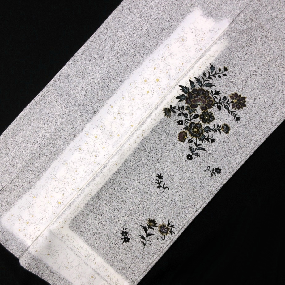 ■雅星■美品!!石目モノトーン*額縁 花模様♪付下げ訪問着 正絹袷 裄64丈160ロング 販売価格 49,800円 (税込) 購入数 \送料無料/ カートに入れる この商品について問い合わせる お気に入り 特定商取引法に基づく表記 コーディネートで使用している商品 ■雅星■超美!!ブラック*パステル WAVE文♪正絹六通 《袋帯》 39,800円(税込) ★雅星本店オリジナル★新品!!ブラック*シマシマ 銀通し 帯揚げ 正絹 【クリックポスト発送】 15,400円(税込) ★雅星本店オリジナル★新品!!ブラック*帯締め 房付き四分紐 正絹【クリックポスト発送】 14,800円(税込) 商品詳細 状態ランク: ★★★ モノトーンの石目ベース、シックなお色目で落ち着きある重厚感があります。 額縁に縁取られた花模様に、華やかな唐花の染めがシンプルで素敵です♪ お着物が主役にも・帯や小物を引き立たせる事も楽しめ万能です。 スタイリング次第でドレスアップ・カジュアルダウンなど着こなしの振り幅広めな付下げ訪問着です。 《袷・広衿》身長155〜165cm位までの方にオススメです。 極わずかに衿筋汚れ、おくみに点シミがありますが全く目立ちません。 全体的に綺麗なお品です。 着物のみの価格で、帯・小物は含まれておりません。 サイズ・素材 裄 64cm 肩身丈 160cm 袖丈 47cm 袖幅 32cm 前幅 25cm 後ろ幅 30.5cm 内揚げ 12cm 縫込み(袖側) 3cm 縫込み(肩側) 3cm 素材 正絹 状態ランクについて ★★★★★ 超美品・新品・未使用品です。 ★★★★ 中古品ですがダメージの無いお品です。 ★★★ 薄ジミなどがありますが着用時には目立ちません。 ★★ 工夫次第で十分着用可能なお買い得品です ★ 大きめのシミがありますので、リメイク材料等にどうぞ。 _fo