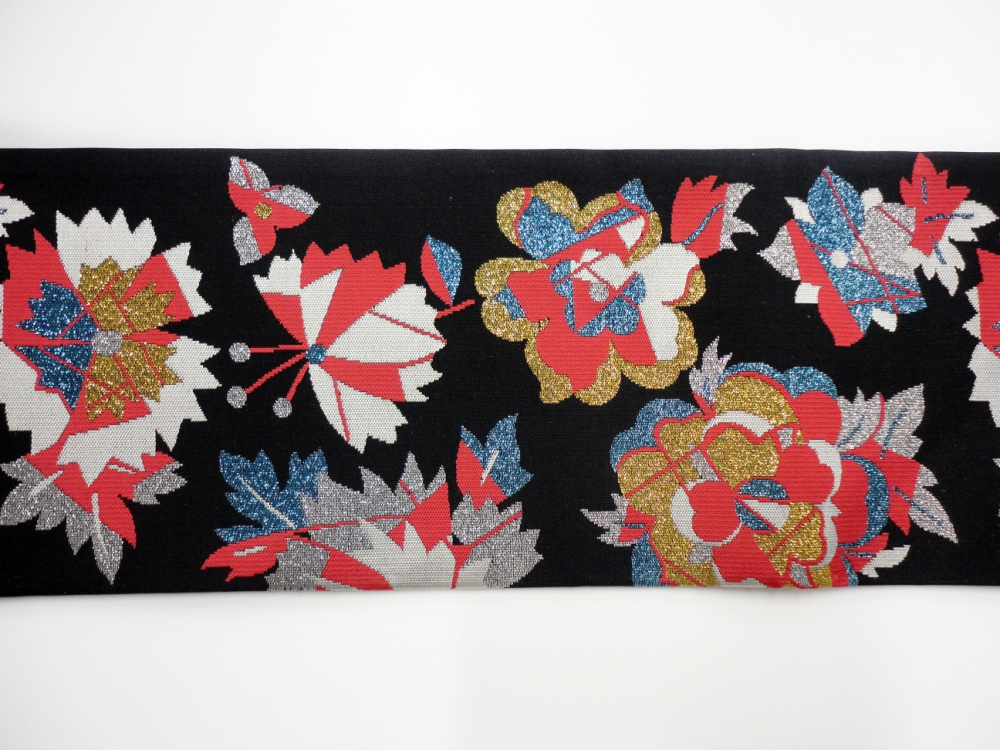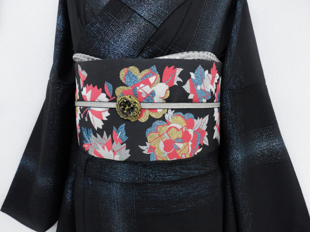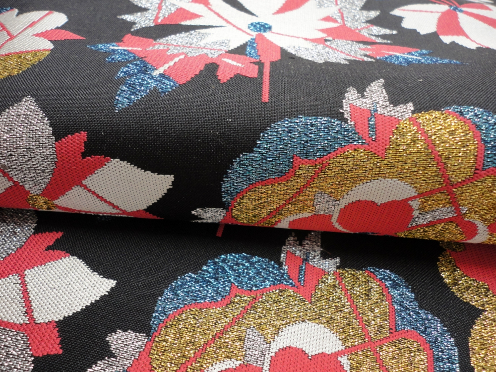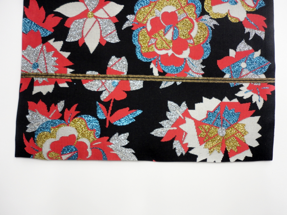 ブラックベースに金銀糸の煌めく花模様が華やかで目を惹きます◎