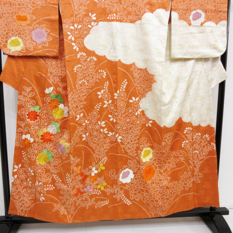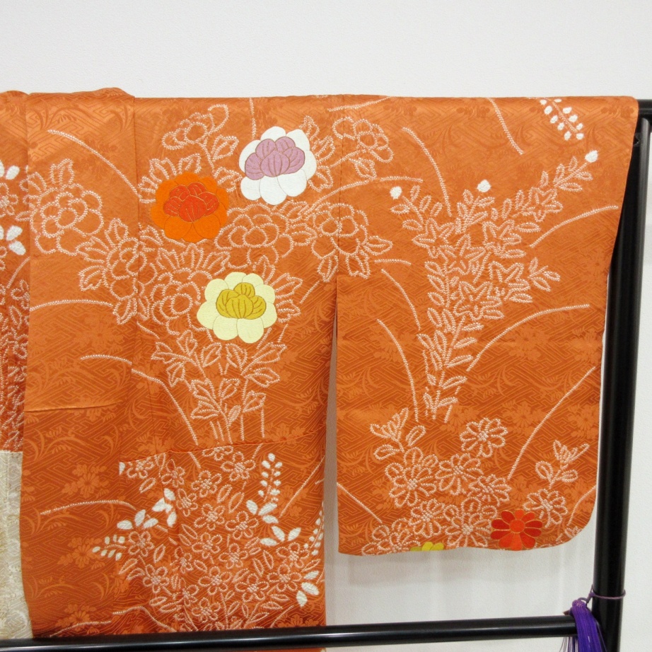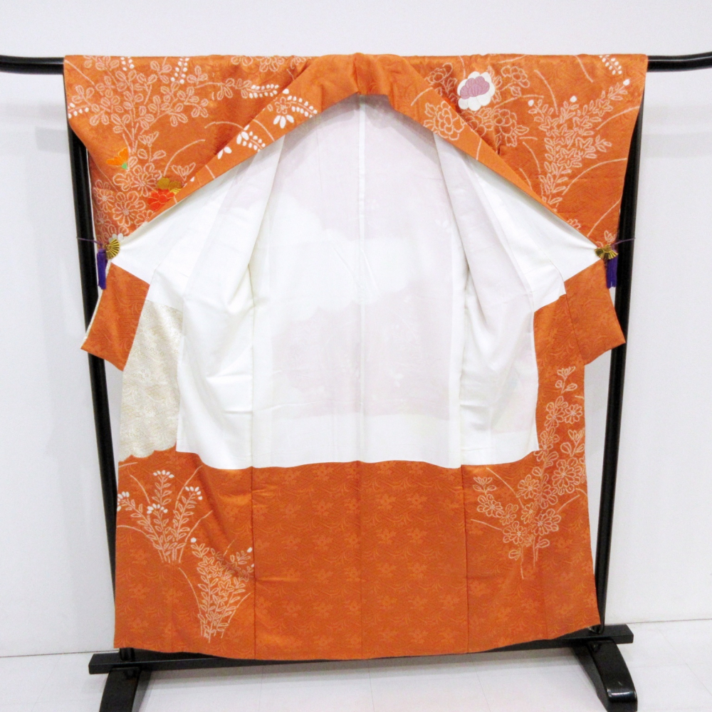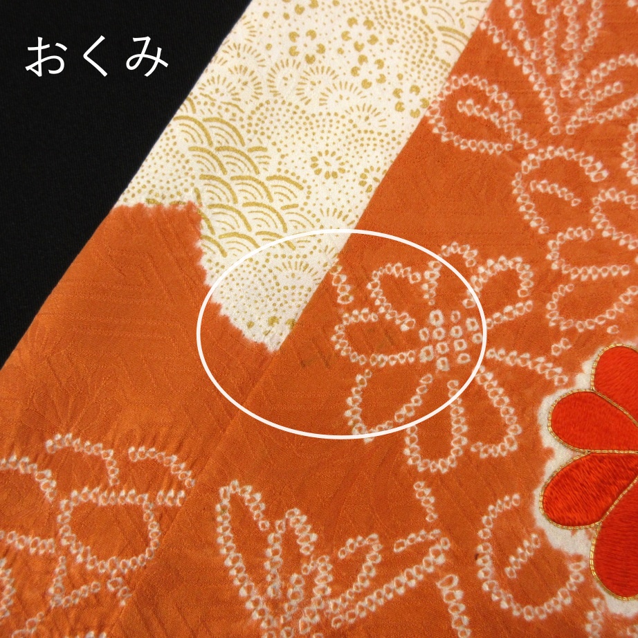 ■雅星■レトロ!!黄丹*絞り 秋草 雲取り 刺繍♪一つ紋訪問着 正絹袷 裄65.5丈157 販売価格 39,800円 (税込) 購入数 \送料無料/ カートに入れる この商品について問い合わせる お気に入り 特定商取引法に基づく表記 コーディネートで使用している商品 ■雅星■良品!!ゴールド*唐織 焼箔 網目 菊花文♪正絹六通《袋帯》 29,800円(税込) 商品詳細 状態ランク: ★★★ しなやかな手触りでずっしり上質な正絹地です。 赤みがかった鮮やかな橙ベース、光沢感ある綸子地に豪華な絞りがふんだんに施されています。 袖丈やや長めで若々しい印象、菊花にはみっちりと手刺繍、豪華で華やかです。 フォーマルシーンはもちろんドレッシーなスタイリングでパーティーなどにも楽しめる一つ紋訪問着です。 《袷・広衿》身長152〜162cm位までの方にオススメです。 うそつき袖付。 袖、おくみ・後身頃にシミはありますが柄に紛れて目立ちません。 そのまま十分にお楽しみ頂けるコンディションです。 着物のみの価格で、帯・小物は含まれておりません。 サイズ・素材 裄 65.5cm 肩身丈 157cm 袖丈 56.5cm 袖幅 33cm 前幅 23cm 後ろ幅 29.5cm 内揚げ 0cm 縫込み(袖側) 1cm 縫込み(肩側) 1cm 素材 正絹 状態ランクについて ★★★★★ 超美品・新品・未使用品です。 ★★★★ 中古品ですがダメージの無いお品です。 ★★★ 薄ジミなどがありますが着用時には目立ちません。 ★★ 工夫次第で十分着用可能なお買い得品です ★ 大きめのシミがありますので、リメイク材料等にどうぞ。 _fo