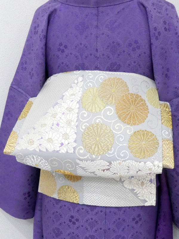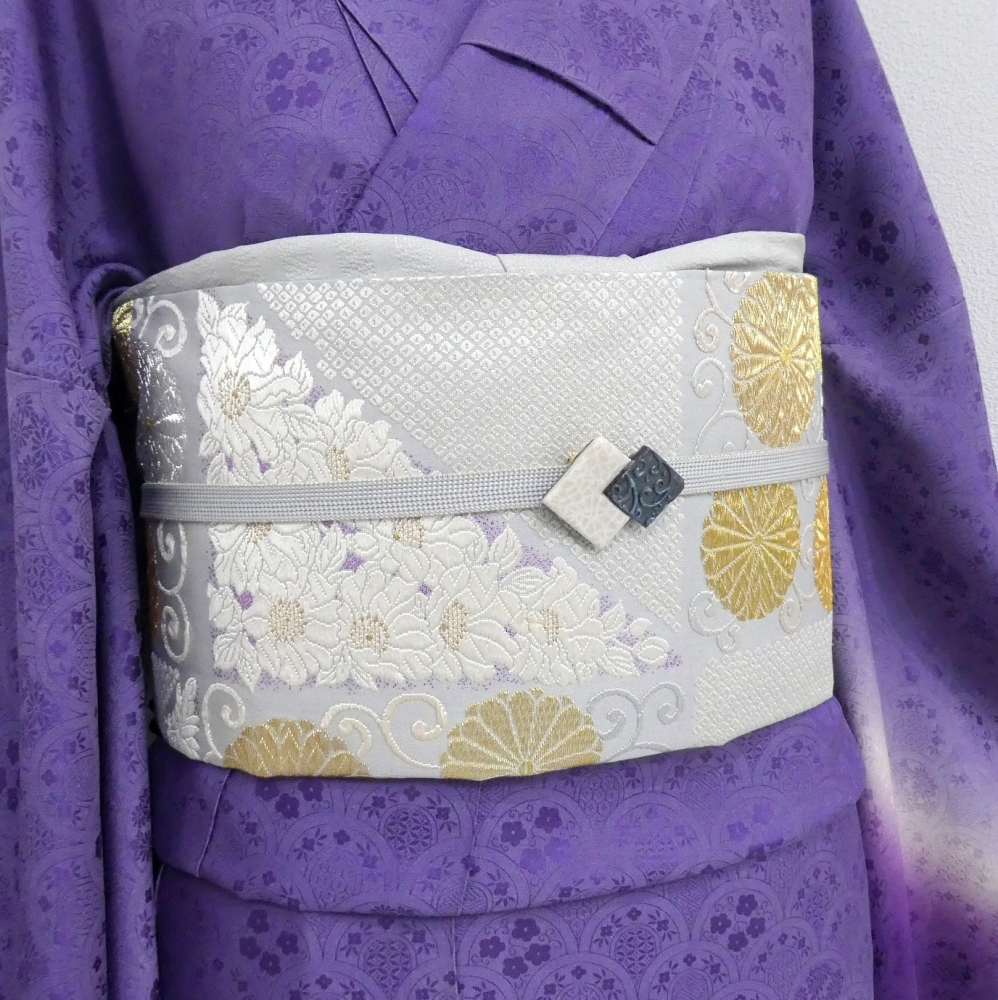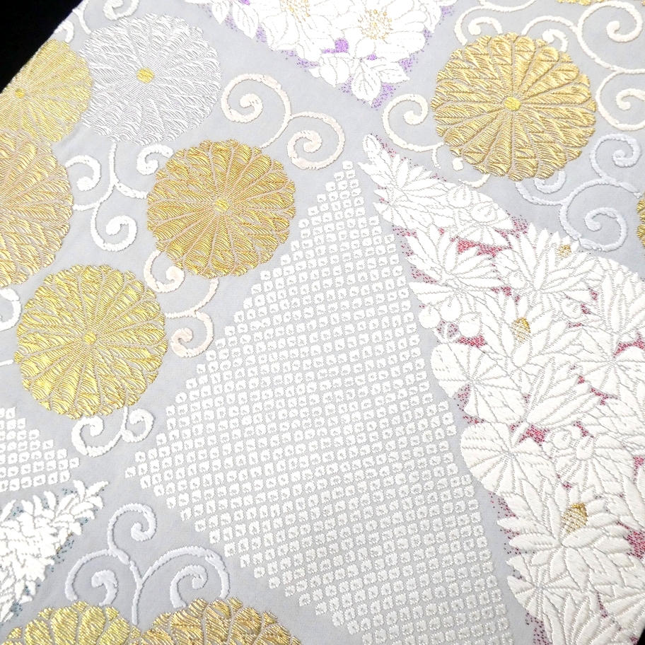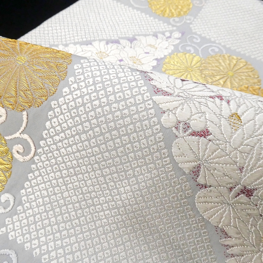 〓雅星〓未使用超美!!白梅鼠色 *菊唐草文 鹿の子模様♪正絹六通 《袋帯》 販売価格 42,800円 (税込) 購入数 \送料無料/ カートに入れる この商品について問い合わせる お気に入り 特定商取引法に基づく表記 商品詳細 状態ランク: ★★★★★ 白に近いやや青紫味を帯びた淡いベースカラー。 金銀糸の煌めく菊唐草文やカラフルな箔糸を背景に映える真っ白な花模様が艶やかな印象。 しっかりとした高級感のある色柄ですが柔らかくしなやかな締め心地。 合わせるお着物をぐっと上質に格上げしてくれる逸品です! 正統派なフォーマルシーンはもちろん、華やかなパーティなどにもおススメな袋帯です。 目立つシミ・汚れのない未使用超美のお品です。(撮影時のみ使用) 帯のみの価格で、着物・小物は含まれておりません。 サイズ・素材 長さ 31cm×437cm 素材 正絹 状態ランクについて ★★★★★ 超美品・新品・未使用品です。 ★★★★ 中古品ですがダメージの無いお品です。 ★★★ 薄ジミなどがありますが着用時には目立ちません。 ★★ 工夫次第で十分着用可能なお買い得品です ★ 大きめのシミがありますので、リメイク材料等にどうぞ。 _fo