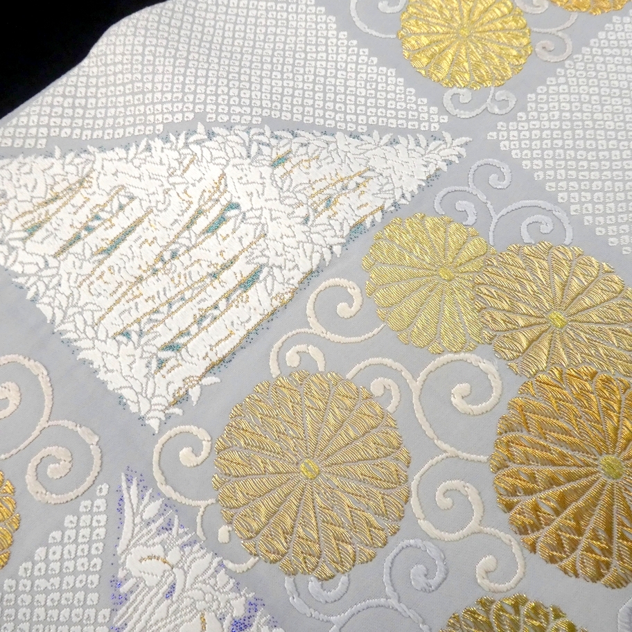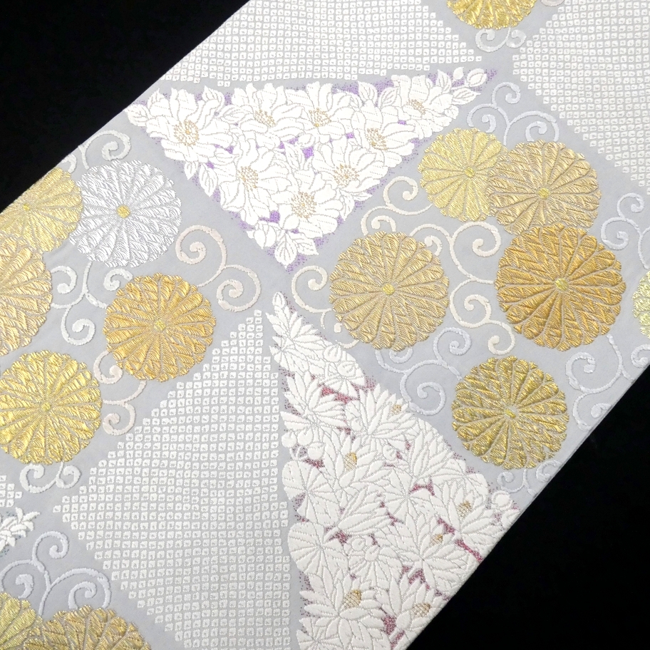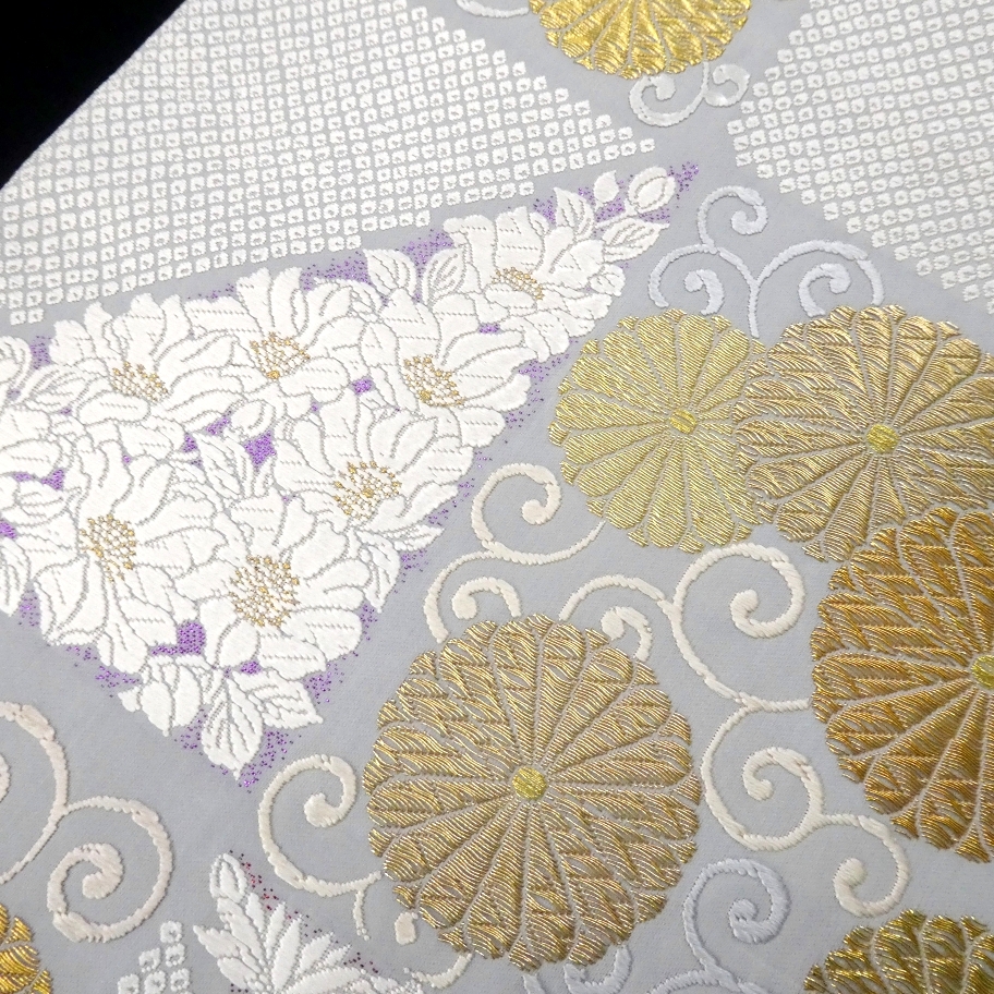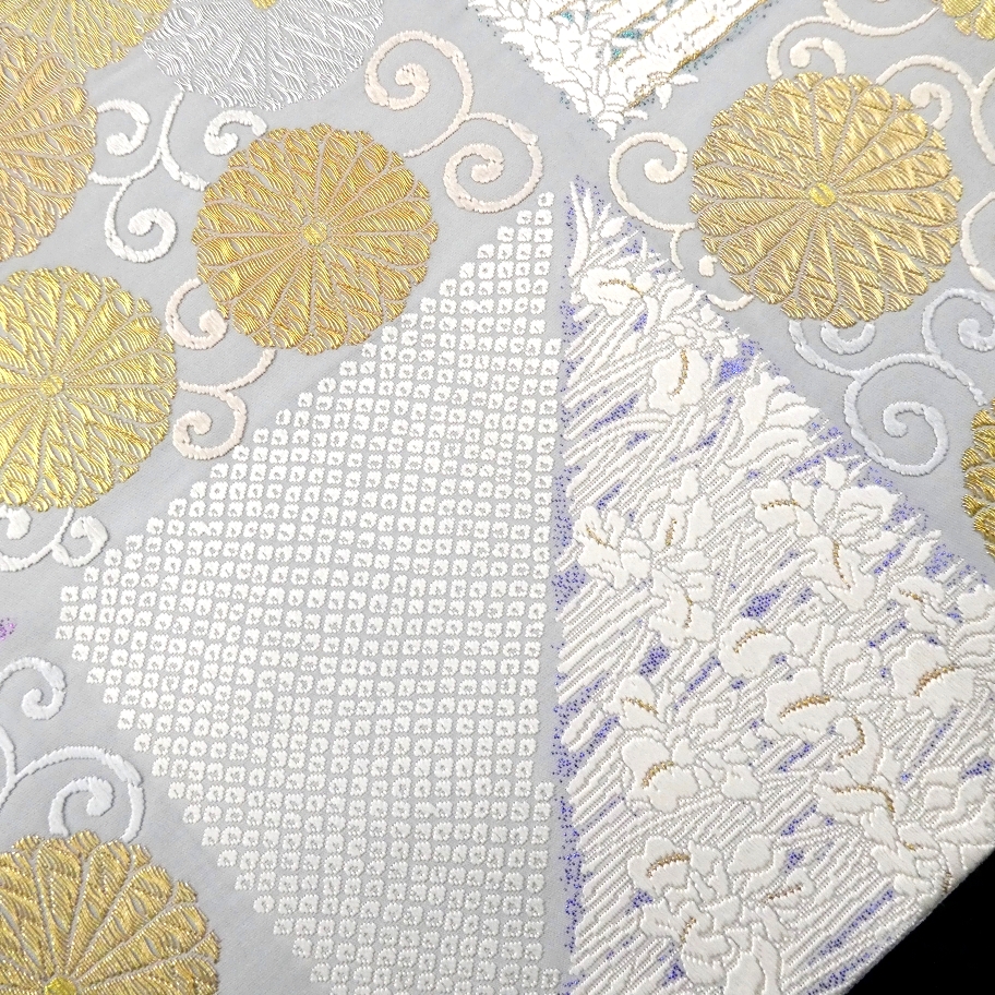 〓雅星〓未使用超美!!白梅鼠色 *菊唐草文 鹿の子模様♪正絹六通 《袋帯》 販売価格 42,800円 (税込) 購入数 \送料無料/ カートに入れる この商品について問い合わせる お気に入り 特定商取引法に基づく表記 商品詳細 状態ランク: ★★★★★ 白に近いやや青紫味を帯びた淡いベースカラー。 金銀糸の煌めく菊唐草文やカラフルな箔糸を背景に映える真っ白な花模様が艶やかな印象。 しっかりとした高級感のある色柄ですが柔らかくしなやかな締め心地。 合わせるお着物をぐっと上質に格上げしてくれる逸品です! 正統派なフォーマルシーンはもちろん、華やかなパーティなどにもおススメな袋帯です。 目立つシミ・汚れのない未使用超美のお品です。(撮影時のみ使用) 帯のみの価格で、着物・小物は含まれておりません。 サイズ・素材 長さ 31cm×437cm 素材 正絹 状態ランクについて ★★★★★ 超美品・新品・未使用品です。 ★★★★ 中古品ですがダメージの無いお品です。 ★★★ 薄ジミなどがありますが着用時には目立ちません。 ★★ 工夫次第で十分着用可能なお買い得品です ★ 大きめのシミがありますので、リメイク材料等にどうぞ。 _fo