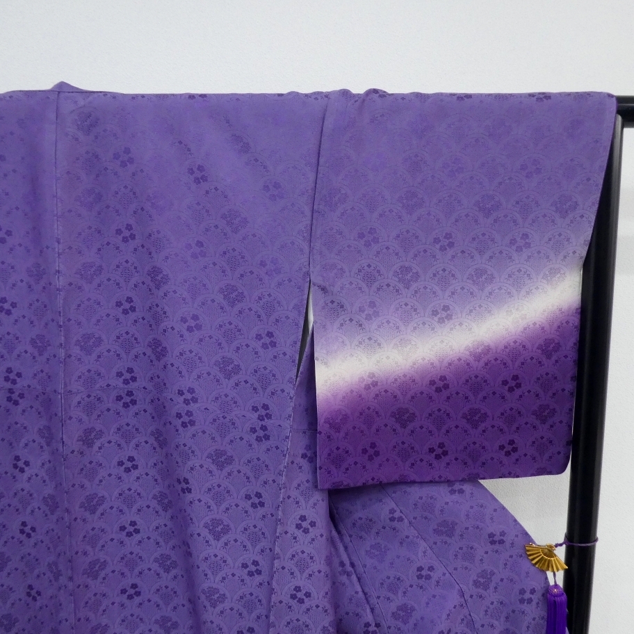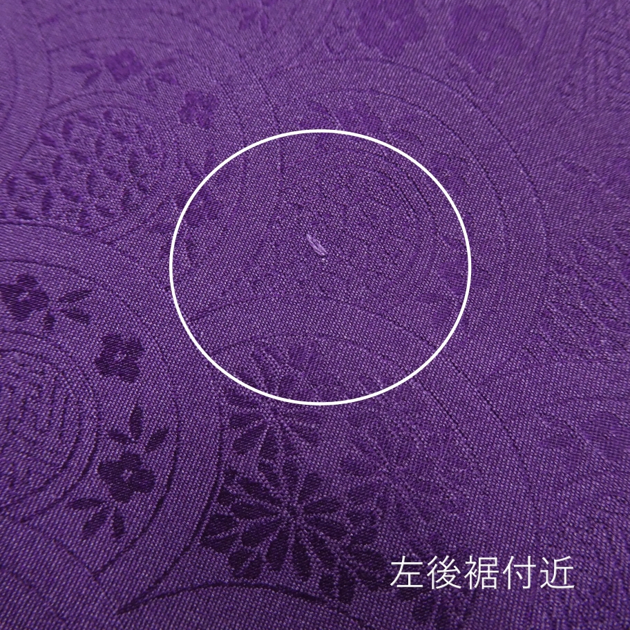 〓雅星〓美品!!パープル*オリエンタル地紋 裾暈し♪訪問着 正絹袷 裄66丈158 販売価格 69,800円 (税込) 購入数 \送料無料/ カートに入れる この商品について問い合わせる お気に入り 特定商取引法に基づく表記 コーディネートで使用している商品 〓雅星〓未使用超美!!白梅鼠色 *菊唐草文 鹿の子模様♪正絹六通 《袋帯》 42,800円(税込) ★雅星本店オリジナル★新品!!プラチナ*シマシマ 銀通し 帯揚げ 正絹 【クリックポスト発送】 15,400円(税込) ★雅星本店オリジナル★新品!!プラチナ*帯締め 房付き四分紐 正絹【クリックポスト発送】 14,800円(税込) 商品詳細 状態ランク: ★★★ しなやかな手触りでずっしり上質な正絹地です。 オリエンタルなデザインの青海波文が地紋で施され光の加減で浮かびます。 幻想的な暈しと相まって、清潔感あふれる女性らしい凛とした着姿が叶います。 入学式や七五三などお母様の装いとしてはもちろん、ドレスアップしてパーティなどにも最適な訪問着です。 《袷・広衿》身長153〜163cm位までの方にオススメです。 画像のような小さなキズはありますが、いずれも軽度なので注意深く見なければ気づかない程度です。 目立つシミ・汚れのようなダメージはなく状態の良い綺麗なお品です。 着物のみの価格で、帯・小物は含まれておりません。 サイズ・素材 裄 66cm 肩身丈 158cm 袖丈 49cm 袖幅 34cm 前幅 24cm 後ろ幅 29.5cm 内揚げ 6cm 縫込み(袖側) 1cm 縫込み(肩側) 2cm 素材 正絹 状態ランクについて ★★★★★ 超美品・新品・未使用品です。 ★★★★ 中古品ですがダメージの無いお品です。 ★★★ 薄ジミなどがありますが着用時には目立ちません。 ★★ 工夫次第で十分着用可能なお買い得品です ★ 大きめのシミがありますので、リメイク材料等にどうぞ。 _fo