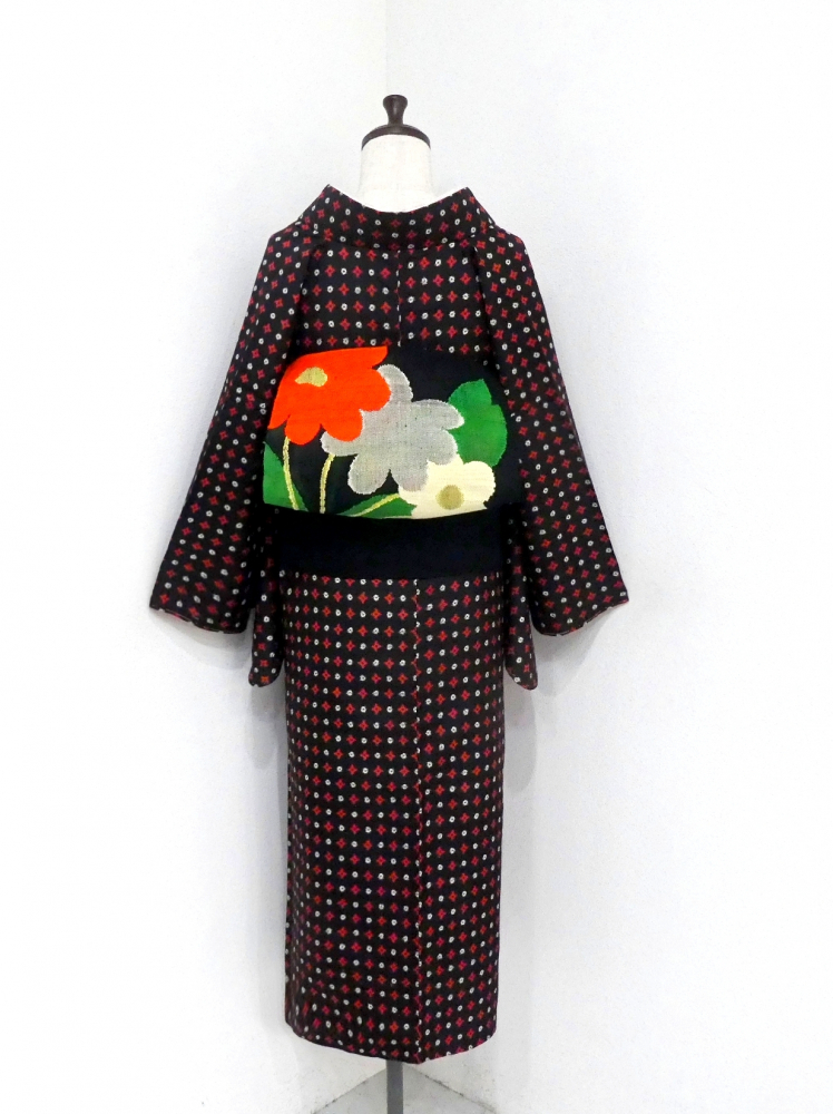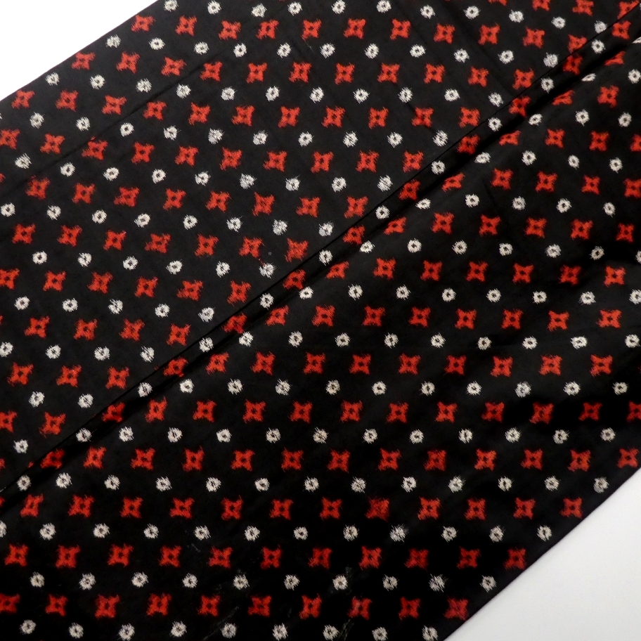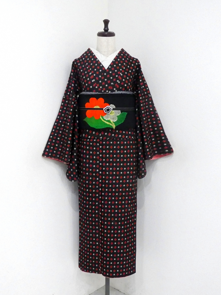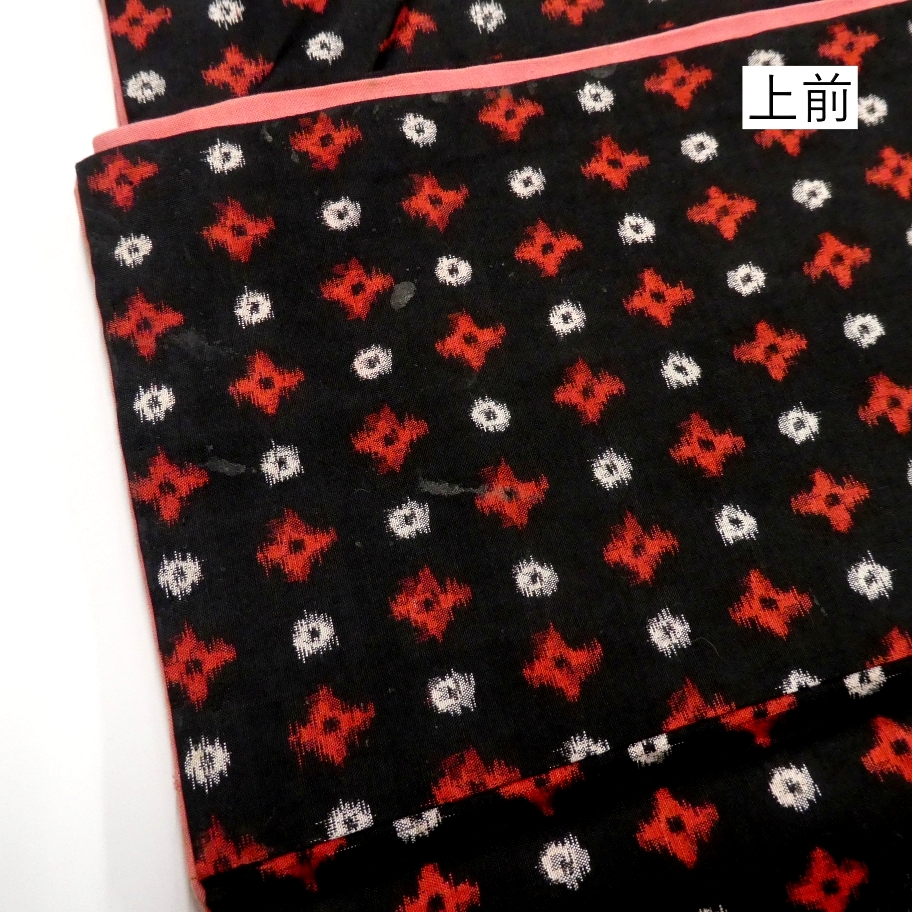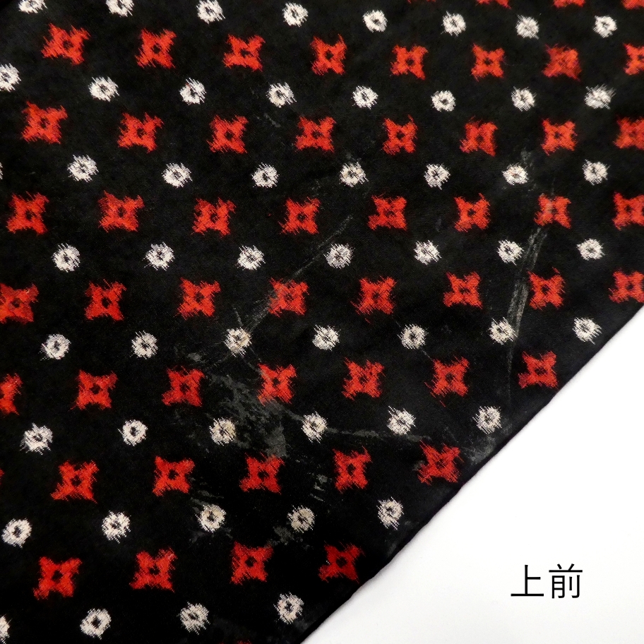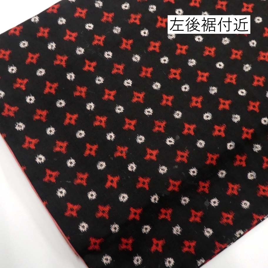 〓雅星〓レトロ!!ブラック*ドット 幾何学♪銘仙 正絹袷 裄64丈149 販売価格 9,800円 (税込) 購入数 \送料無料/ カートに入れる この商品について問い合わせる お気に入り 特定商取引法に基づく表記 コーディネートで使用している商品 〓雅星〓超美!!ブラック*ざっくり紬 フワラー♪正絹八寸《名古屋帯》 16,800円(税込) 〓雅星本店オリジナル〓新品!!ブラック&グレー ストーン*友禅帯揚げ 正絹縮緬 【クリックポスト発送】 15,400円(税込) ★雅星本店オリジナル★新品*リバーシブル 縁あり三分紐【クリックポスト発送】 6,600円(税込) 商品詳細 状態ランク: ★★★ ブラックベースにドットと幾何学が並んだベーシックなデザイン。 シンプルなコーデはもちろん、こだわりの帯や小物も良く映えるので個性の光る着こなしも楽しめます。 セミアンティーク初心者さんにもおススメな銘仙です。 《袷・バチ衿》身長〜154cm位までの方にオススメです。 ※それ以上の方は対丈や洋服ミックスのスタイリングもお洒落です♪ 胴裏・八掛に変色や薄シミが見られます。 表地にも画像のようなダメージがありますが、濃い地色に紛れて目立ちにくく感じました。 ぐっとお値下げしていますので色柄を気に入ってくださった方に是非! 着物のみの価格で、帯・小物は含まれておりません。 サイズ・素材 裄 64cm 肩身丈 149cm 袖丈 49cm 袖幅 32cm 前幅 22cm 後ろ幅 29.5cm 内揚げ 5cm 縫込み(袖側) 2cm 縫込み(肩側) 0.5cm 素材 正絹 状態ランクについて ★★★★★ 超美品・新品・未使用品です。 ★★★★ 中古品ですがダメージの無いお品です。 ★★★ 薄ジミなどがありますが着用時には目立ちません。 ★★ 工夫次第で十分着用可能なお買い得品です ★ 大きめのシミがありますので、リメイク材料等にどうぞ。 _an
