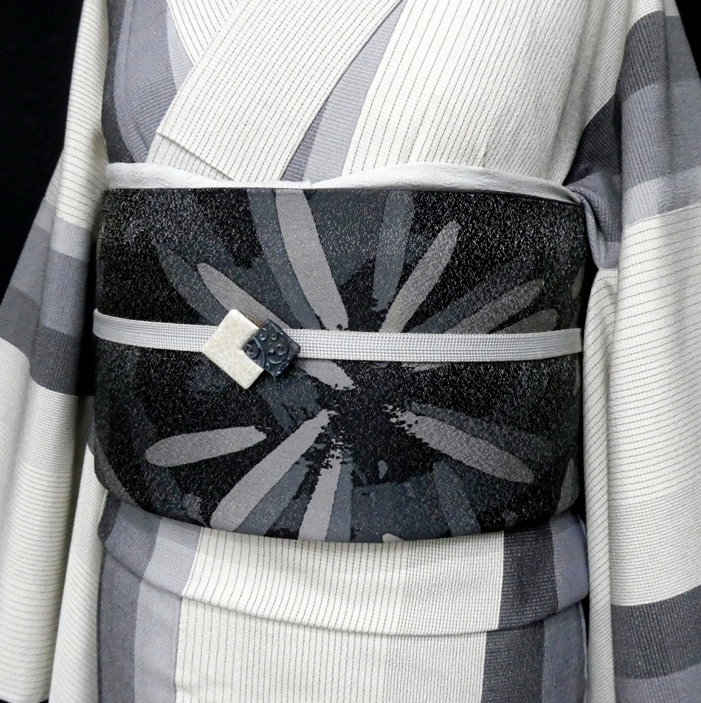 〓雅星〓未使用美品!!グレイッシュ*銀通し フラワー アーティ 正絹全通 染め《袋帯》 販売価格 34,800円 (税込) 購入数 \送料無料/ カートに入れる この商品について問い合わせる お気に入り 特定商取引法に基づく表記 商品詳細 状態ランク: ★★★ グレイッシュカラーでまとめられた大輪花のような染め模様がエレガントな印象。 銀通し地なので光の加減で控えめに煌めき、スタイリングに上品な艶っぽさをプラスしてくれます。 合わせるお着物を一気に今っぽく格上げしてくれ、フォーマルシーンから上質な小紋まで振り幅広めに活躍してくれる上質な袋帯です。 ☆全通柄なので柄出しに困ることなく、角出し結びも簡単に楽しめます◎ 畳んだ際にヤマになる部分に薄っすらスレ汚れを感じますが、注意深く見なければ気づかない位軽度です◎ その他目立つダメージのない未使用の綺麗なお品です。(撮影時のみ使用) 帯のみの価格で、着物・小物は含まれておりません。 サイズ・素材 長さ 31cm×447cm 素材 正絹 状態ランクについて ★★★★★ 超美品・新品・未使用品です。 ★★★★ 中古品ですがダメージの無いお品です。 ★★★ 薄ジミなどがありますが着用時には目立ちません。 ★★ 工夫次第で十分着用可能なお買い得品です ★ 大きめのシミがありますので、リメイク材料等にどうぞ。