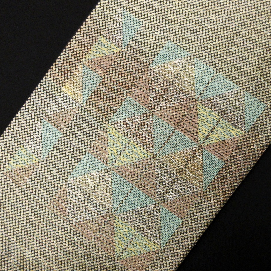 ■雅星■超美!!ブラック×オーロラ*作家物 菱 幾何学♪正絹《袋帯》 販売価格 39,800円 (税込) 購入数 \送料無料/ カートに入れる この商品について問い合わせる お気に入り 特定商取引法に基づく表記 商品詳細 状態ランク: ★★★★★ 薄手でしなやかな手触りなので軽い締め心地の正絹地。 ブラックベースにオーロラ箔の鹿の子の様な小さな菱の織りが煌びやか♪ スタイリングに上品な艶っぽさをプラスしてくれます。 スモーキーなブルーの菱幾何学文、 合わせるお着物を一気に今っぽく格上げしてくれ、フォーマルシーンから上質な小紋まで振り幅広めに活躍してくれる上質な袋帯です。 シミ・汚れのない大変綺麗なお品です。 帯のみの価格で、着物・小物は含まれておりません。 サイズ・素材 長さ 31cm×432cm 素材 正絹 状態ランクについて ★★★★★ 超美品・新品・未使用品です。 ★★★★ 中古品ですがダメージの無いお品です。 ★★★ 薄ジミなどがありますが着用時には目立ちません。 ★★ 工夫次第で十分着用可能なお買い得品です ★ 大きめのシミがありますので、リメイク材料等にどうぞ。 _fo
