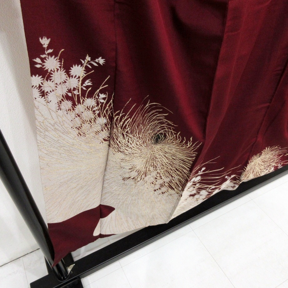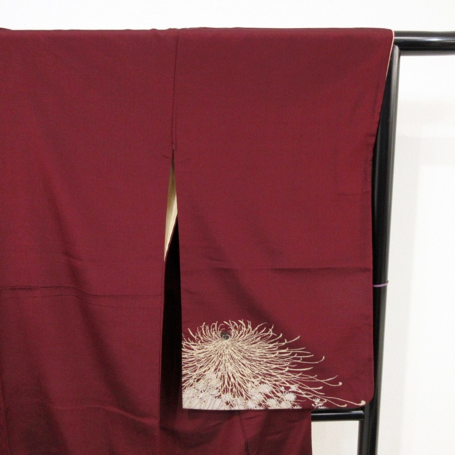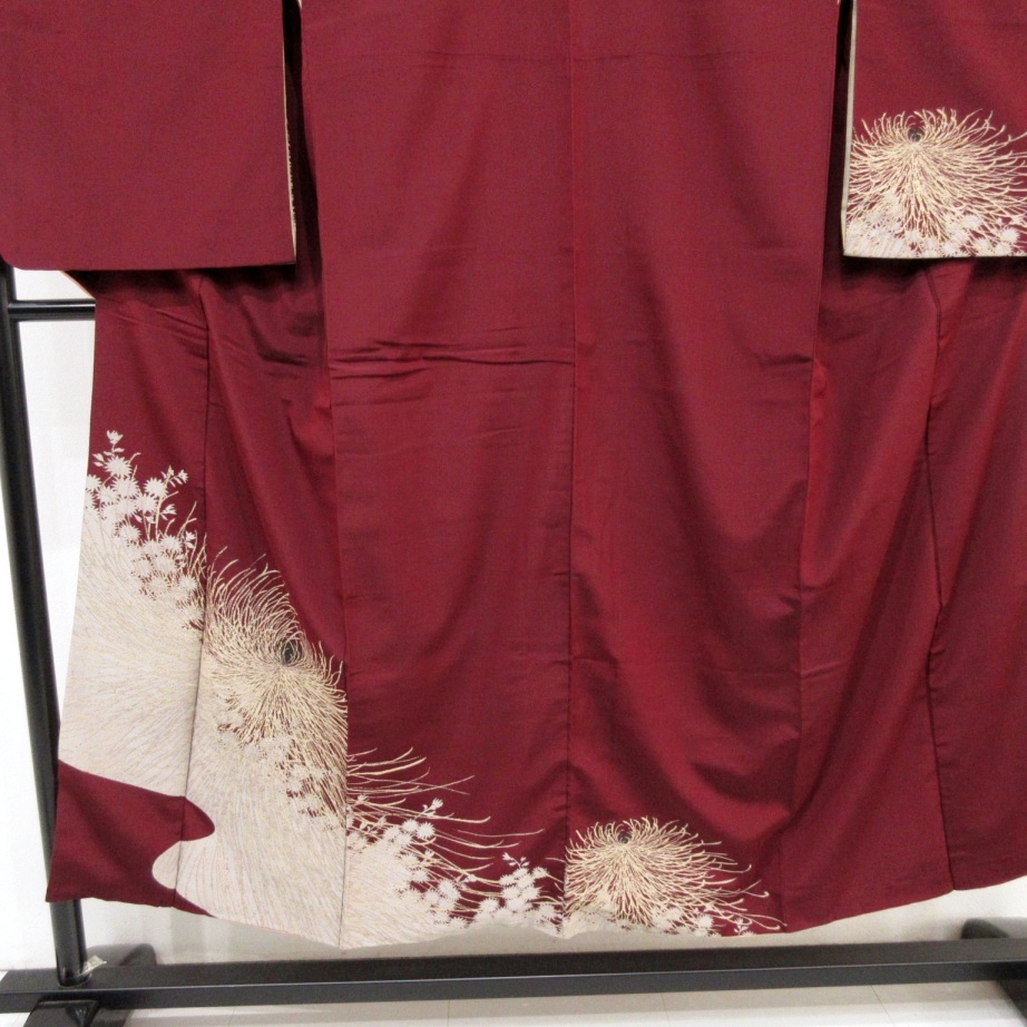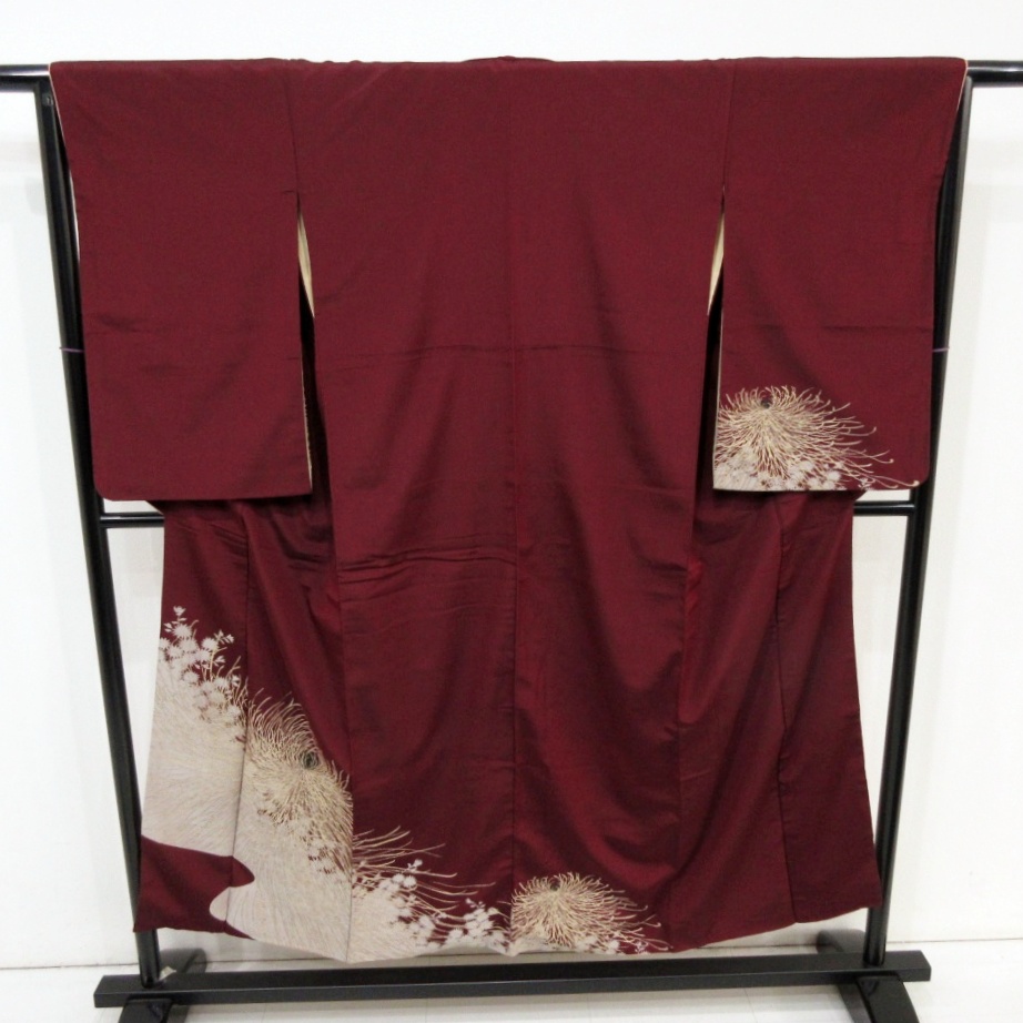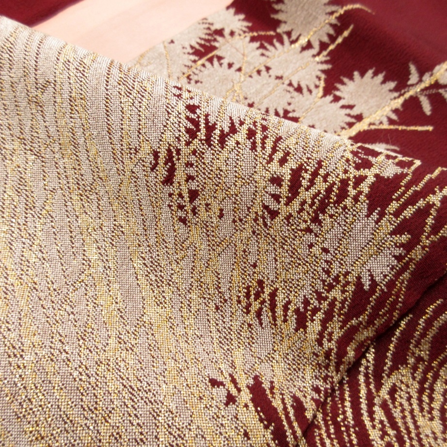 新着商品■雅星■レトロ!!ボルドー*糸菊♪お召し 付下げ 正絹袷 裄64丈151